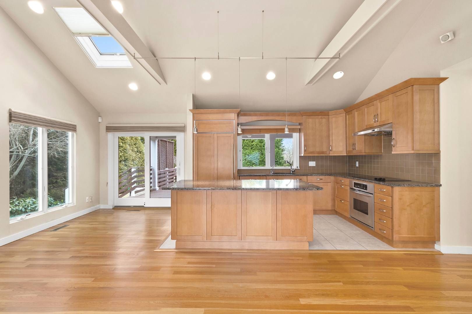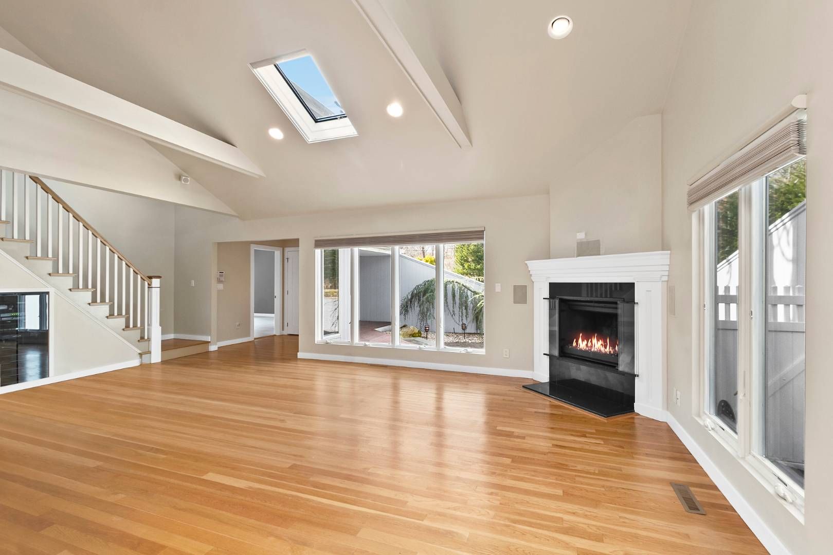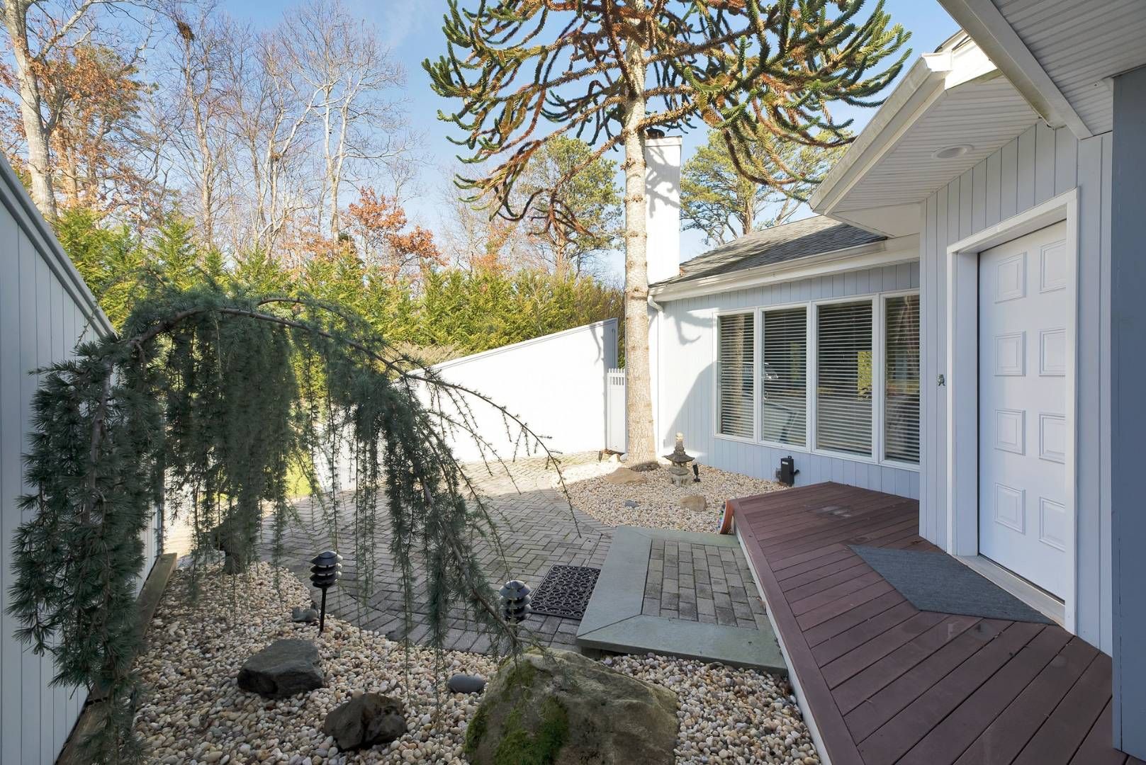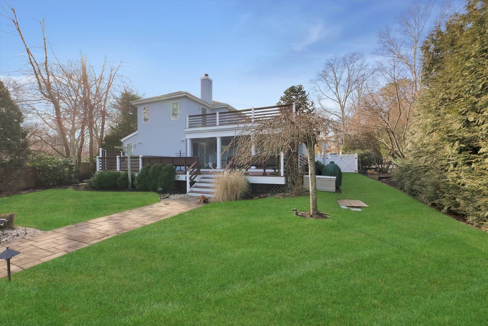 Look no further for your Hamptons oasis! Immediate occupancy available. Set on 1+/- acre, this 4 bedroom, 4 bath fully renovated contemporary home with dock has it all! The house is ideally set back from the road with a gated driveway and luscious landscaping. Meticulously maintained, the house features oak floors, gas fireplace, vaulted ceilings and an open floor plan. The updated kitchen offers a subzero refrigerator, granite counter tops, m