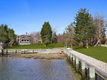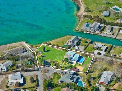 This lovely, shingle-sided, waterfront home with heated pool features over 50 ft. of bulkhead with private dock on Middle Pond and all-day amazing views out to Shinnecock Bay. Thoroughly renovated in 1988 and improved since, the residence features a living room with fireplace, formal dining room, and master suite with oversized bathroom - all with picture-window water views. The renovated kitchen with skylights includes a casual dining area wi