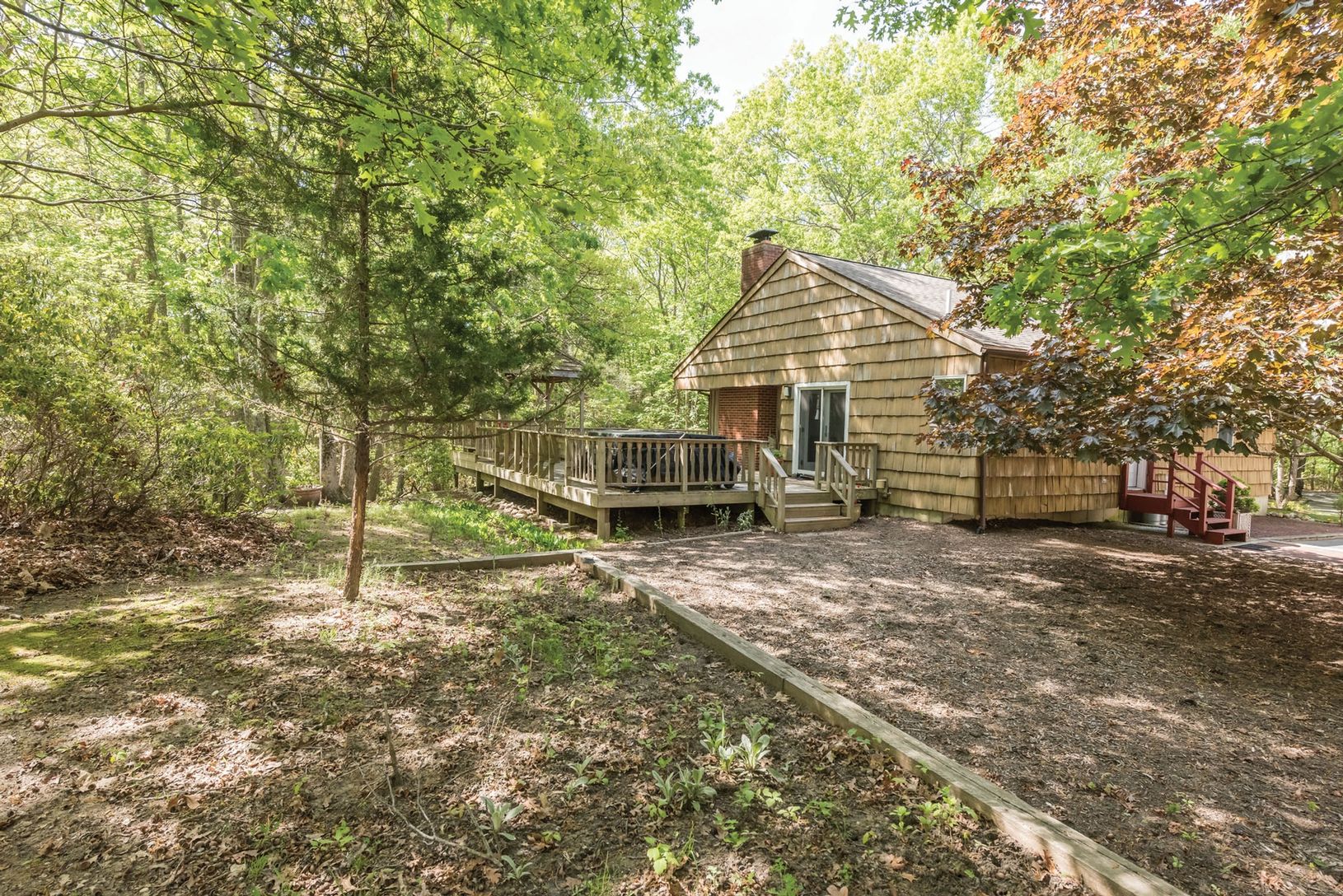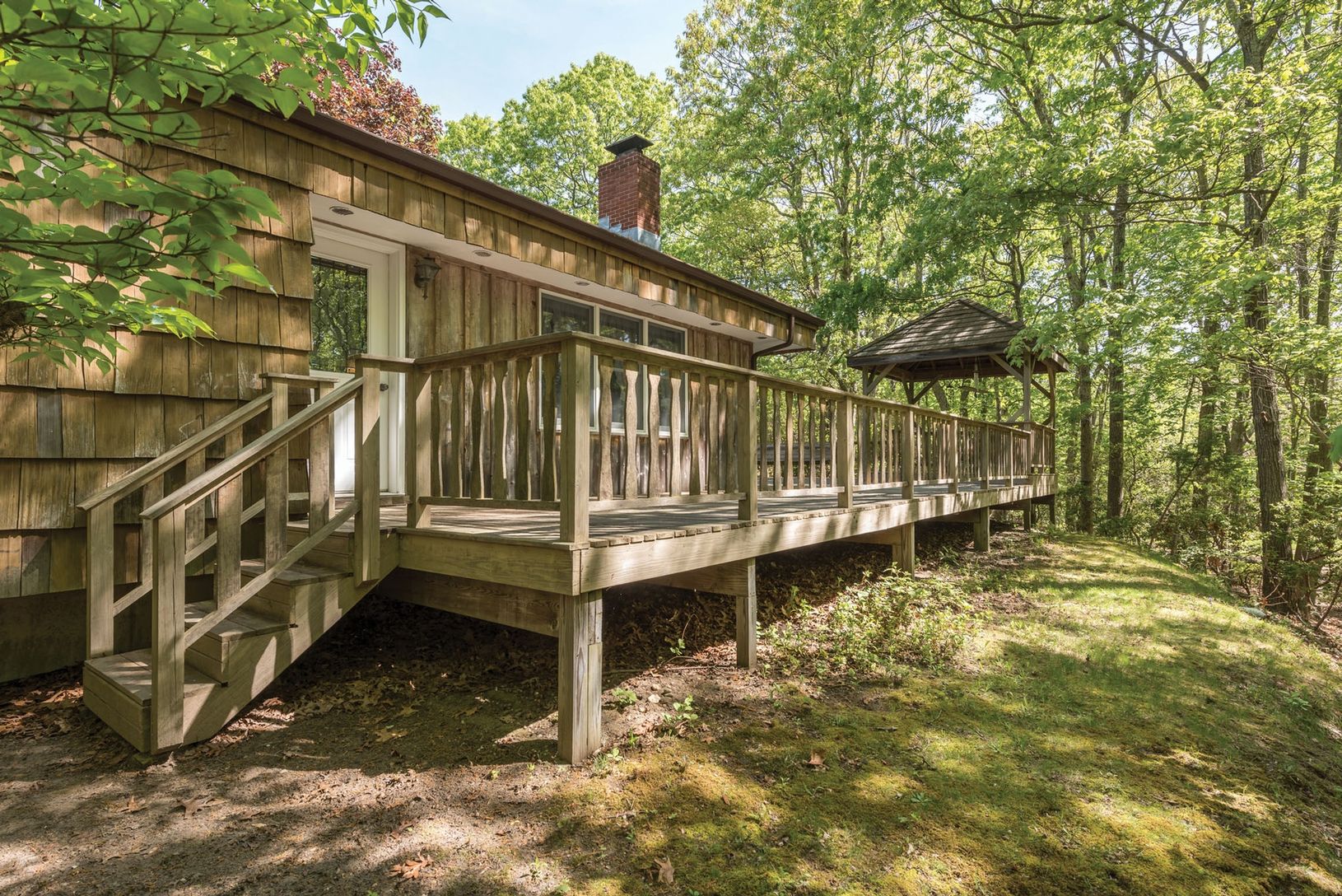 This wonderful three bedroom, one and one-half bath home is quietly situated on 1.9+/- acres of property and borders town owned land. There are many options available for the buyer of this home: move in and enjoy the surrounding natural beauty and the house as is, add on and improve the property with a pool and pool house, or design and build a grand new home.This is an ideal location between Sag Harbor and Southampton.