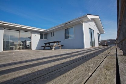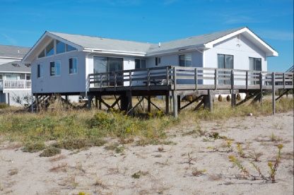 Great beach house with four bedrooms and two bathrooms. Large eat in kitchen,dining room and living room with catherdral ceilings. Expansive decking with ocean and bay views. Easily expanded. Walk to ocean and bay.