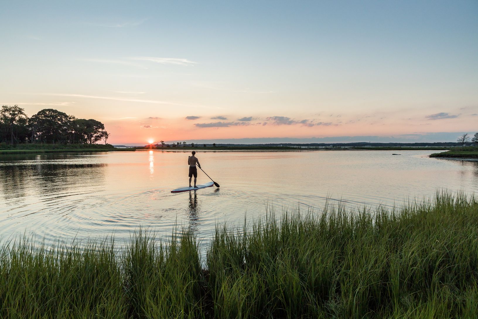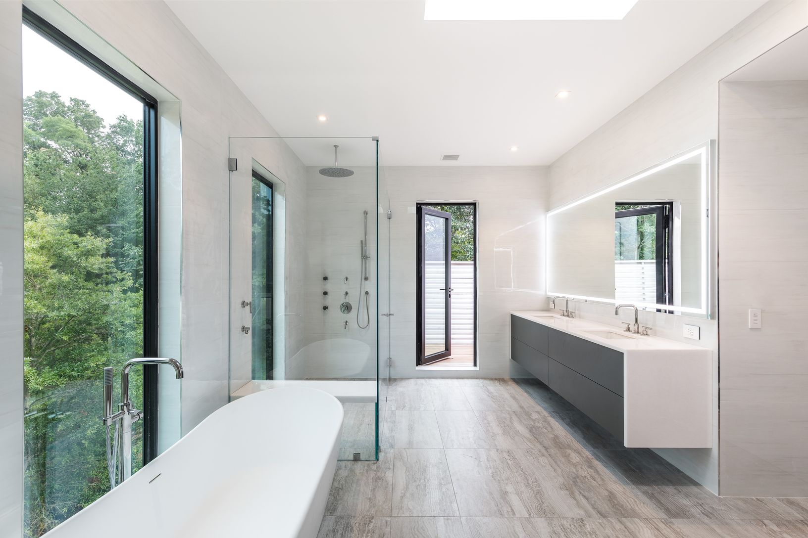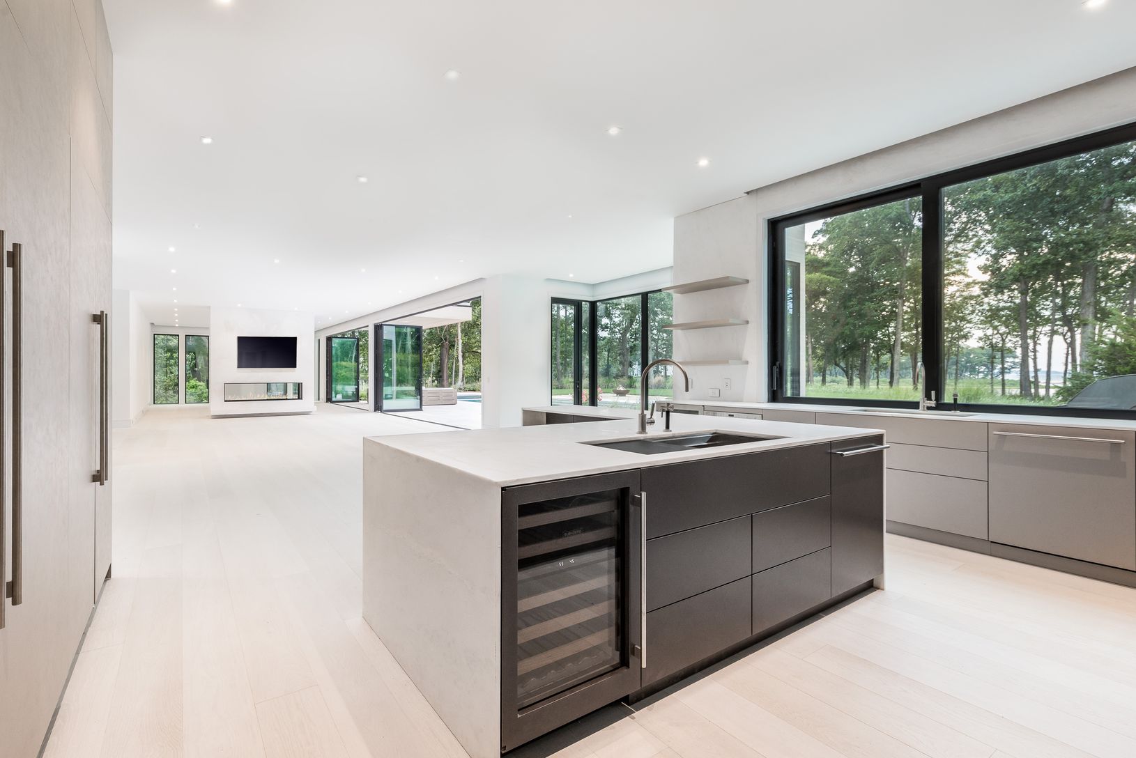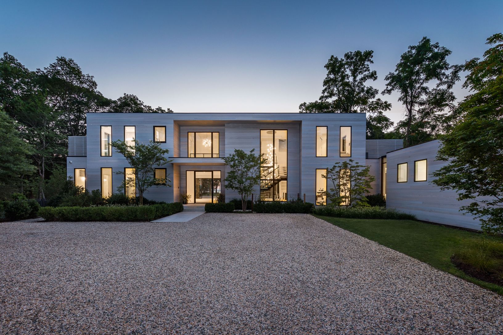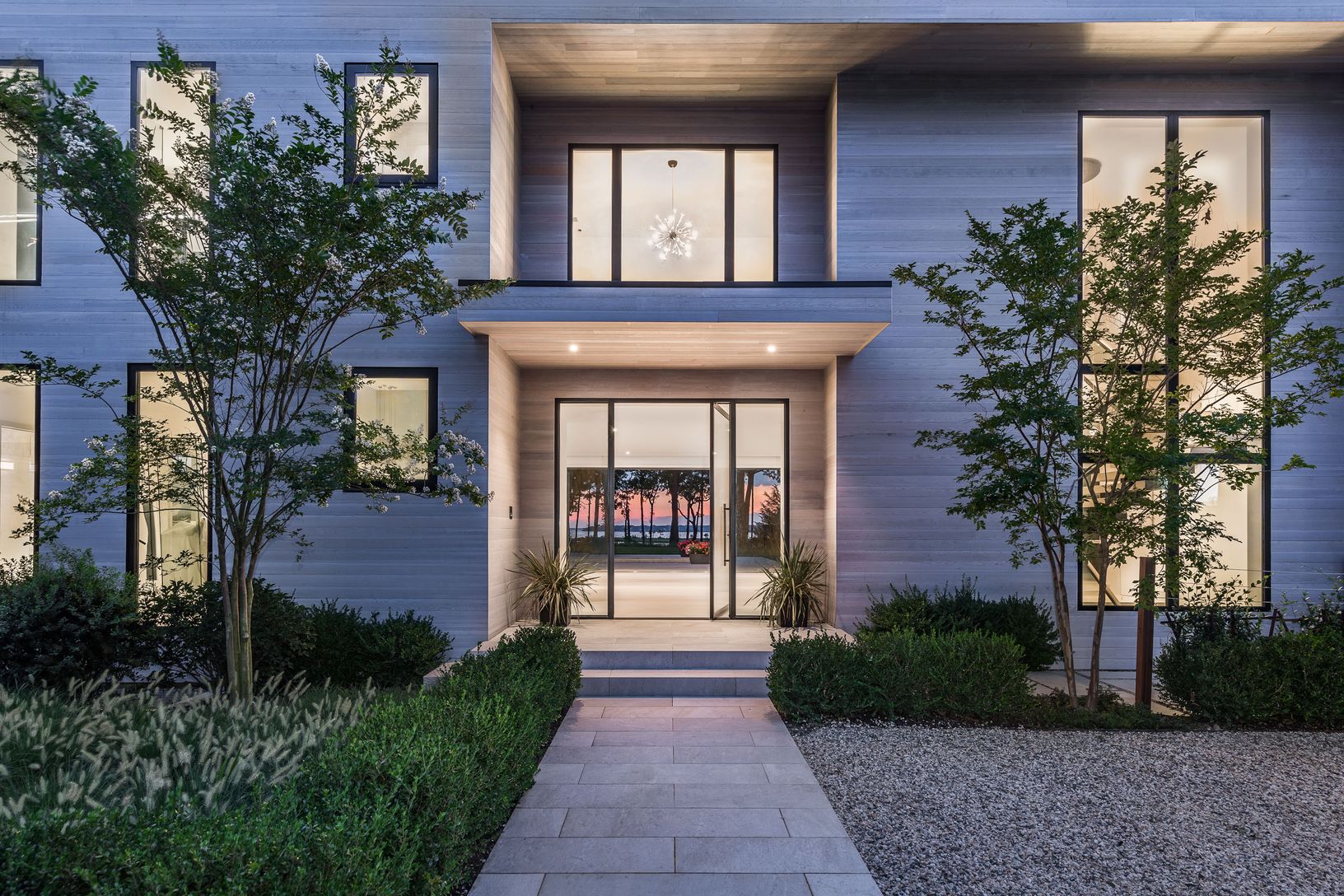 New North Haven residence with spectacular sunset and water views. Privately situated on just under two acres, the driveway leads through wildflowers and dogwoods to an impressive glass entranceway, with the bay and sunsets beyond. Twenty foot folding glass doors in all significant rooms provide true indoor-outdoor living. Thoughtful design and quality construction. Swans and egrets glide through early morning mist, and impressive yachts frequ