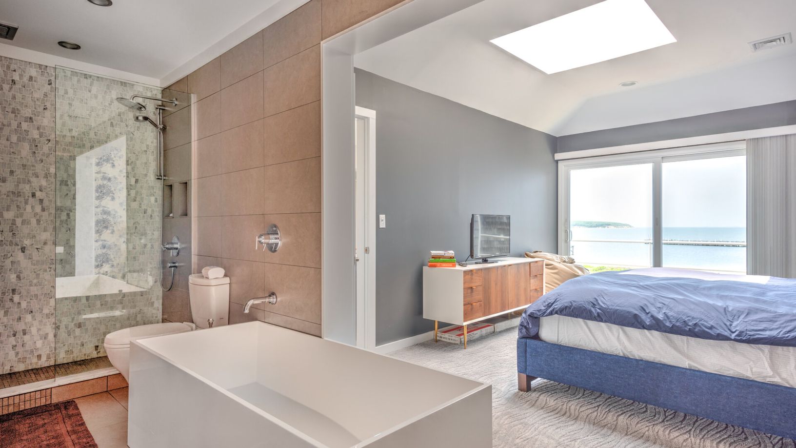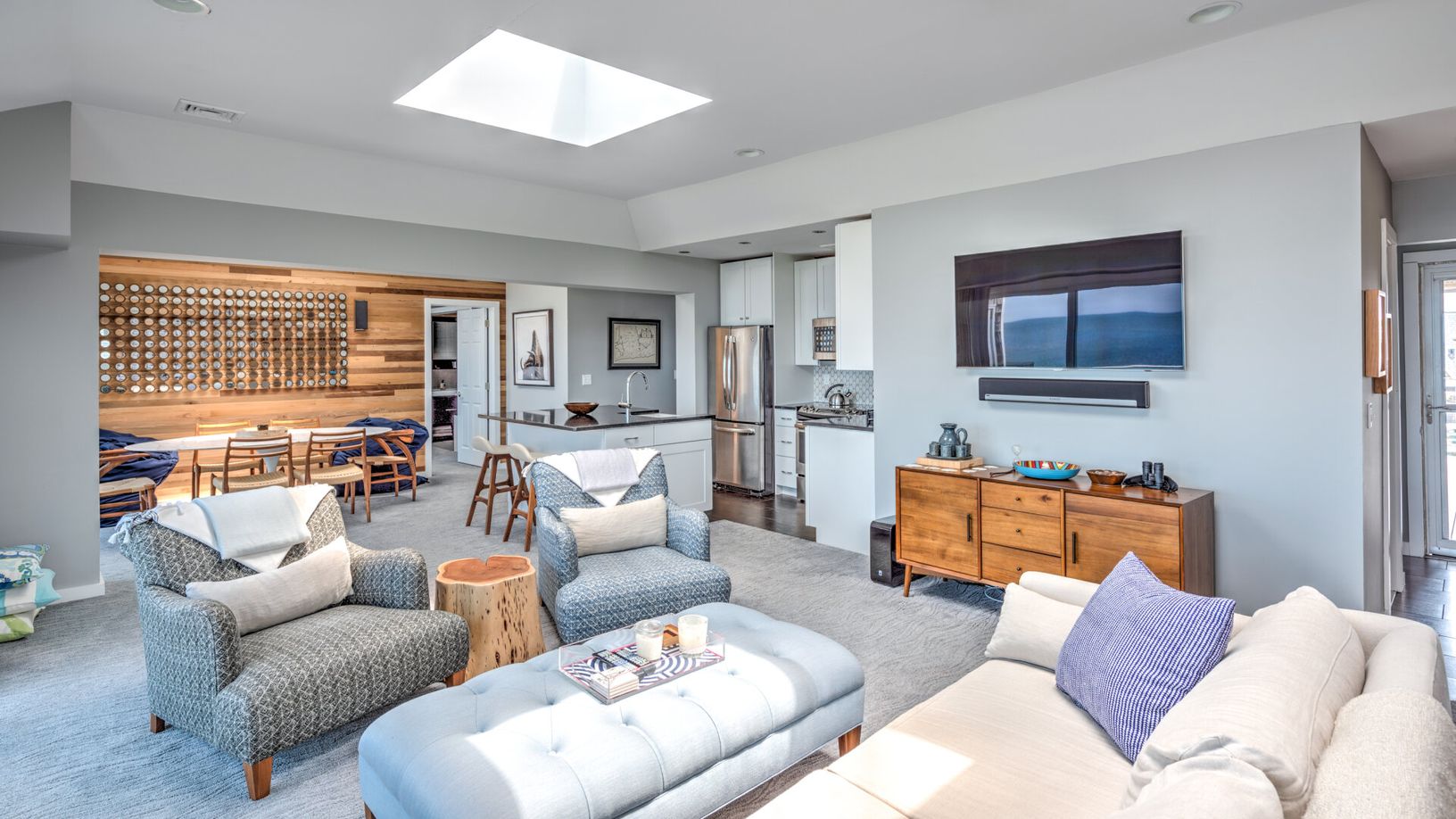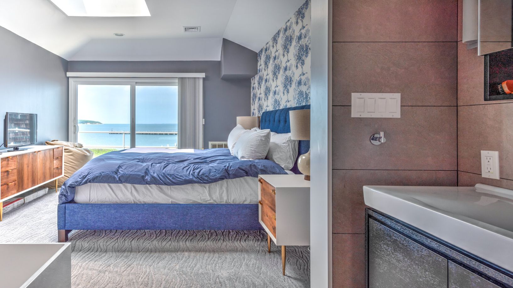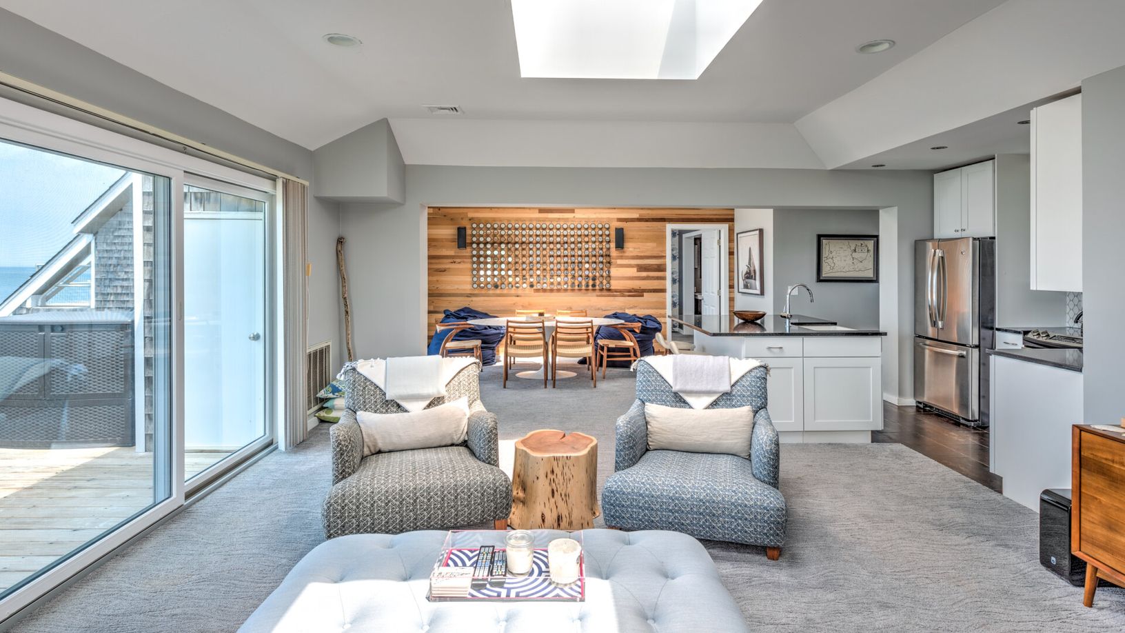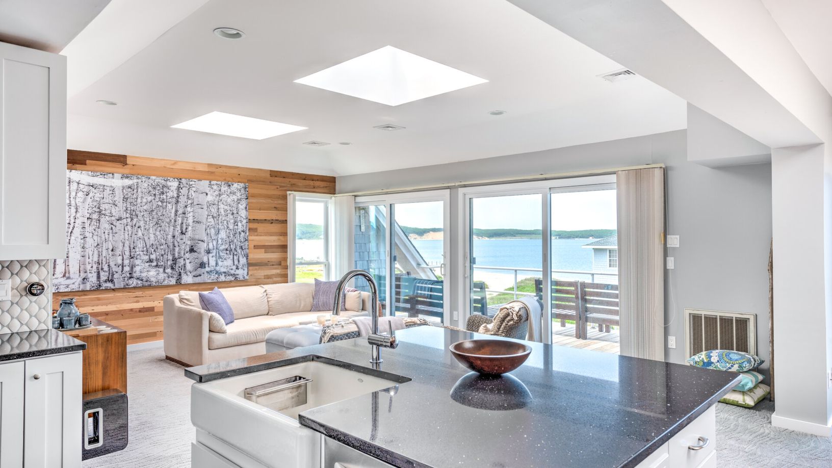 Escape to this spacious Montauk condo, ideally situated with private beach access to Fort Pond Bay and just minutes from the vibrant Ditch Plains Beach and the town center. This stunning property boasts an open floor plan that showcases breathtaking water views. Designed for a maximum occupancy of six, this three-bedroom, two-bathroom haven features expansive and brightly lit living spaces with multiple sitting and dining areas, creating the p