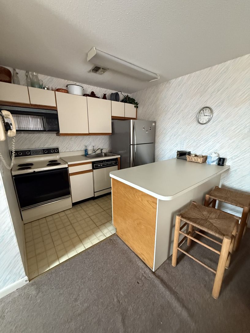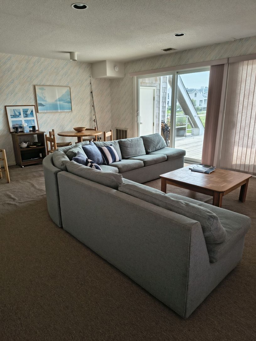 This 1-bedroom, 1-bathroom unit faces due west, offering breathtaking sunset views over Fort Pond Bay and toward Navy Beach. Step outside onto your private deck, the perfect spot for morning coffee, sunset cocktails, or unwinding after a day at the beach. The unit combines comfort and simplicity with the laid-back