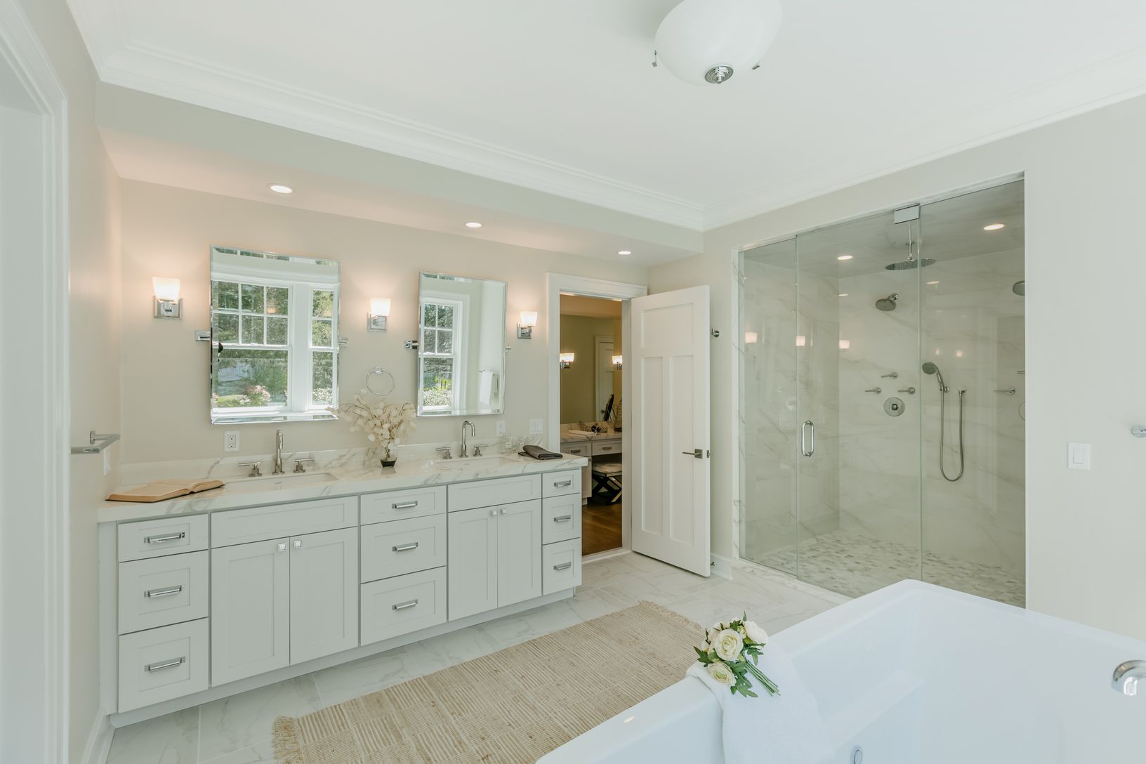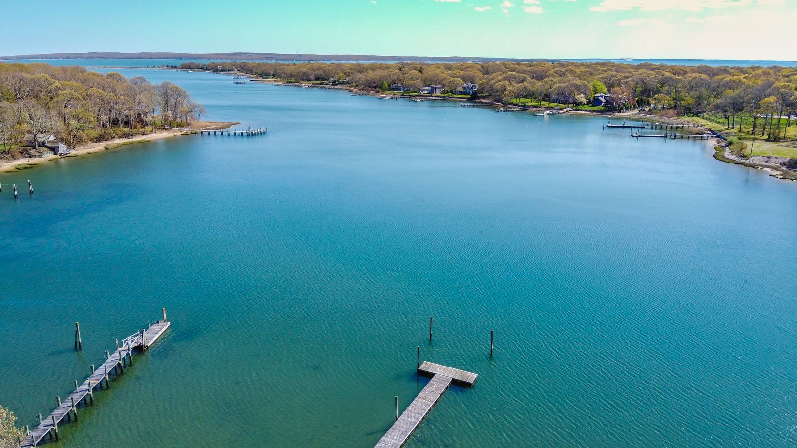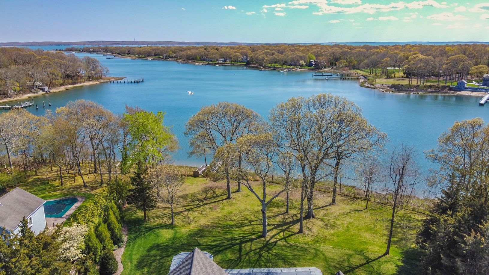 Newly built with waterside gunite pool and spa, and a deep water dock on 1.10 acre lot overlooking West Neck Creek. The first floor has a chefs kitchen, dining area, living room, and first floor master bedroom all look out to the expansive backyard with lawn stretching all the way to the beach and dock. The second floor has 4 additional en-suite bedrooms with balcony to enjoy the breathtaking views of West Neck Creek. The marina, SALT restaura