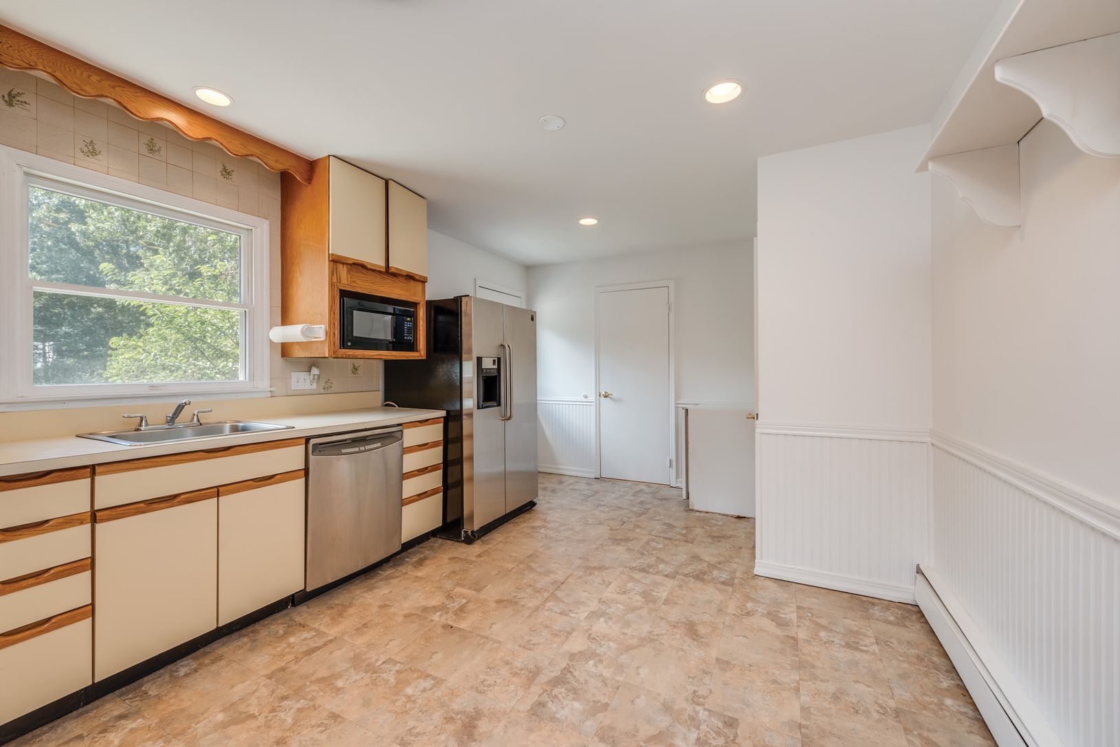Discover an attractive opportunity in East Hampton's bucolic Springs. This renovated two story, four bedroom, two bath Cape on a shy half acre, with a full basement and attached garage, also has a large 780+/- sq. ft. accessory building and paved and fenced-in large parking area, currently used as a garage-workshop, with a full second floor. An accessory structure of this size would be difficult to build again under the current building code,