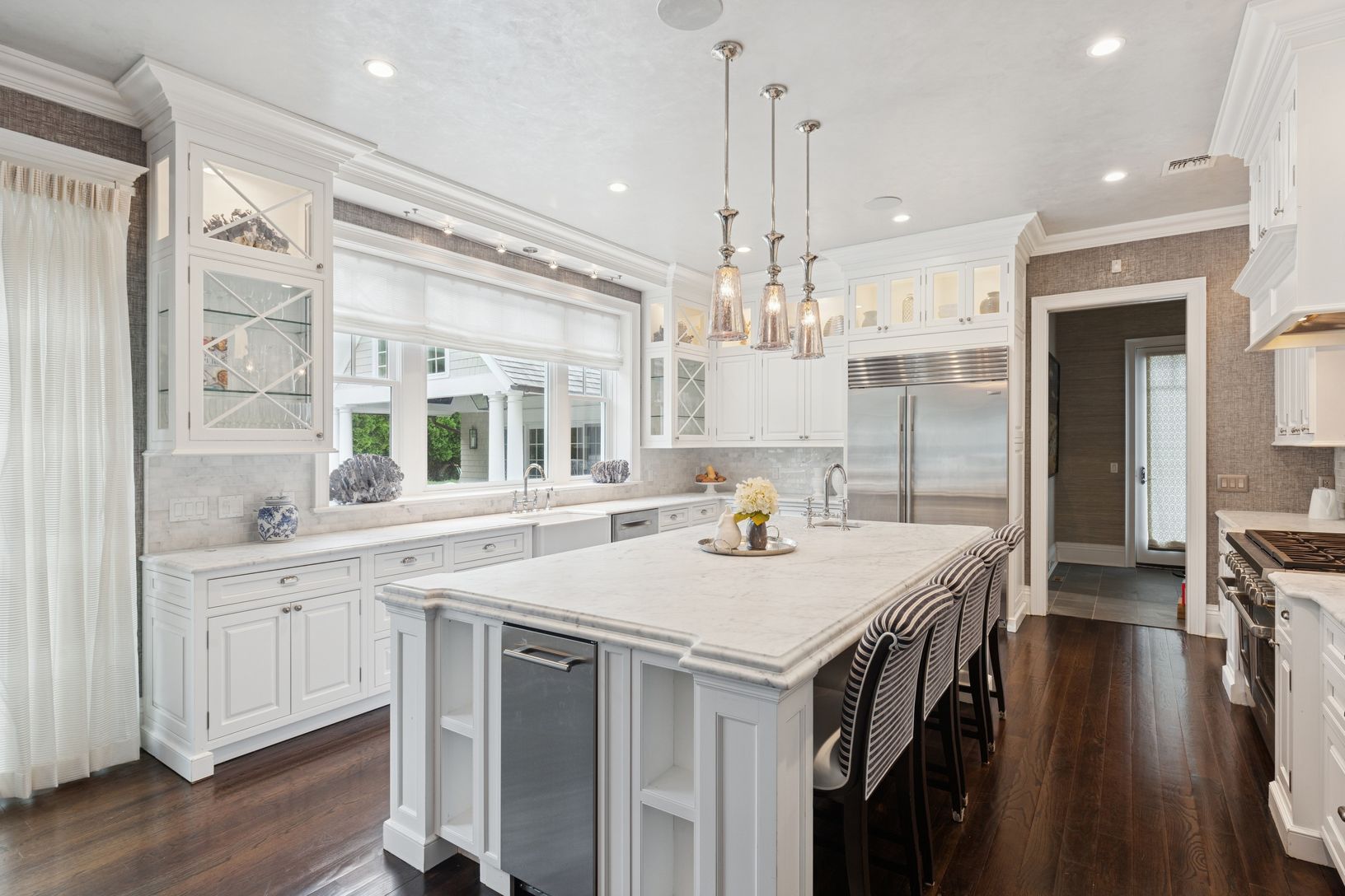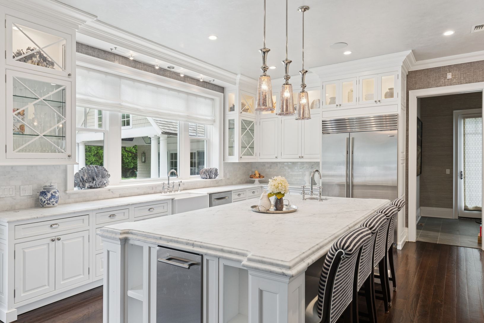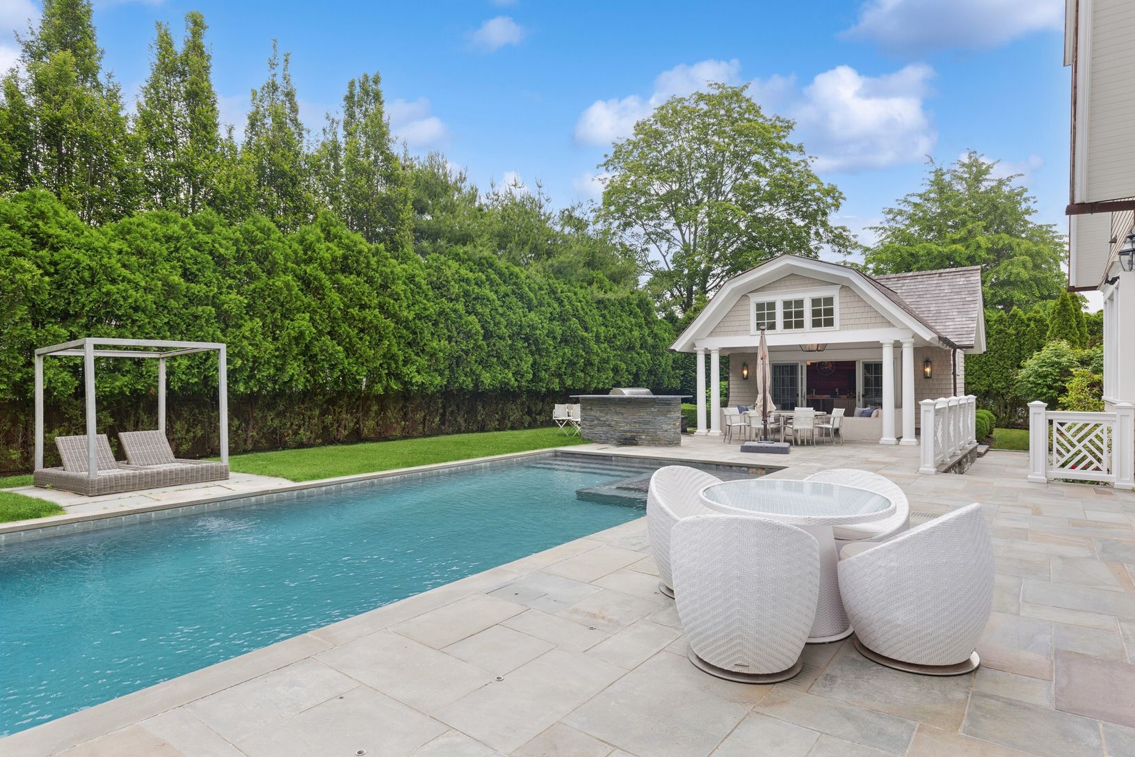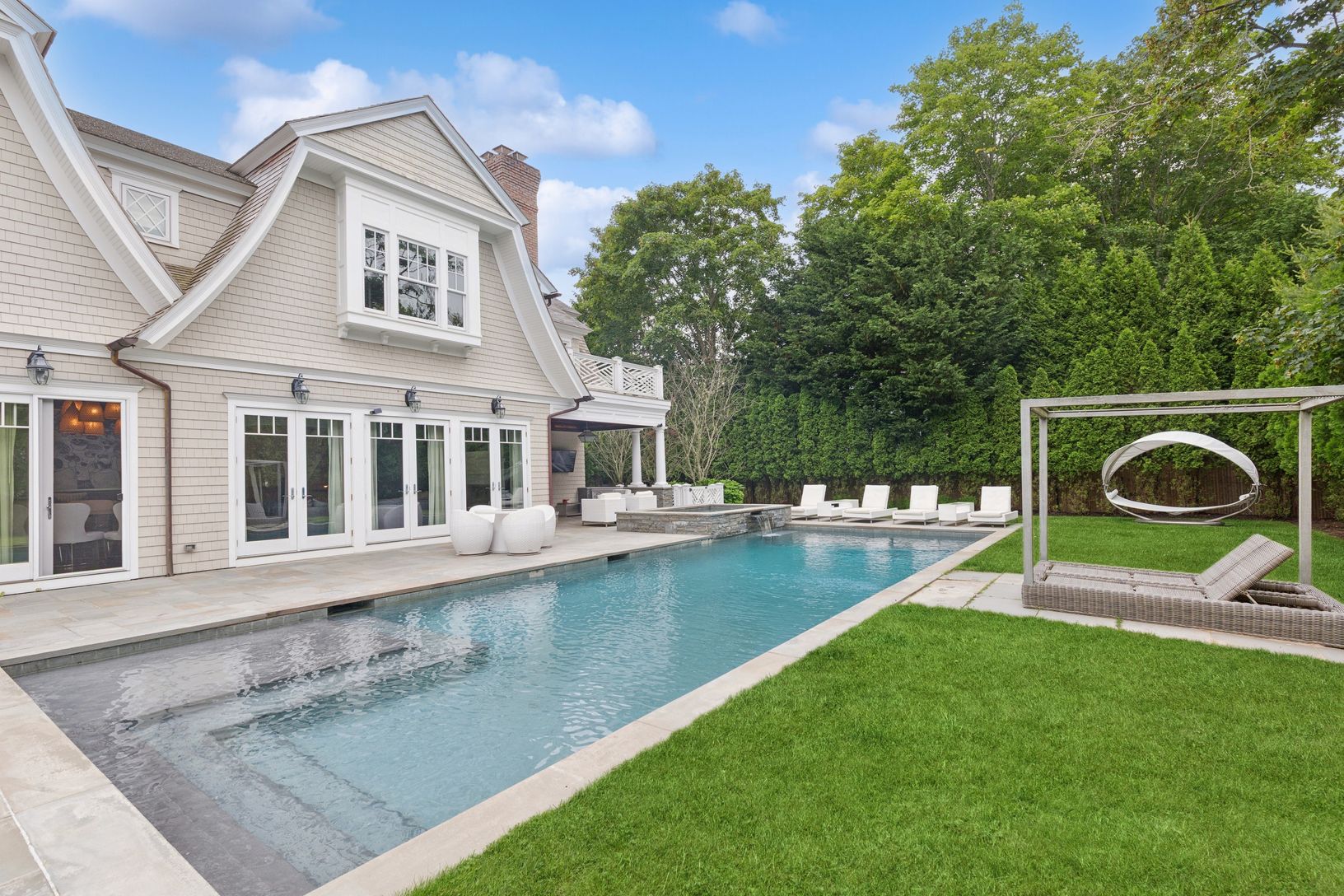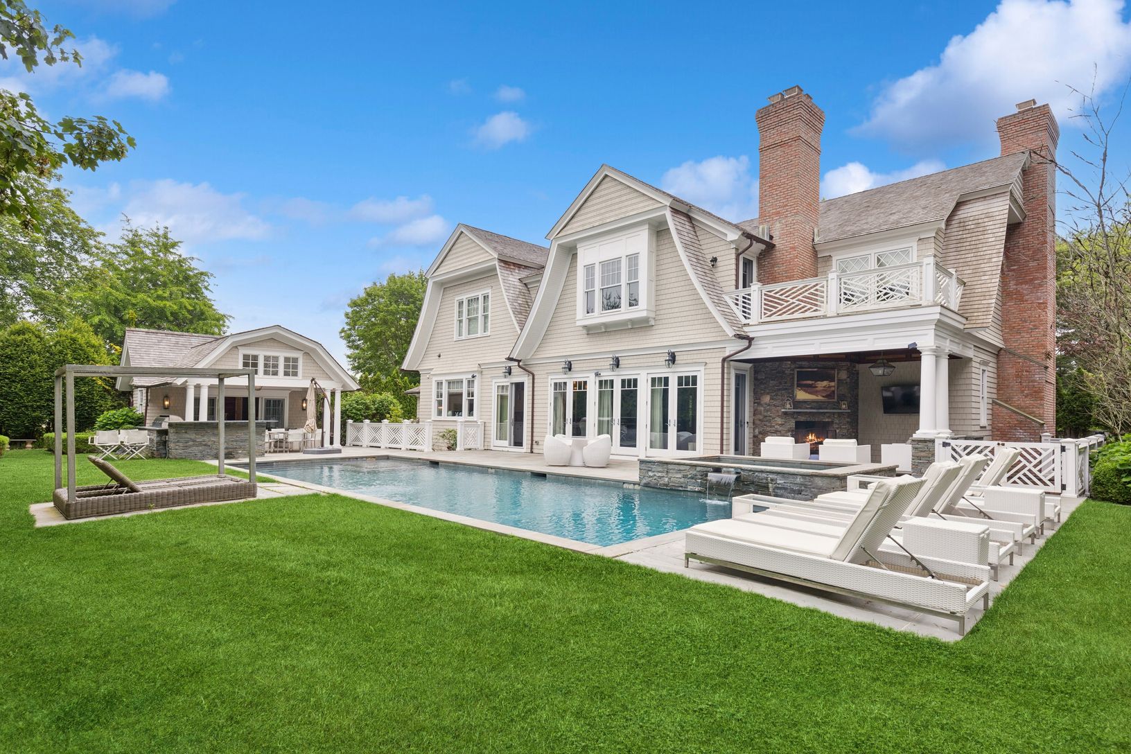 This luxurious, high-end custom residence, built by renowned Georgica builders, is located south of the highway in the estate section of Southampton Village. It perfectly sited on 0.50 acres and is architecturally designed to include every amenity a Hamptons lifestyle can offer. This sprawling, gated, gambrel style traditional gem comprises 6 ensuite bedrooms and 8 full baths, boasting 6,200 square feet of 2 stories with an impeccably finished