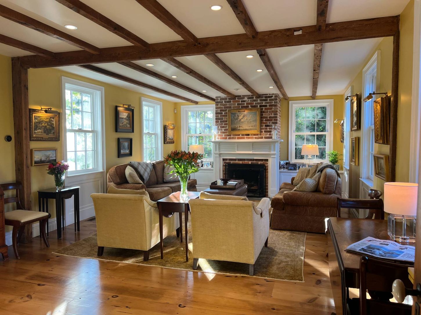 Built in the 1830s and fully restored in 2015, this charming home is steps from Main Street. It features a chef's kitchen, formal dining, spacious living room, office, and upstairs primary suite with fireplace. A bonus third-floor media/game room adds extra space. Outdoors, enjoy a heated saltwater pool, patio, and furnished cabana with loft and full bath. Elegant, comfortable, and inviting.