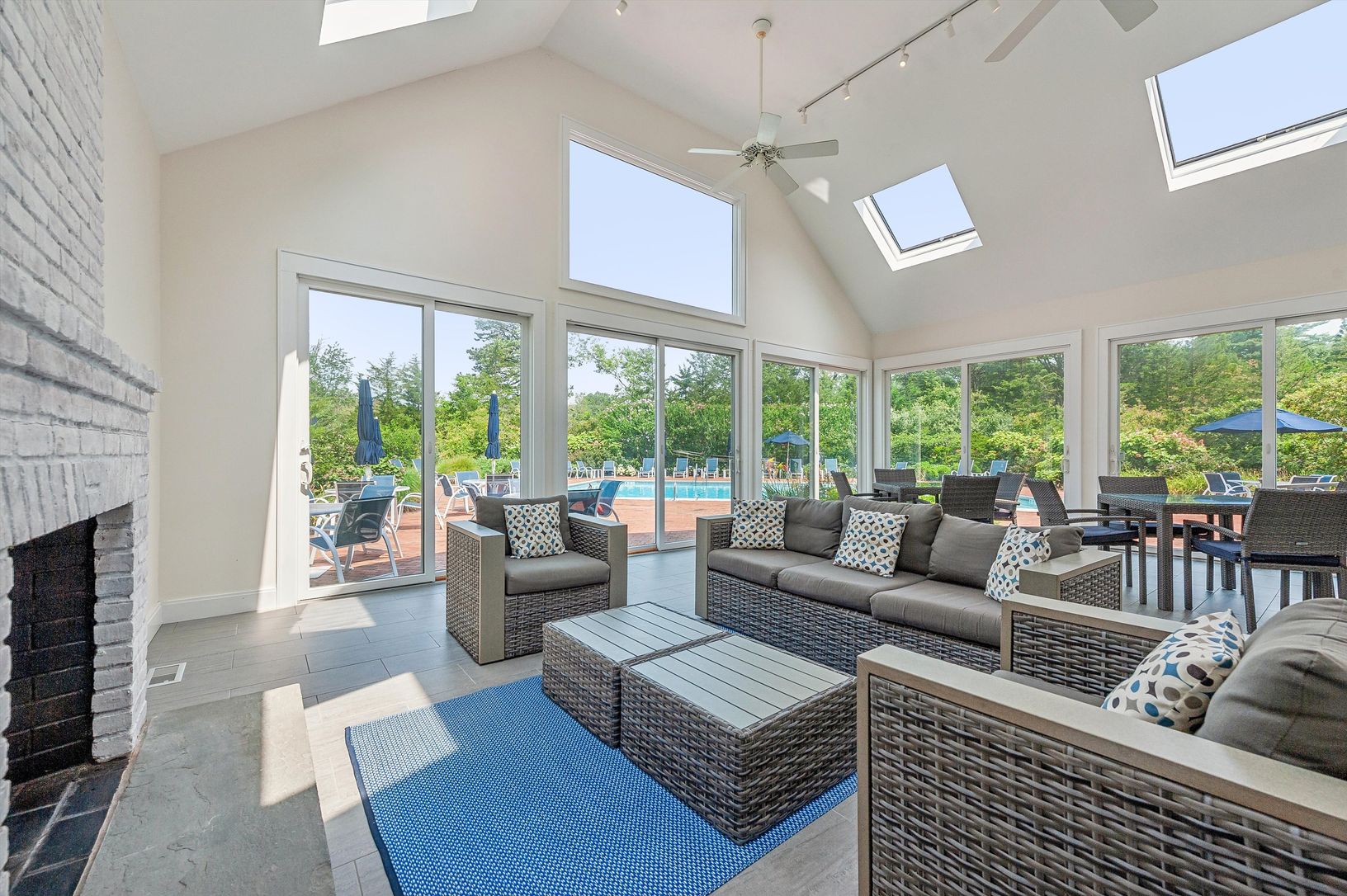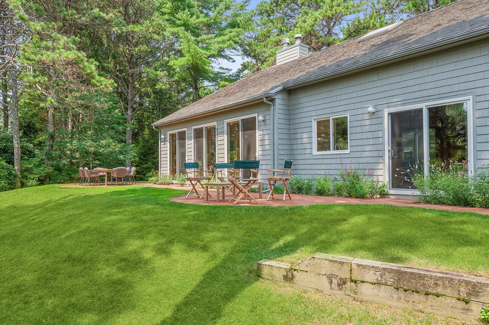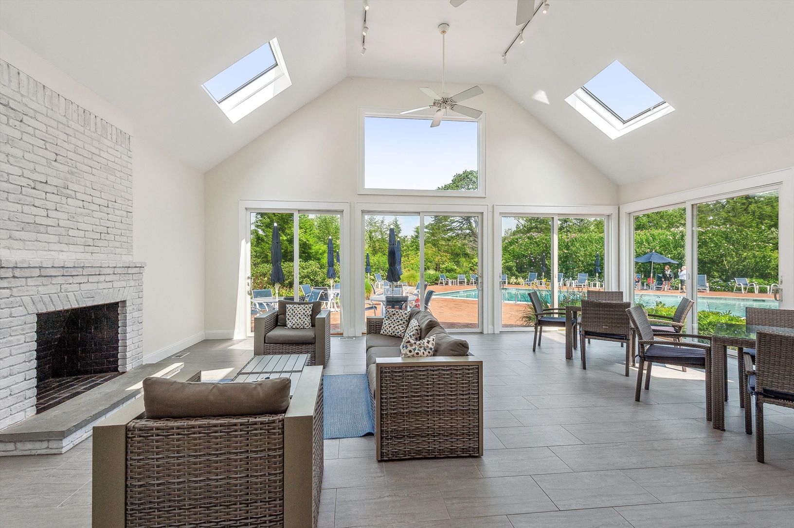 In the coveted Georgica Estates of East Hampton, you'll find this recently renovated, free standing townhouse at 23 Huckleberry Lane. Enjoy care free living in this 3 bedroom, 2 bath home. The one story structure allows for soaring ceilings in the entry way and over sized living area with wall to wall windows and sliders bringing in plenty of light. The property also features a one car garage, laundry room, community pool, and tennis. The eat