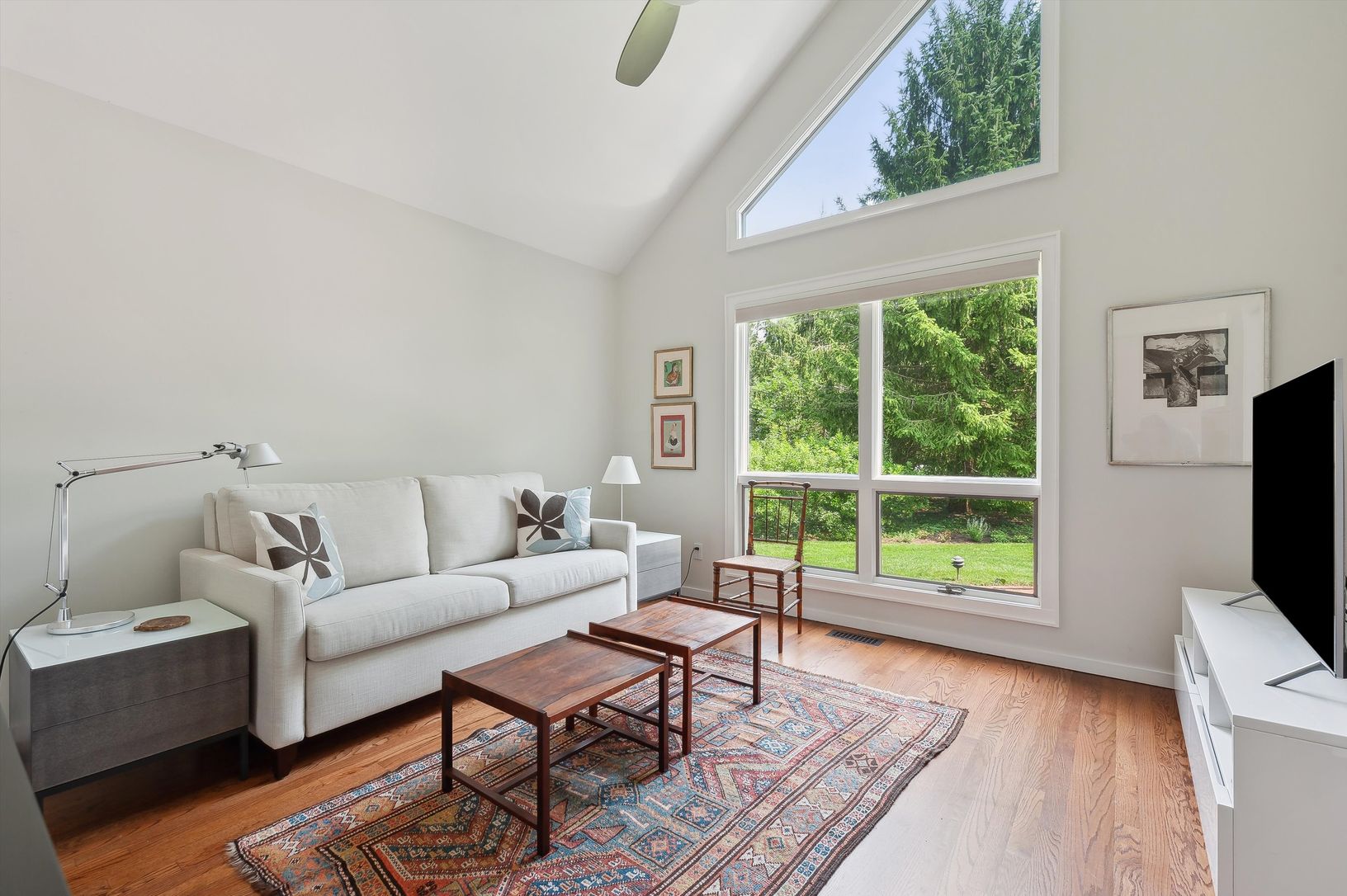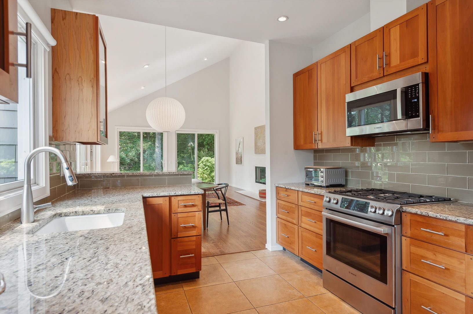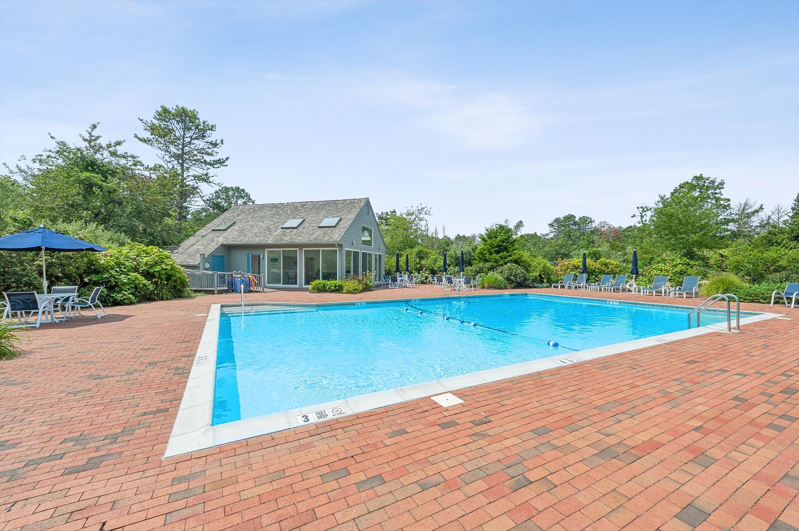 In the coveted Georgica Estates of East Hampton, you'll find this recently renovated, free standing townhouse at 23 Huckleberry Lane. Enjoy care free living in this 3 bedroom, 2 bath home. The one story structure allows for soaring ceilings in the entry way and over sized living area with wall to wall windows and sliders bringing in plenty of light. The property also features a one car garage, laundry room, community pool, and tennis. The eat