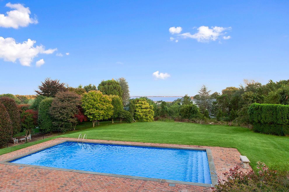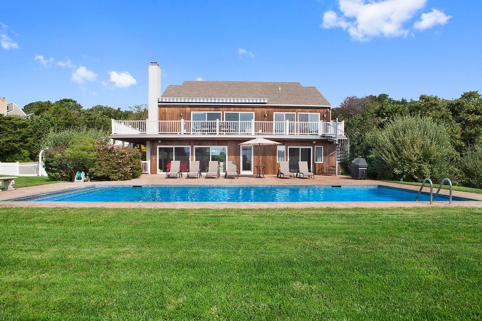 Let the bay breezes cool you as you relax on the expansive deck affording distant bayviews of Shinnecock Bay and the Ocean or unwind by the pool in this beautiful contemporary located south of the highway in a community with deeded bay access. This spacious home is tucked away on a quiet cul-de-sac just minutes from Southampton Village & ocean beaches and features 4 bedrooms, 3-1/2 baths, Great room with media center and fireplace, cathedr