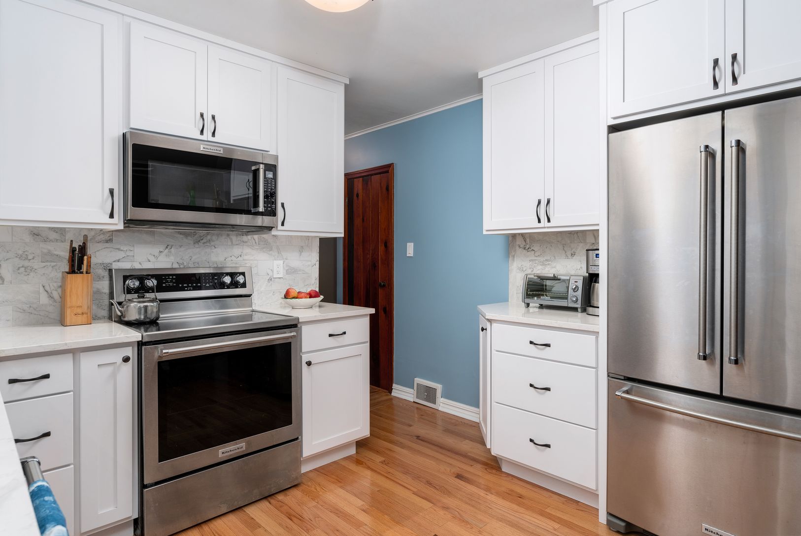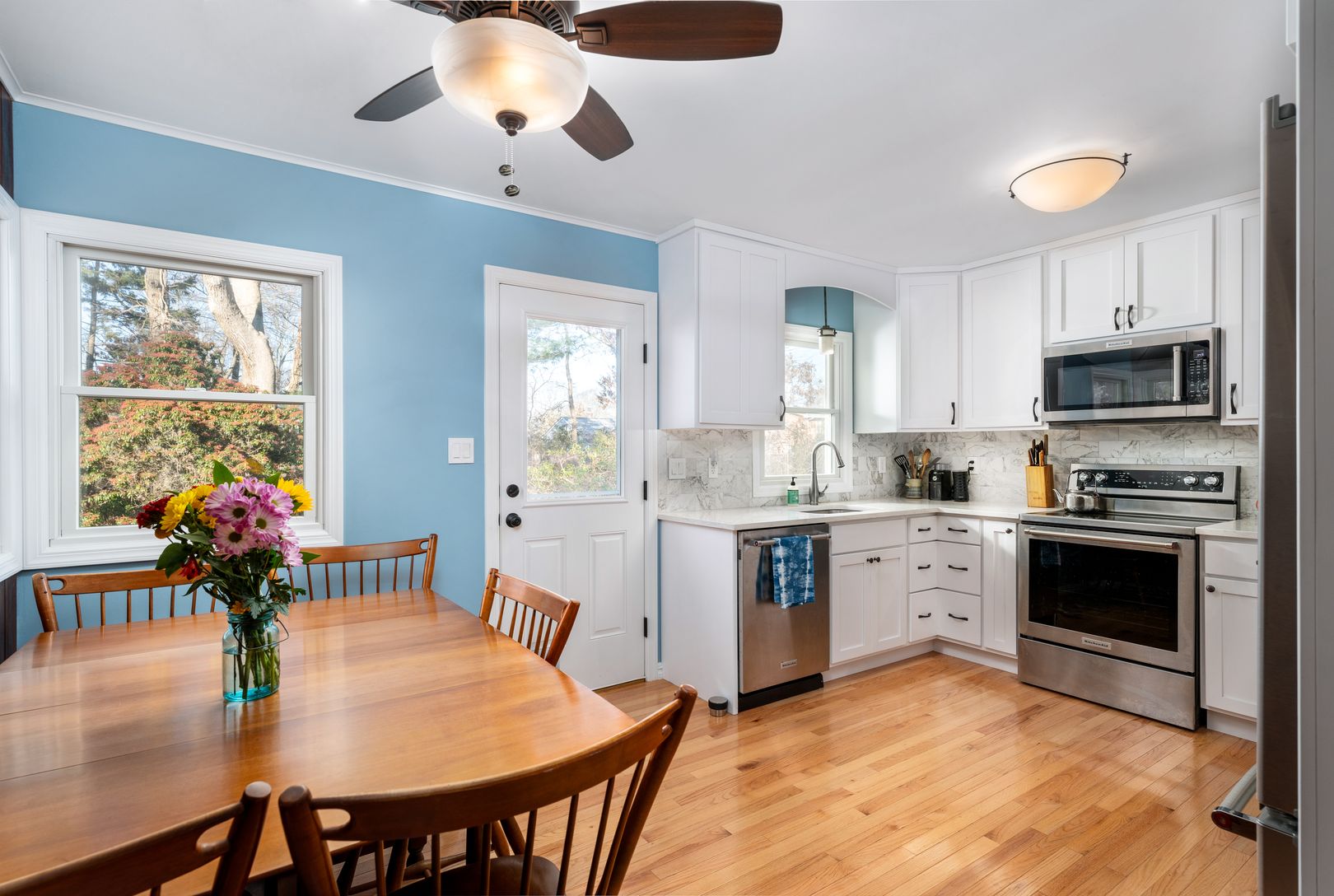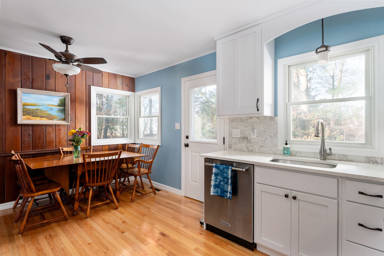 Public Remarks:Location, condition, function … this sunny, South-of-the Highway charmer has it all! Extensively renovated, with a focus on function, comfort and warmth. Living room features stone fireplace and bay window. Hardwood floors throughout. Recently remodeled kitchen with quartz countertops, S/S appliances, pull outs, and additional pantry storage. Three bedrooms and fully renovated bath (tub/shower) comprise one end, while family roo