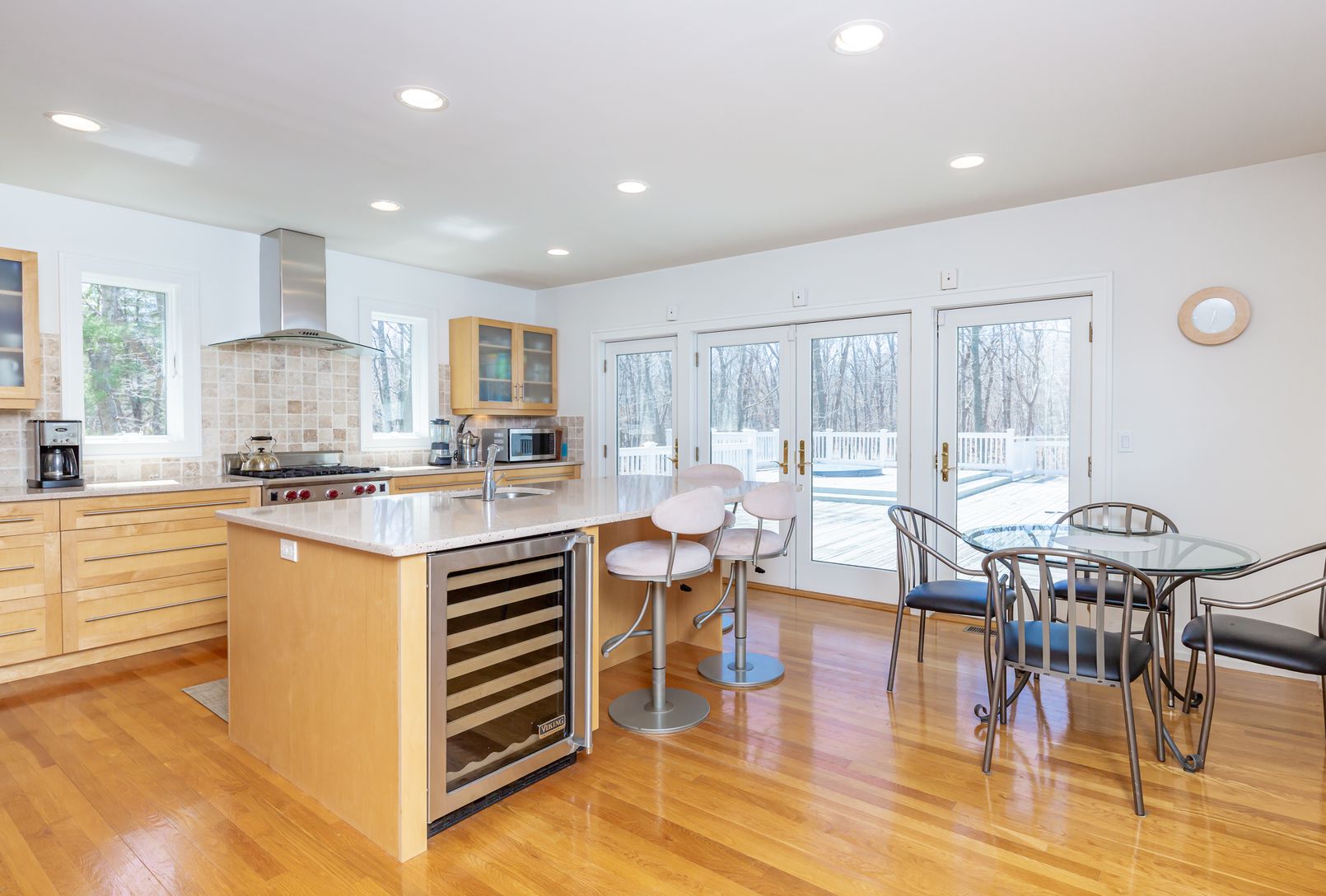 Modern 4 bedroom, 4 bath on one beautiful acre bordering acres of preserved land. Located in desirable northwest area with private access to bay beach within walking distance. The granite and tiled kitchen features a top-of-the-line chef's stove, wine fridge and island with barstool seating as well as a cozy breakfast nook. The main floor has a large open floor plan with double-height living room, fireplace and separate dining area with skylig
