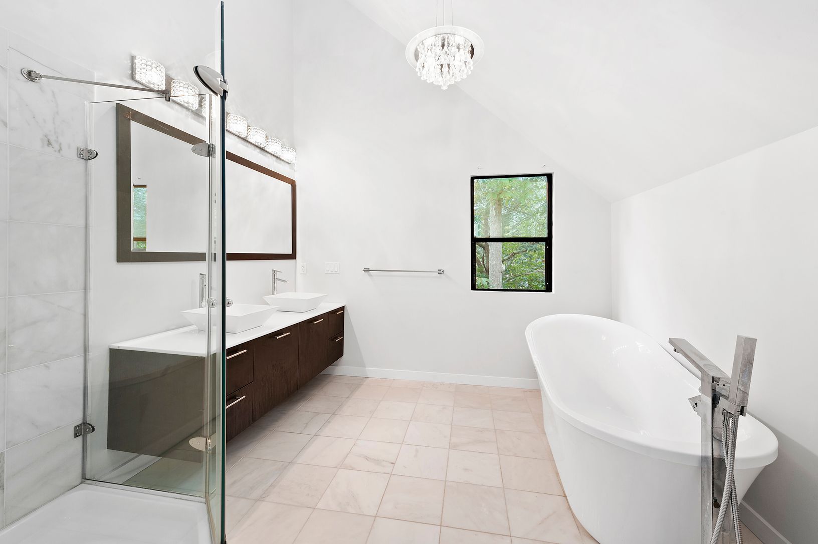 Sophisticated and comfortable, this 3000+ sq ft contemporary is located in the desirable Landfall community of the Northwest Woods, East Hampton. This prestigious neighborhood includes a private bay area with breathtaking views and conveniently located near Cedar Point Park. Enjoy the nature trails and secluded overlook to Sag Harbor while having breakfast or lunch at the local store.This house features a welcoming entryway seamlessly flowing