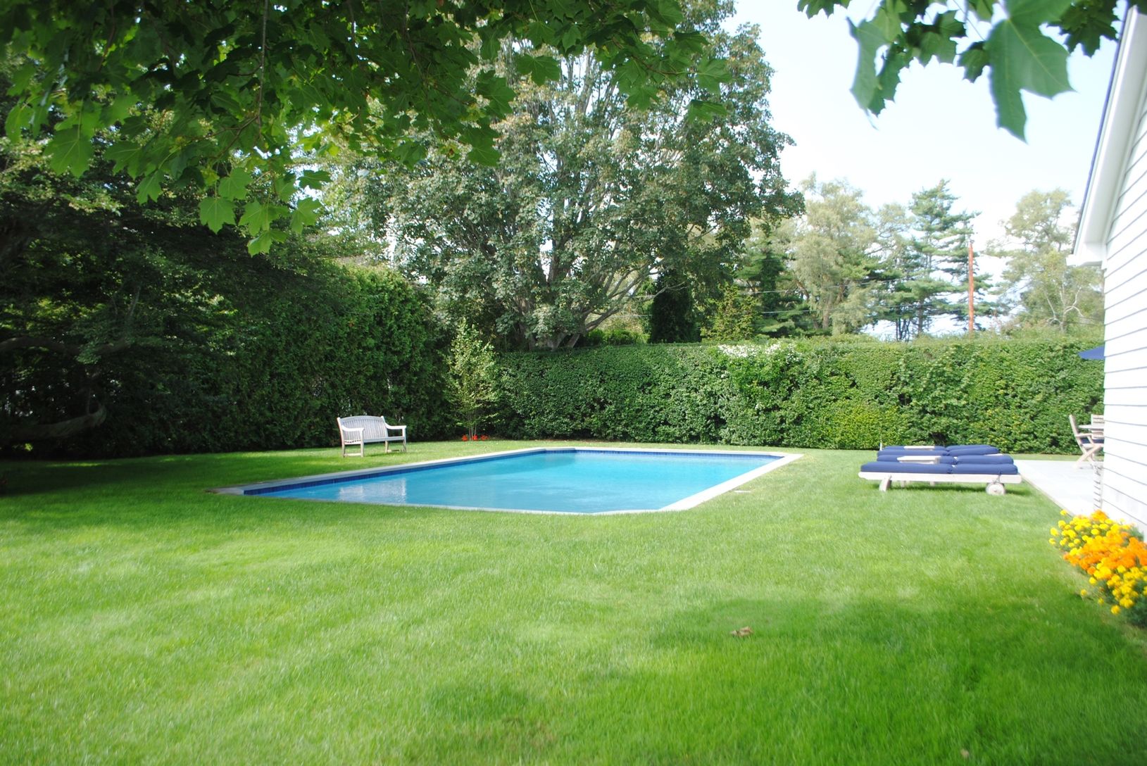 Well-located new 5 bedroom, 5 bath Traditonal on a tranquil Village lane, moments from several village ocean beaches. First floor has master bedroom, ensuite guest bedroom and small bedroom and hall bath near stylish den. Living Room with fireplace, Eat-in-Kitchen, 2 upstairs bedrooms and baths. Lower level with hybrid infra-red sauna. French doors out to Terrace, lawn and heated gunite pool.