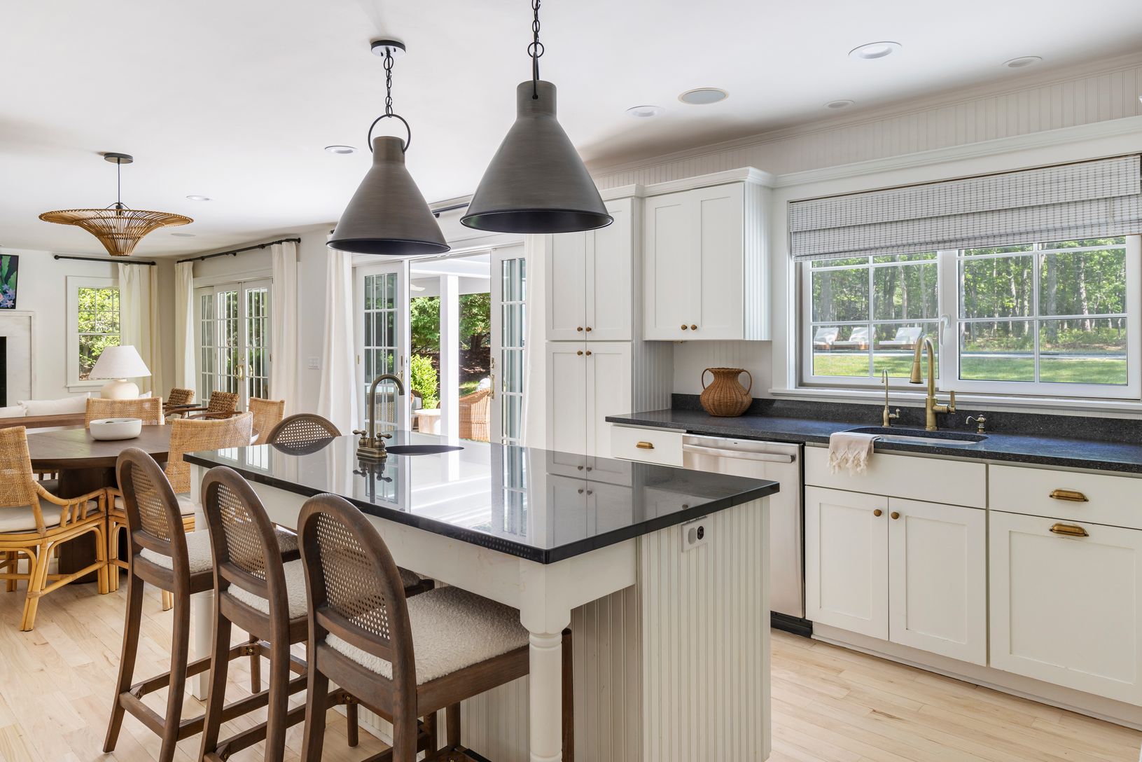 Perfectly located on a quiet street near East Hampton Village, this professionally designed and recently renovated home offers a serene beach retreat. The home features 4 bedrooms plus a spacious loft with a king bed and bunk beds. Every detail—from luxury linens to curated furnishings—was chosen to ensure rest, comfort, and rejuvenation. The main floor includes a mudroom, dining room, living room, kitchen with dining area, and a cozy family r