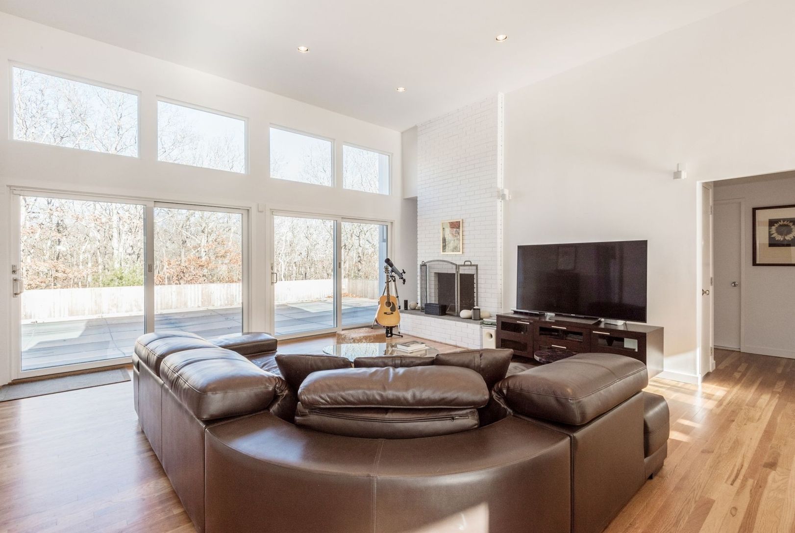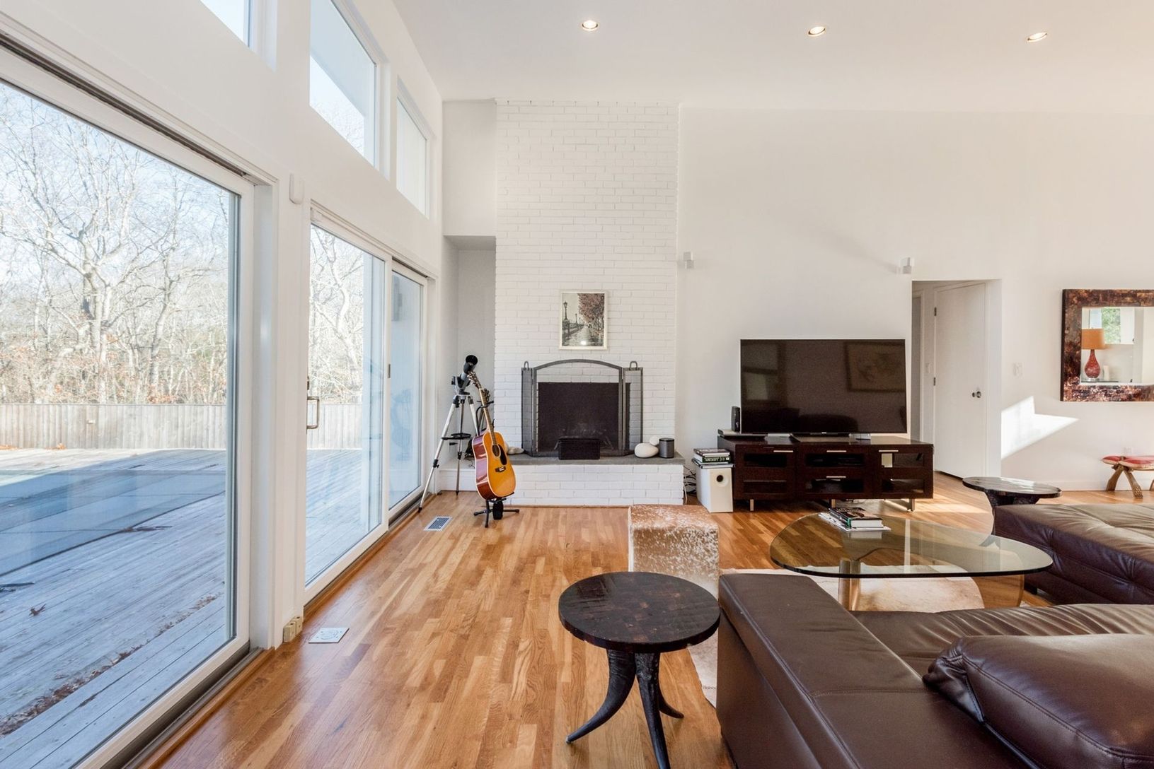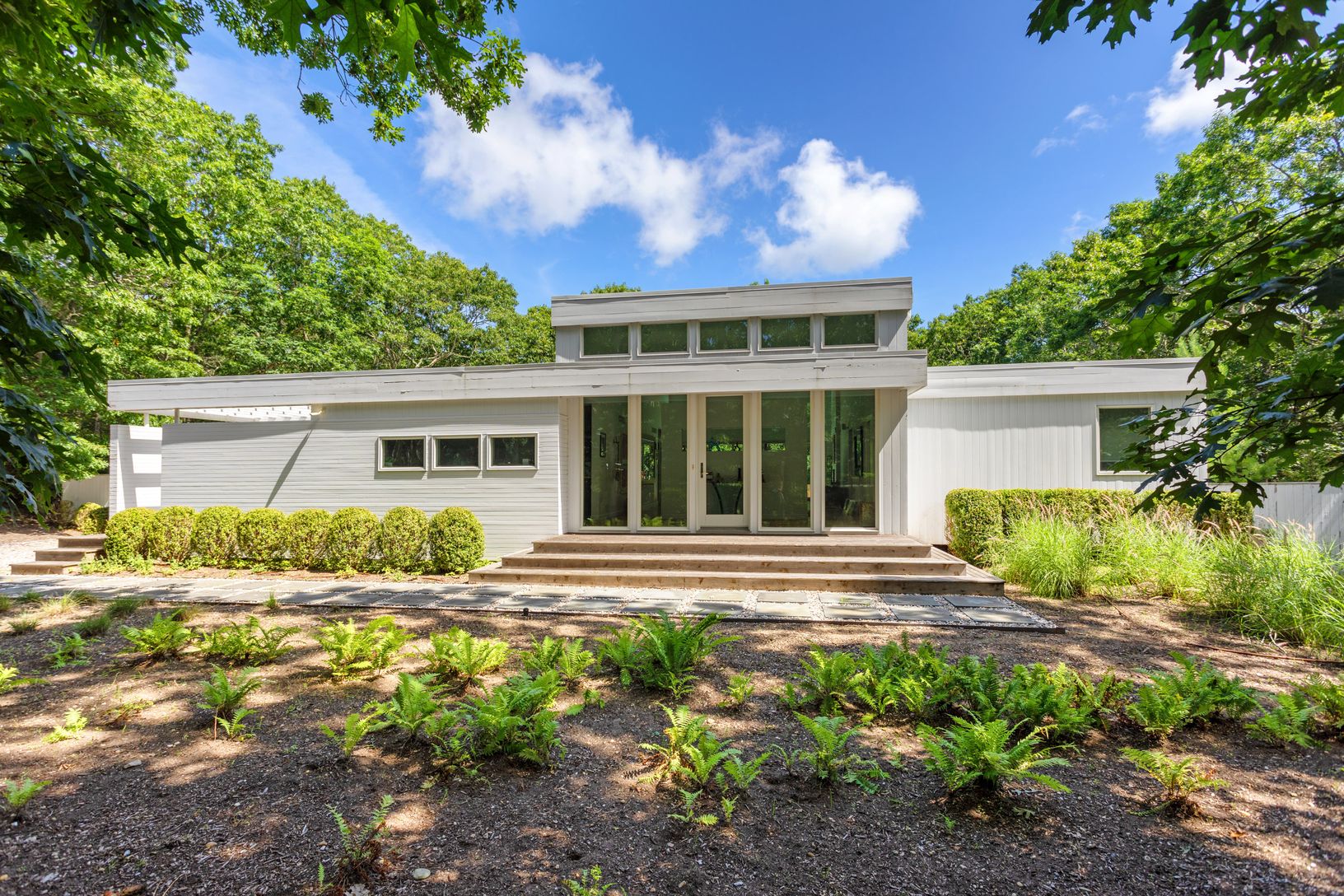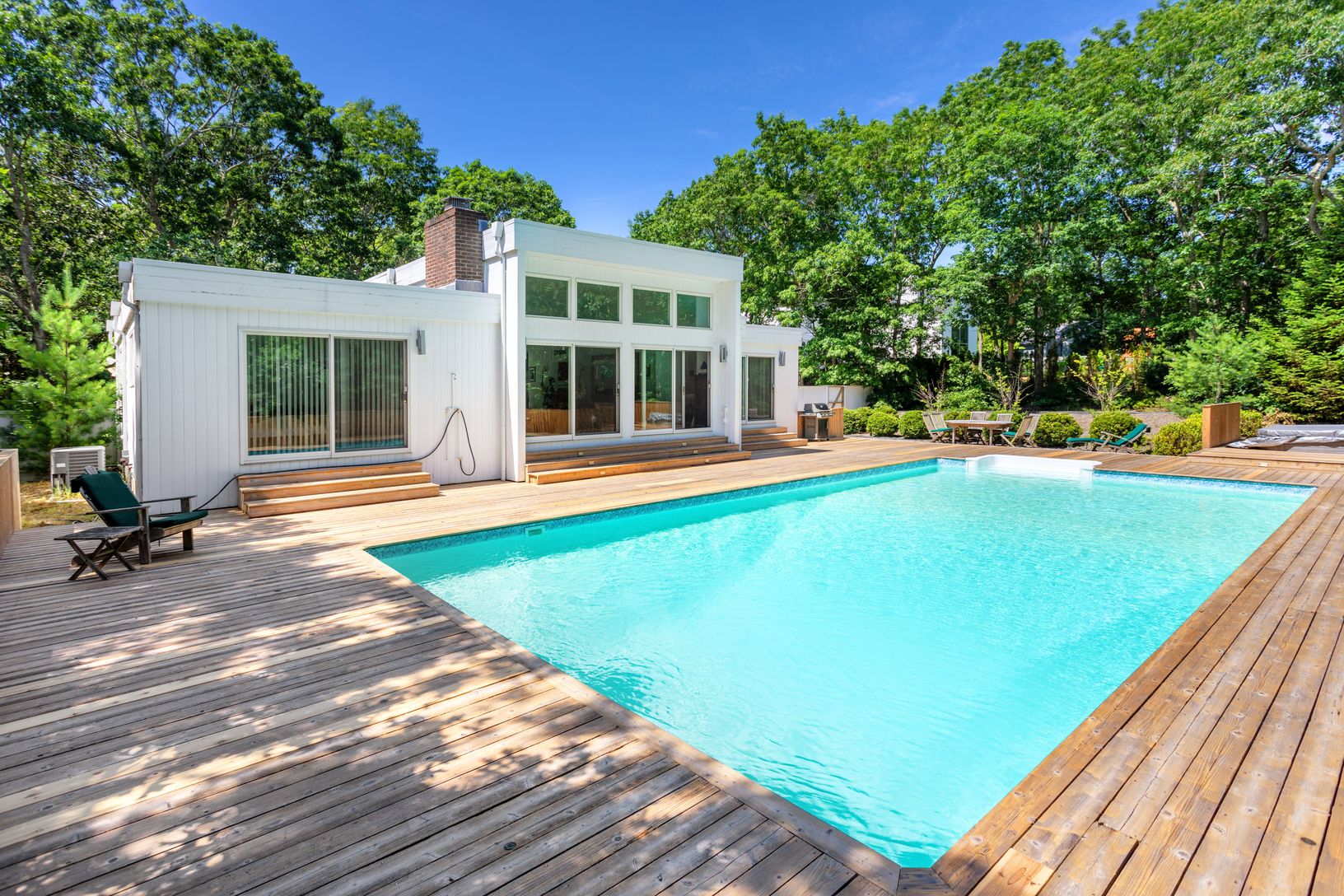 This three-bedroom contemporary will give you many reasons to smile. You will appreciate the privacy of this home as it sits in its mature landscape, it is bounded on two sides by town reserve, and set way back from the road. The sliding glass doors will welcome you in to a great room with hardwood floors and wood-burning fireplace. The kitchen is fully renovated featuring a Wolf stove and Sub-Zero refrigerator. There are three spacious bedroo