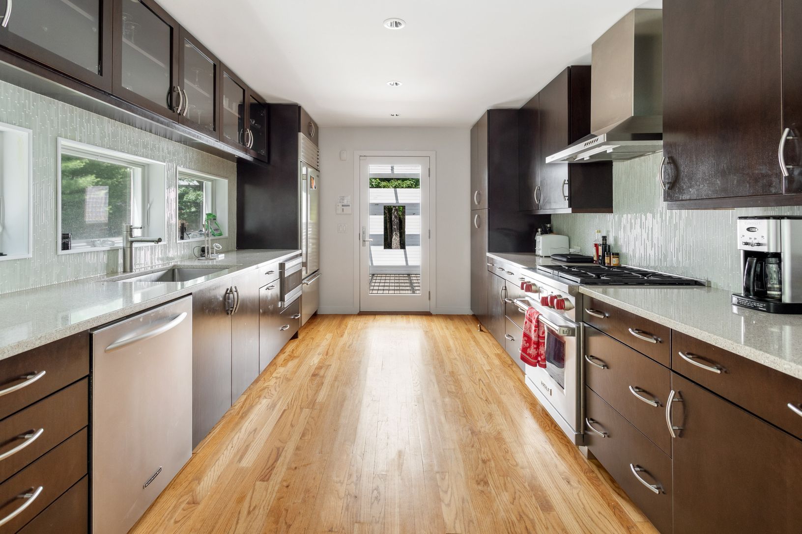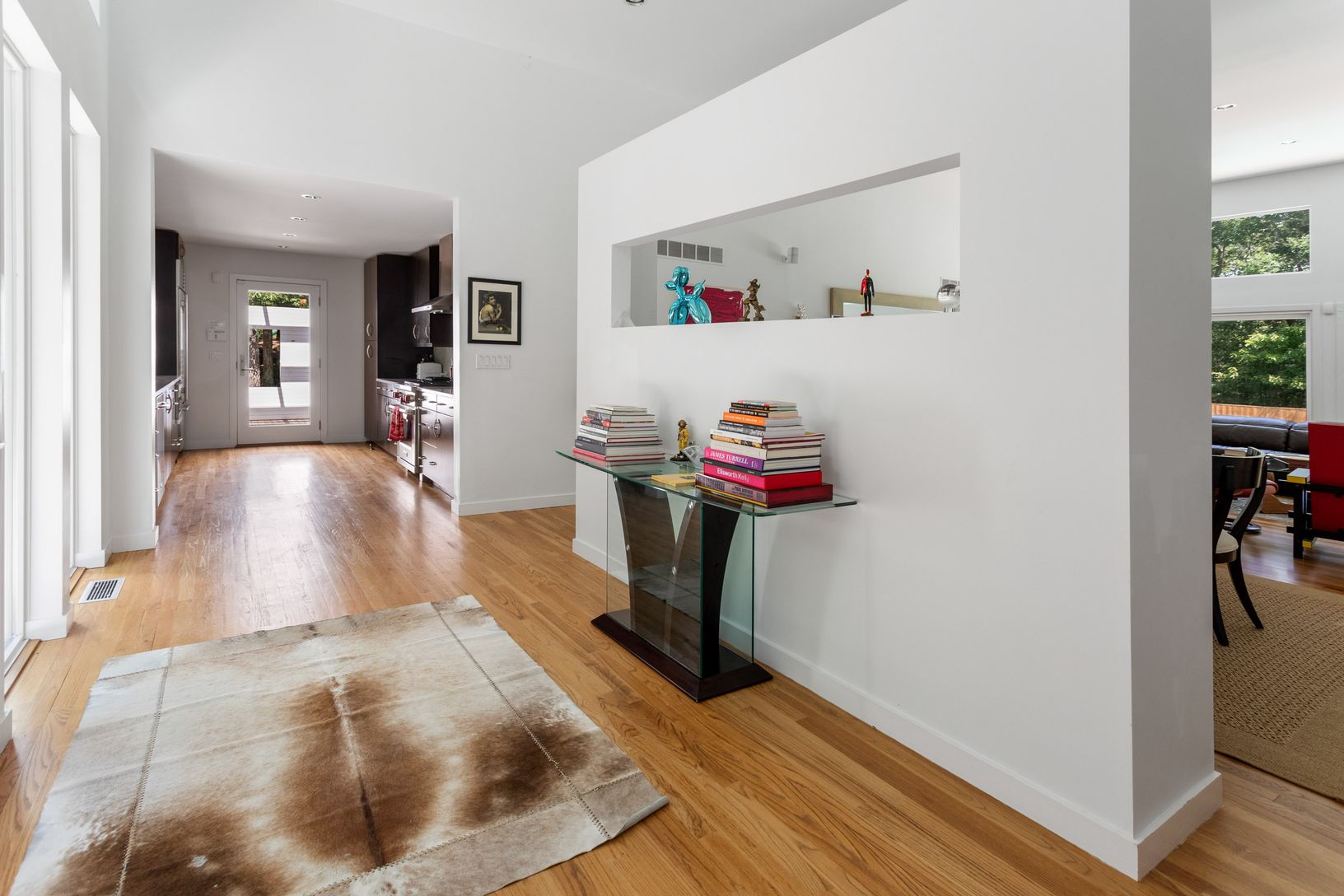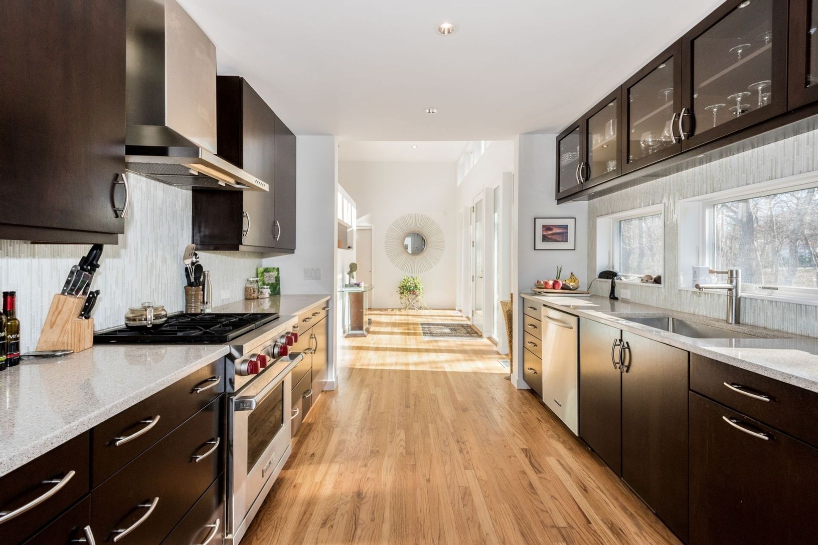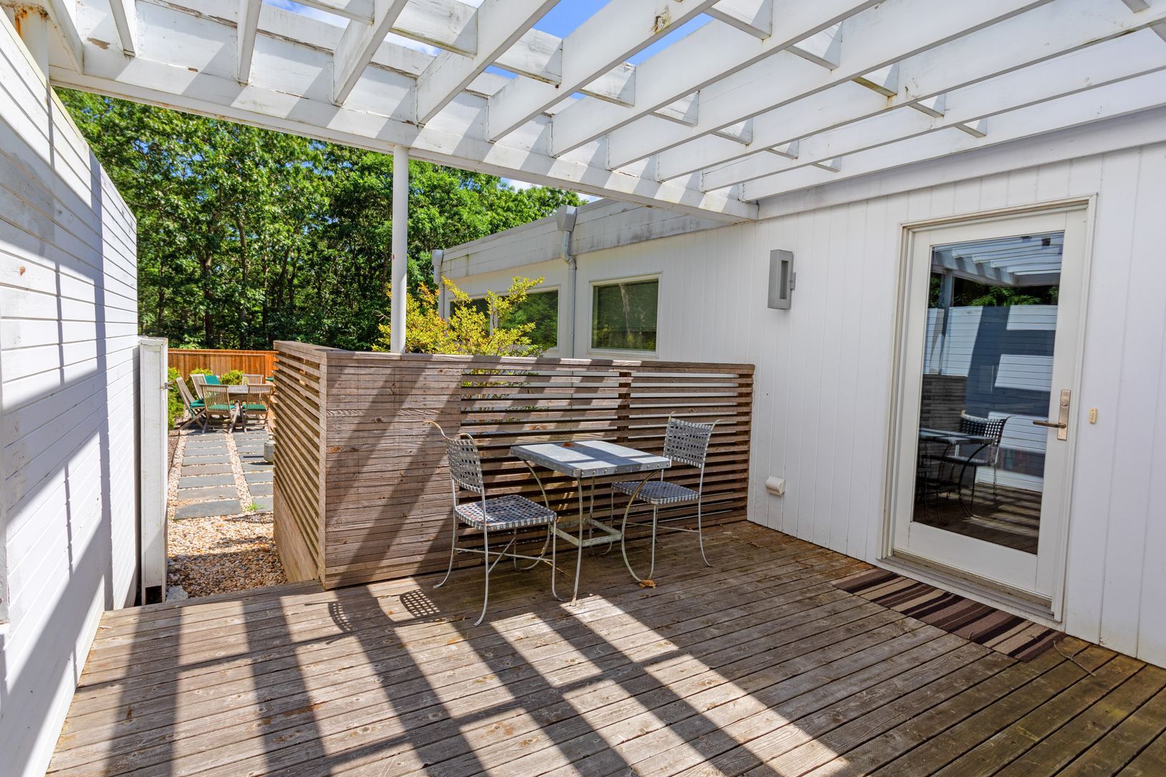 This three-bedroom contemporary will give you many reasons to smile. You will appreciate the privacy of this home as it sits in its mature landscape, it is bounded on two sides by town reserve, and set way back from the road. The sliding glass doors will welcome you in to a great room with hardwood floors and wood-burning fireplace. The kitchen is fully renovated featuring a Wolf stove and Sub-Zero refrigerator. There are three spacious bedroo