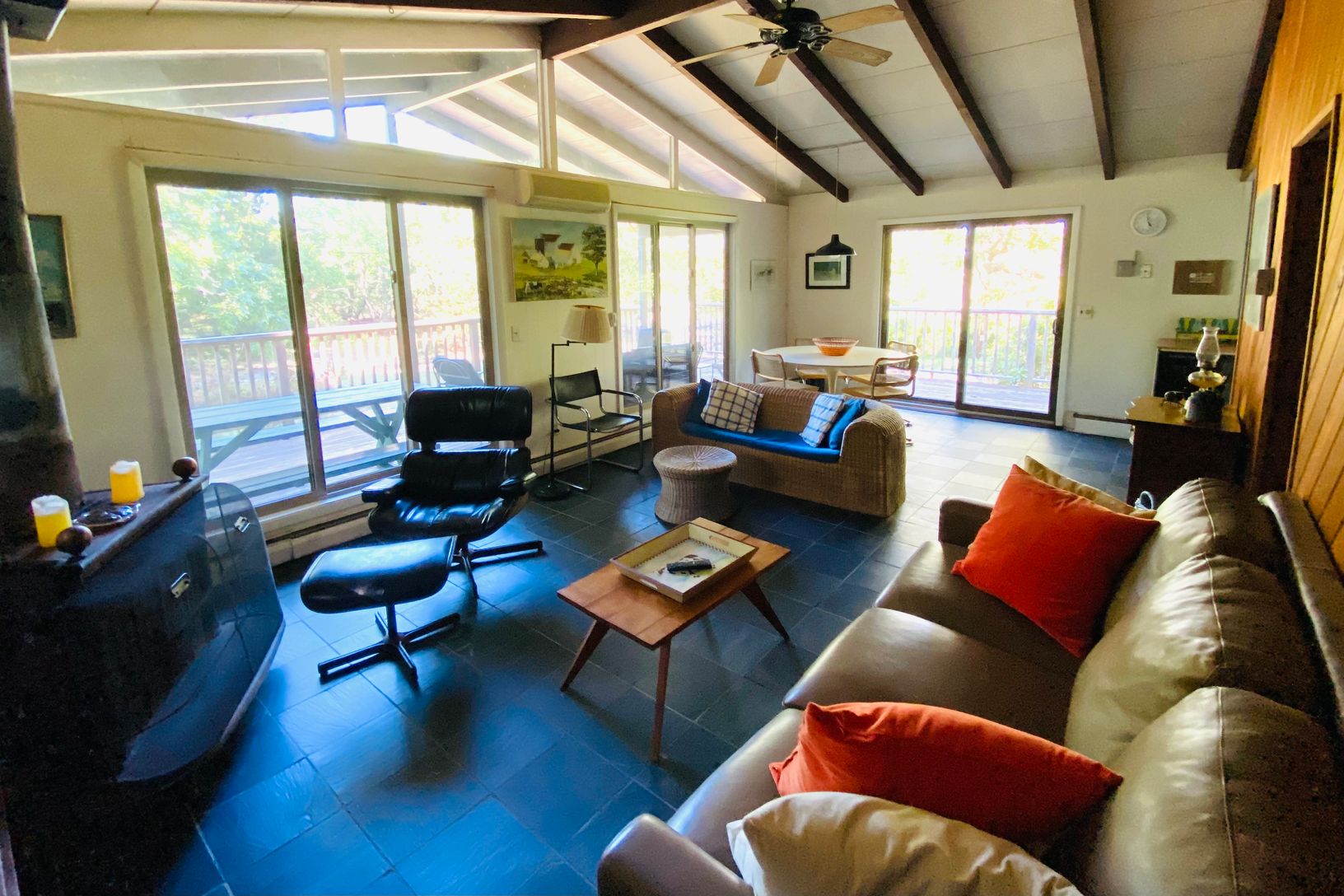 New to market - a mid-century beach cottage located in close proximity to Sammys Beach and it's 116 acre preserve that borders both Gardiner's Bay and Three Mile Harbor. On .46 acre, this cottage is prime for refurbishment and/or expansion. This modest home currently has 2 bedrooms and 1 bathroom, with a classic mid-century gable-roofed living room, surrounded on 3 sides by a wrap around deck. A walk-out, unfinished basement, offers the opport
