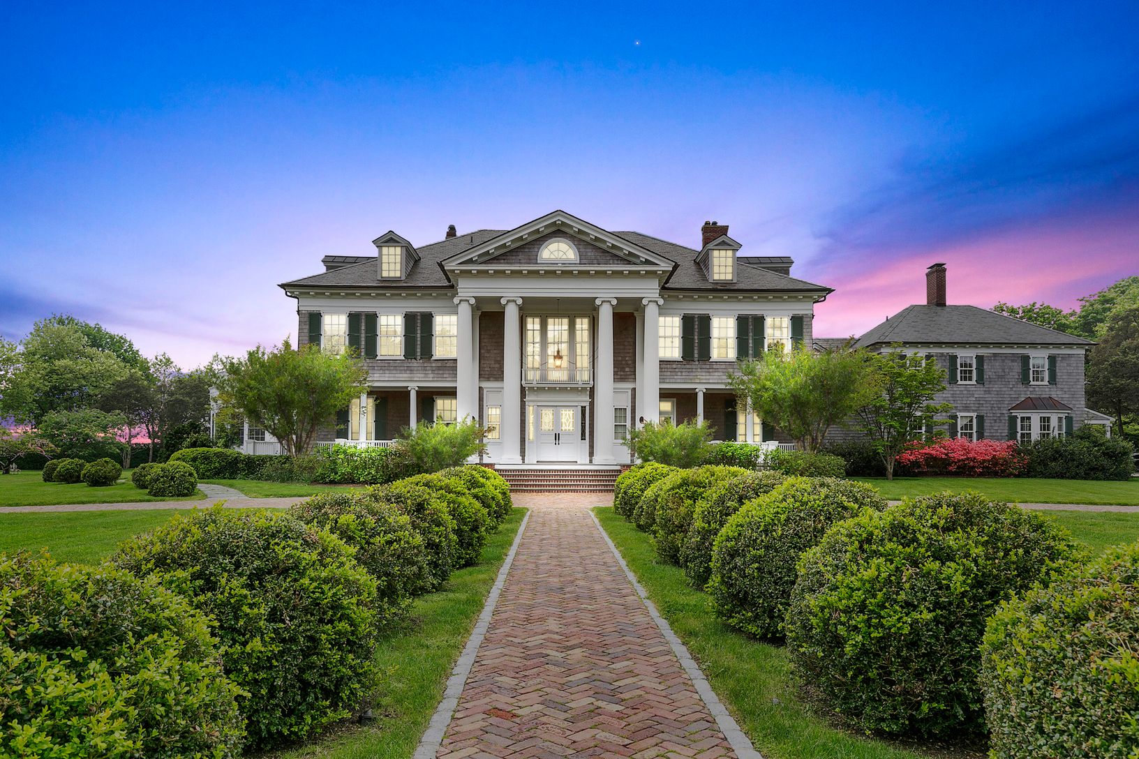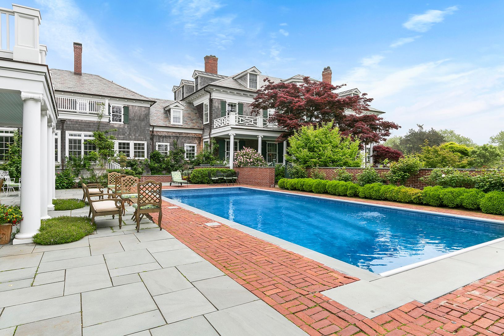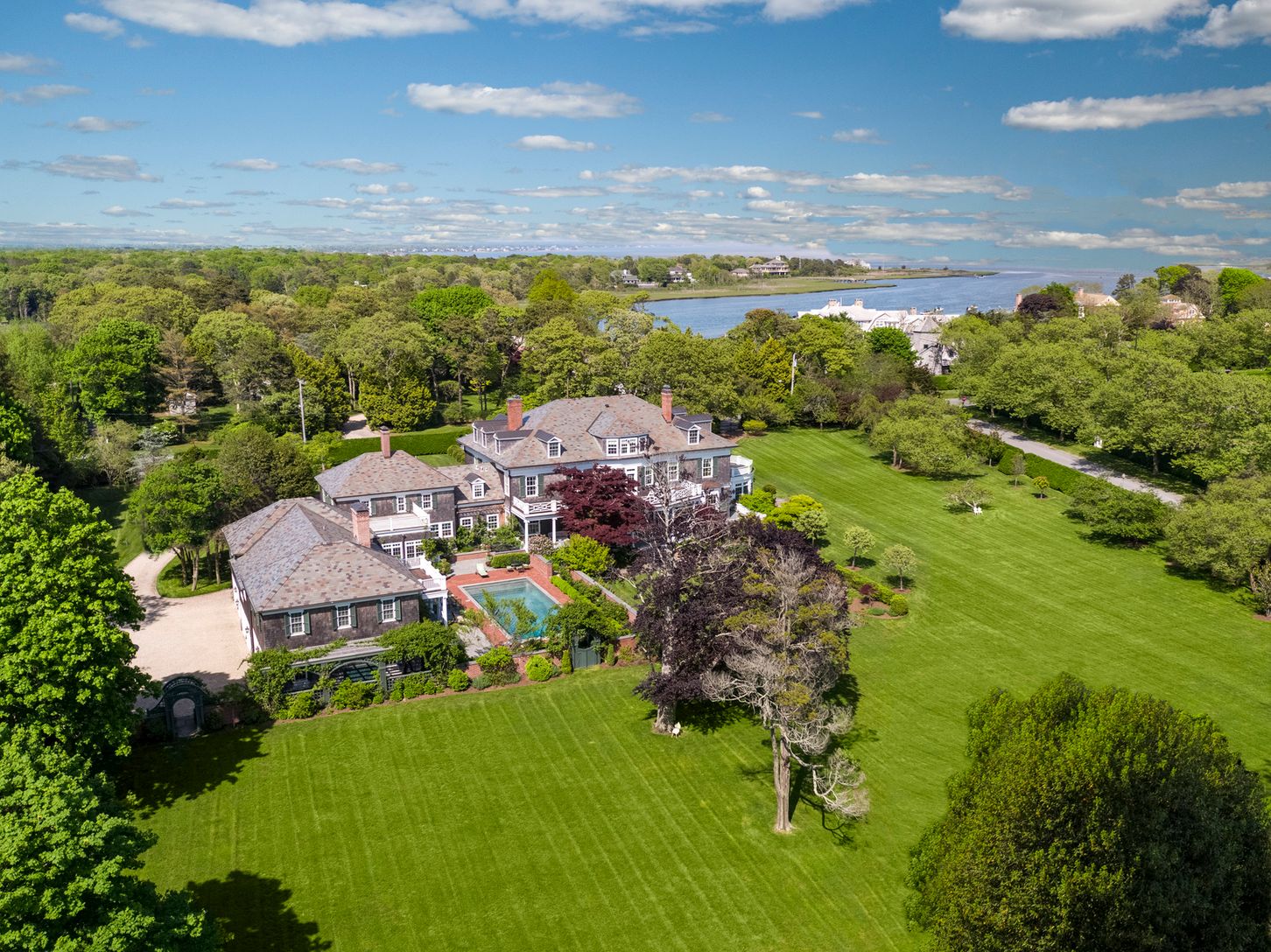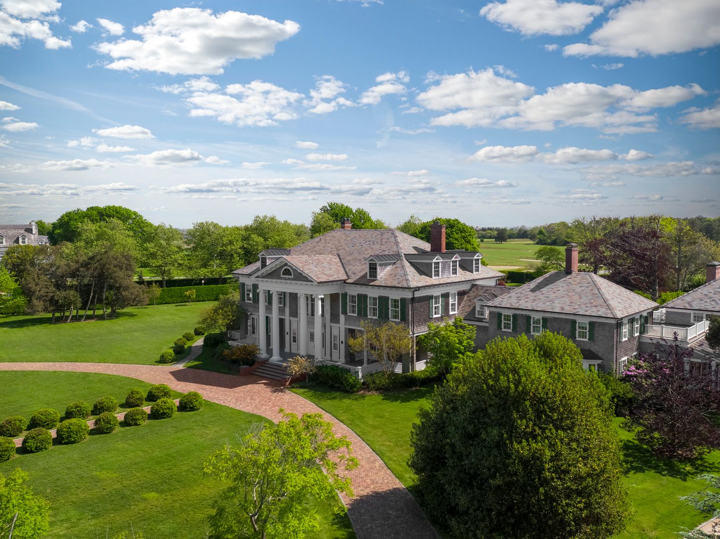 Located on Shinnecock Road in the coveted Estate Section of Quogue, the spectacular residence is reputed to be one of the last works by famed architect Stanford White. Commissioned by the Greeff textile family who's business was known for fabrics in authentic 18th and 19th century American designs, including fabrics produced by special arrangement with the Henry Ford Museum. The current owners of the stately home commenced a three year renovat