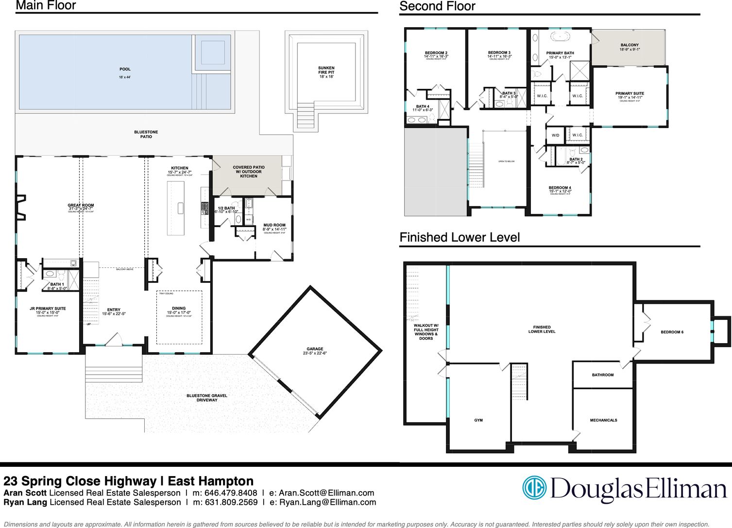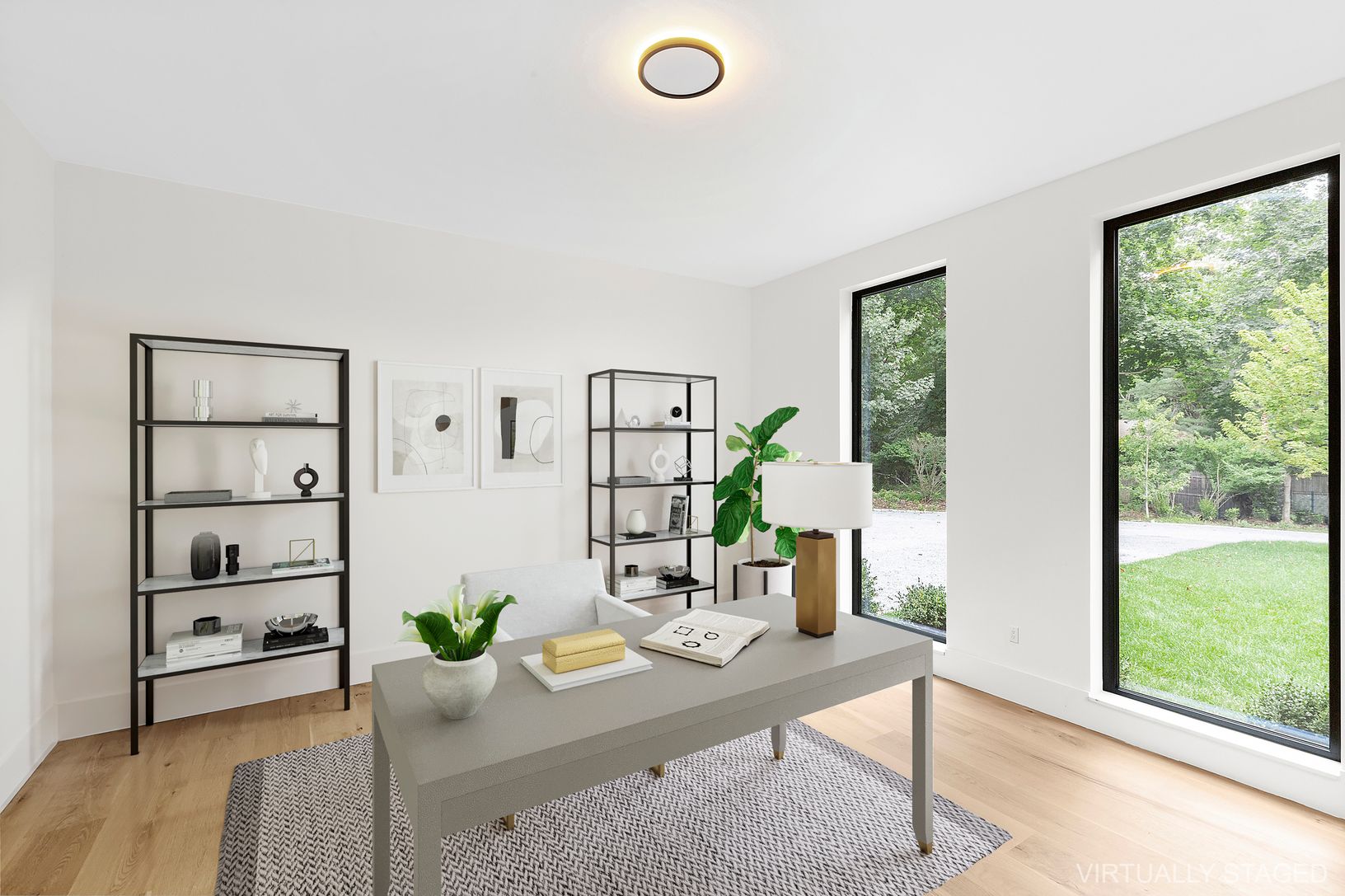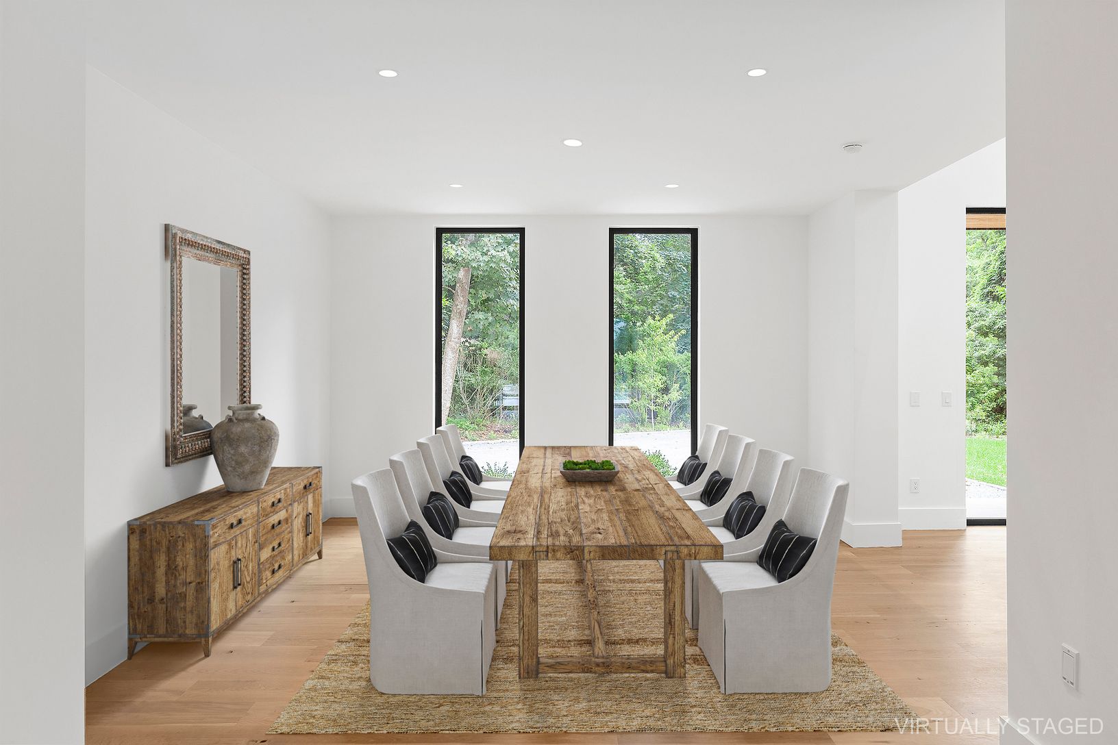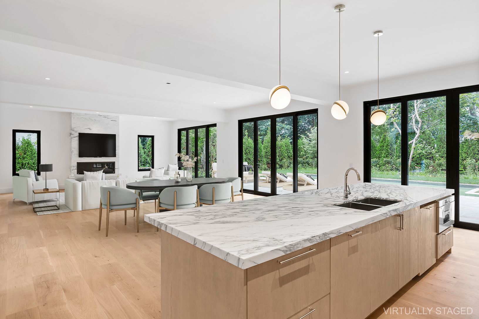 Located a stone's throw from East Hampton Village, this expansive new construction home is ready for you to move in and enjoy! Spread across three levels, 23 Spring Close Highway offers over 7,000 square feet of living space including 6 bedrooms and 6.5 baths. The house is set at the end of a long private drive on over 8/10 of an acre, approximately 1 mile from the ocean with hotspots like Moby's, Carissa's, and Bostwick's just around the corn