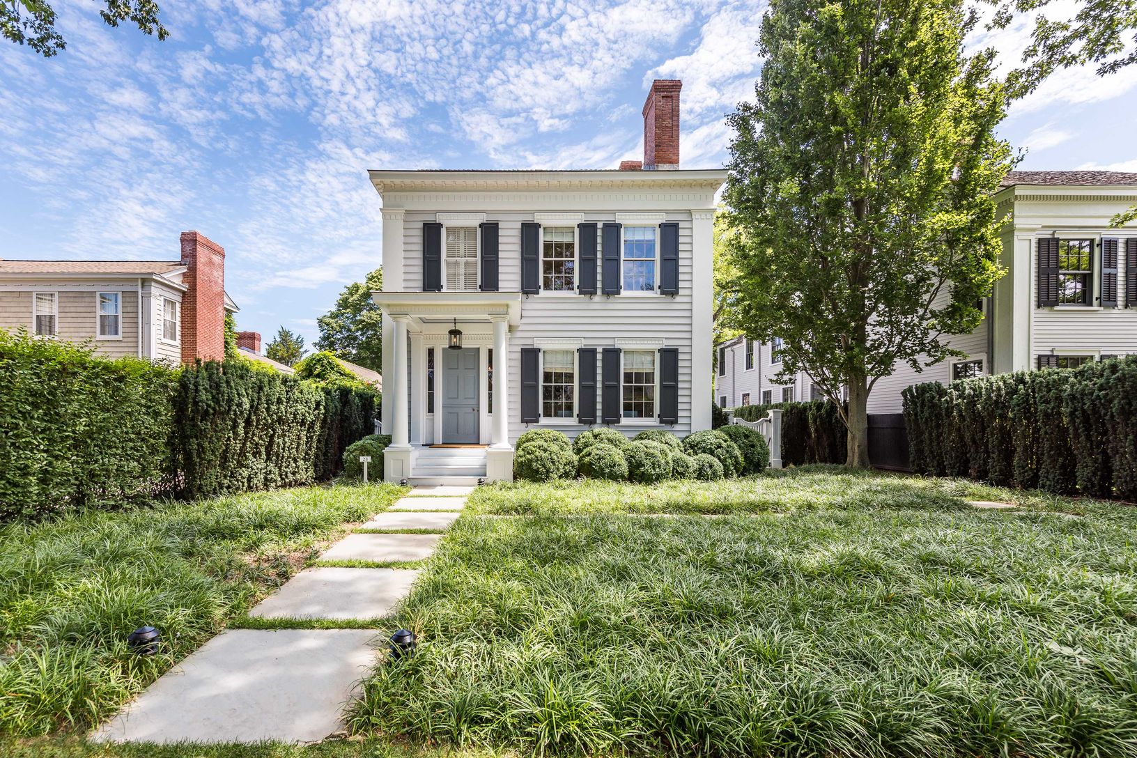 In the heart of historic Sag Harbor Village, a major and exquisite 1840's Egyptian Revival home meticulously restored and appropriately enlarged on one of the largest town center sites of .4 acres includes terraces, gardens and a unique 50-foot gunite pool and spa, creating one of the great historic and most luxurious houses of the Hamptons. Located on one the most coveted, quietest streets in the historic village, part of a double lot, this 6