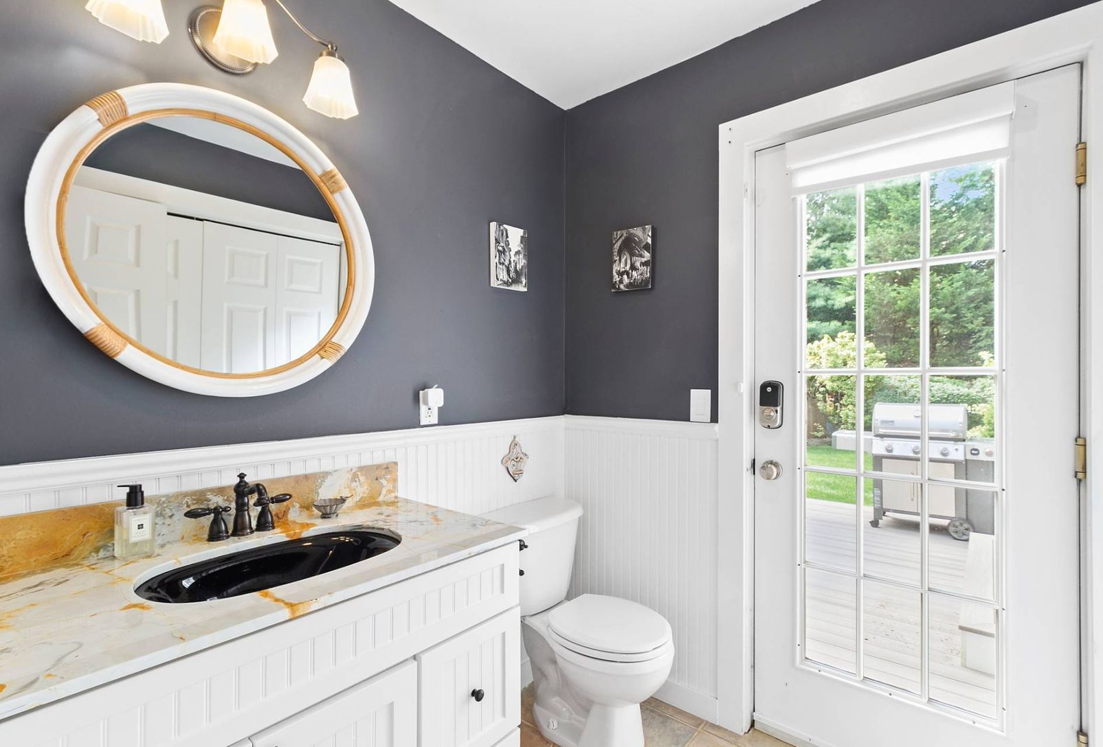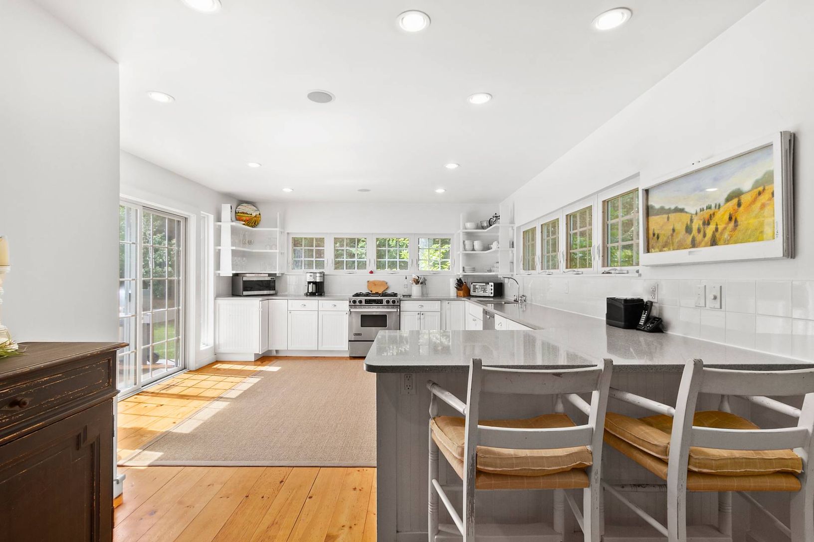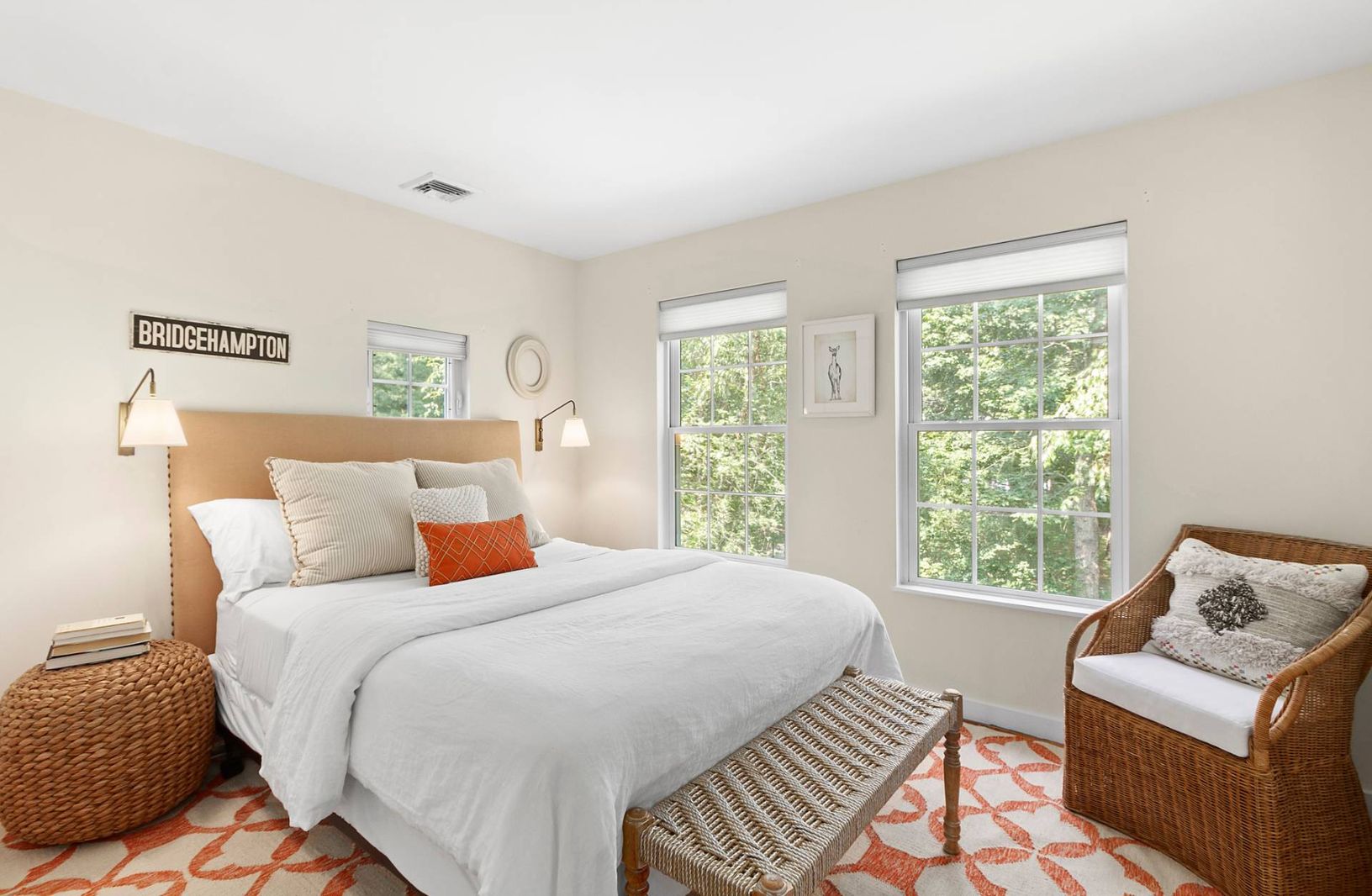 Located minutes to the Village of Bridgehampton & Sag Harbor on a quiet cul-de-sac. This renovated post-modern offers 4 bedrooms inclusive of first and second floor primary suites and 2 additional guest bedrooms and bath. First floor has an open layout offering a large gourmet kitchen with island seating, dining area, living room with fireplace and powder room/pool bath. Sitting on .57 acres with a separate newly constructed outbuilding th