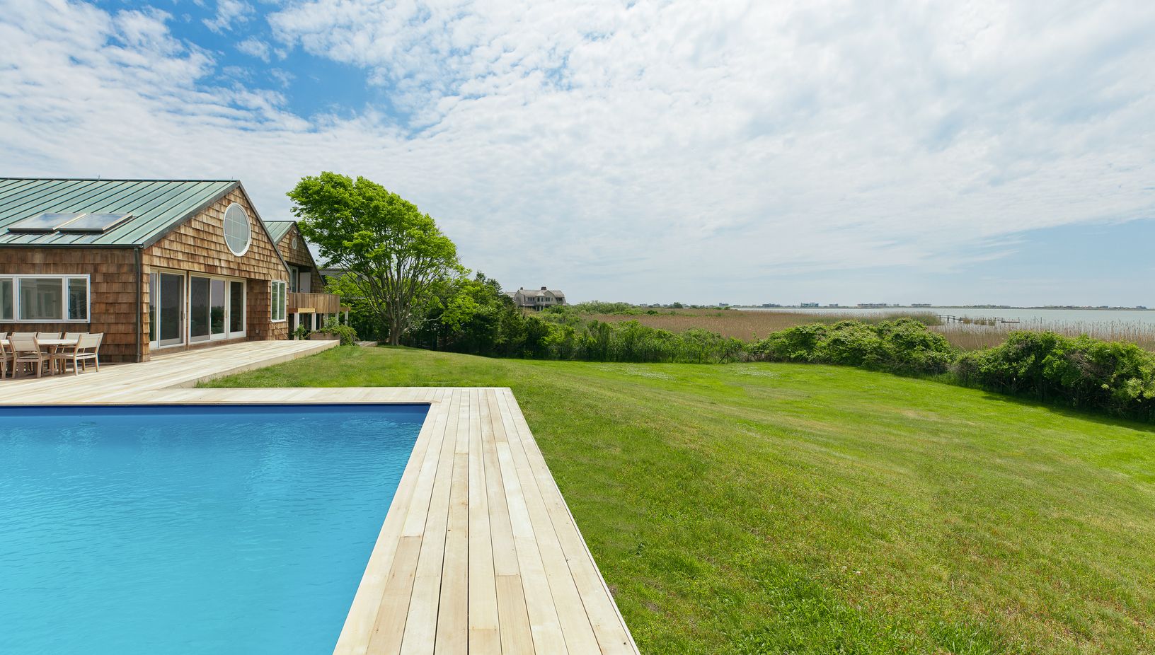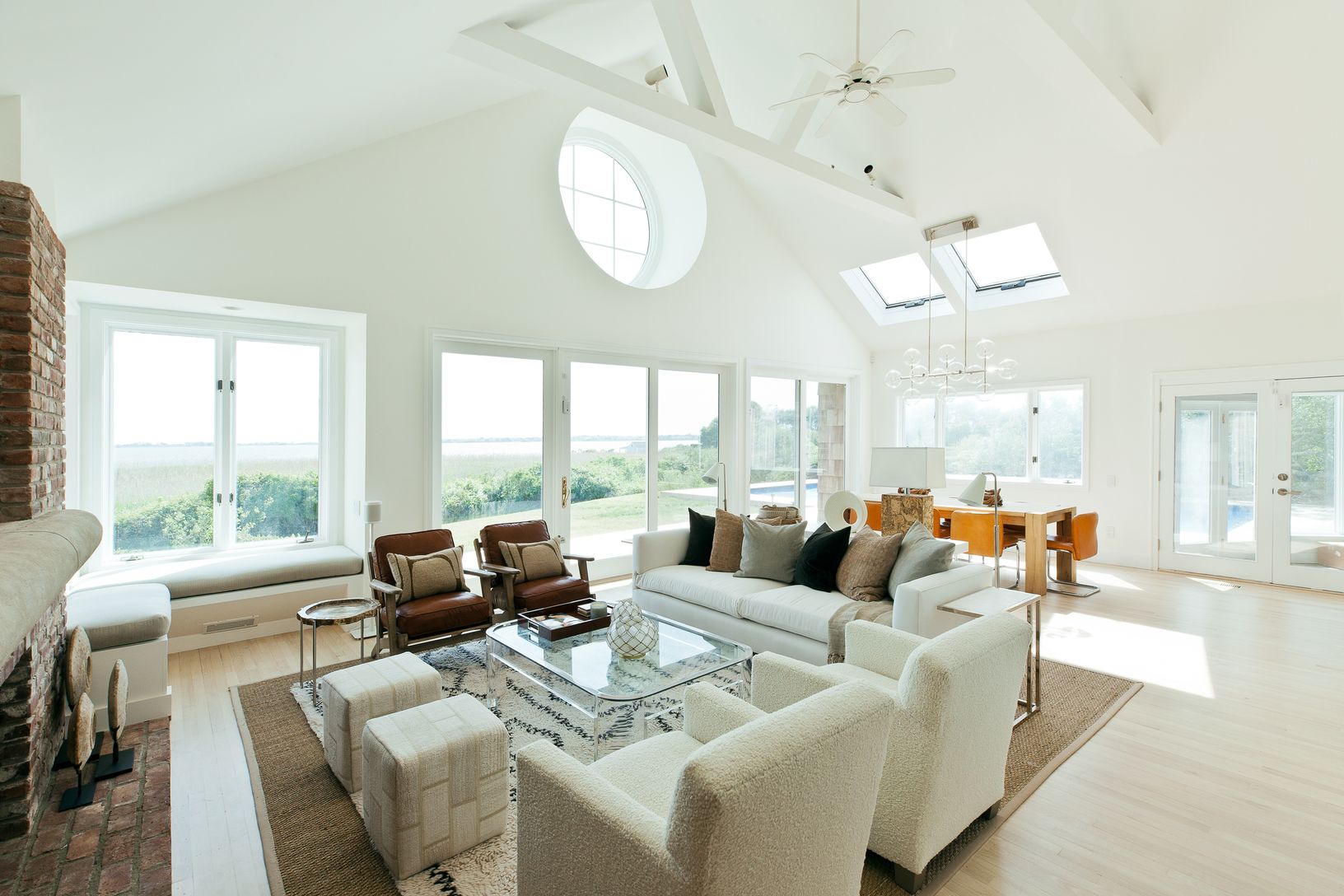 Enjoy summer and beyond in this beautifully designed house with spectacular panoramic views of Mecox Bay to the ocean. With two primary suites and three guest rooms, four and one half baths, open floor plan, den, sunroom and a separate gym overlooking the pool to the bay. Perfectly located south of the highway close to ocean beaches and farm stands.