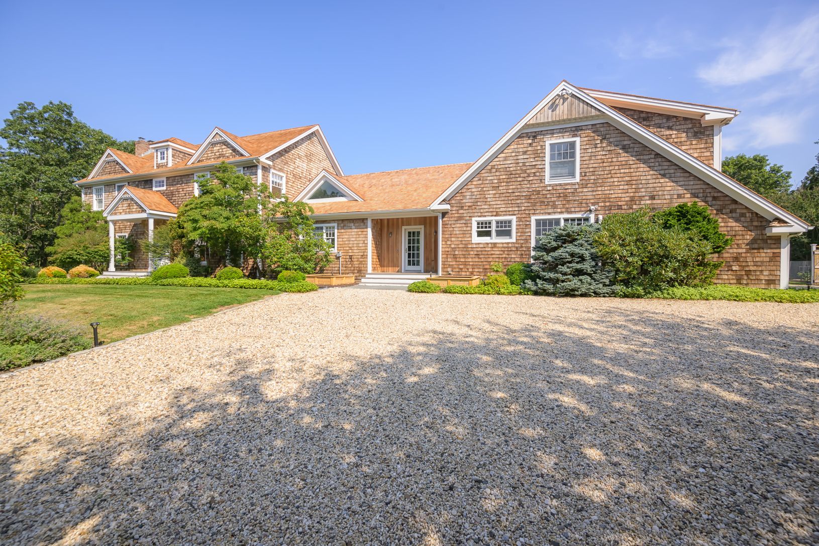Live Large at this recently renovated, John Laffey designed, very private 1.84-acre property with over 4,104 +/- sq. ft. of indoor living space with 5 bedrooms, 4 full baths, and a powder room. Clad in cedar-shake siding, new cedar shake roof, and boasting an attached garage. Renovated in 2021, this traditional Hamptons home on a cul-de-sac is loaded with luxurious amenities inside and out. On the exterior, the irrigated property offers a heat