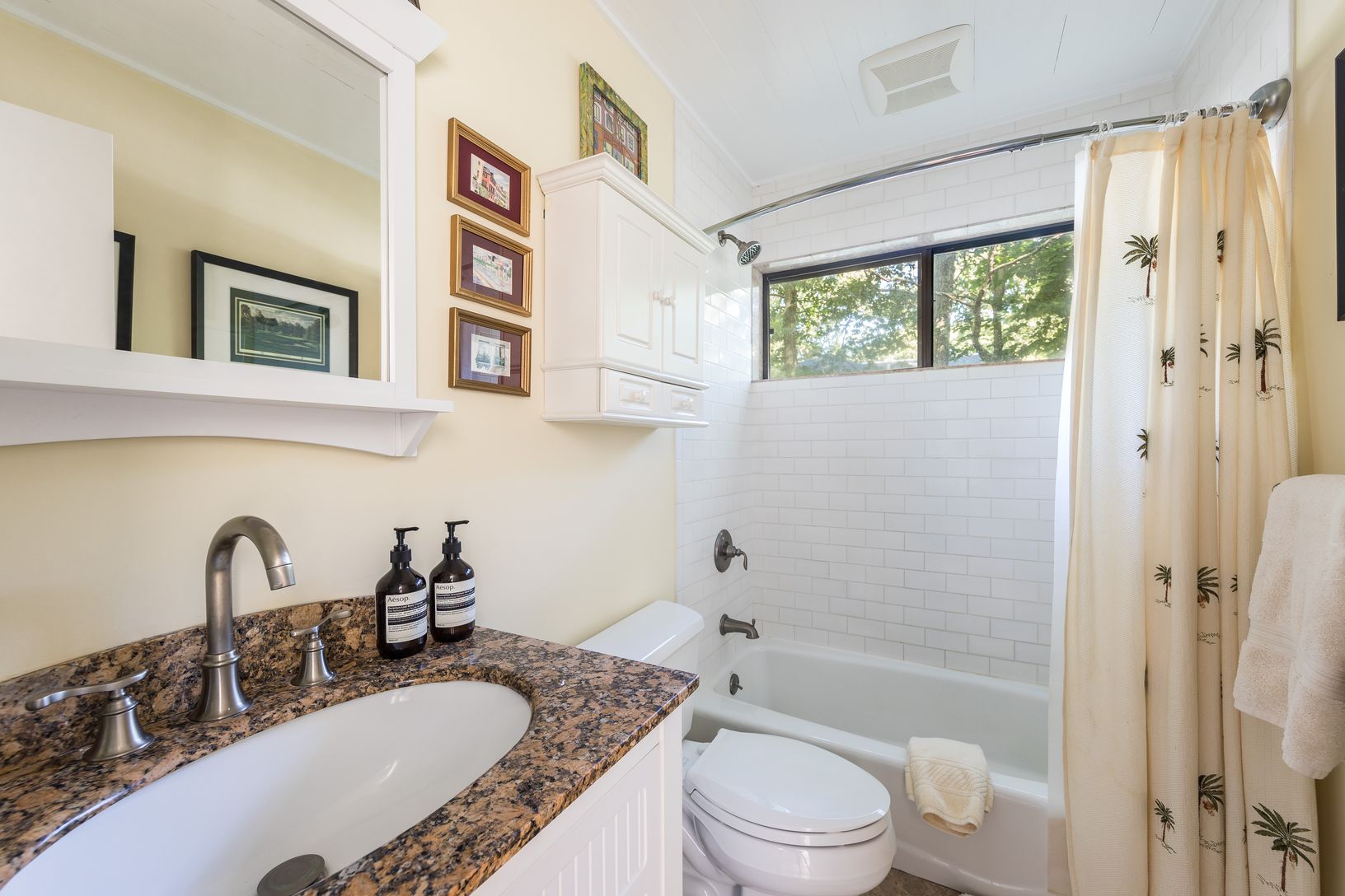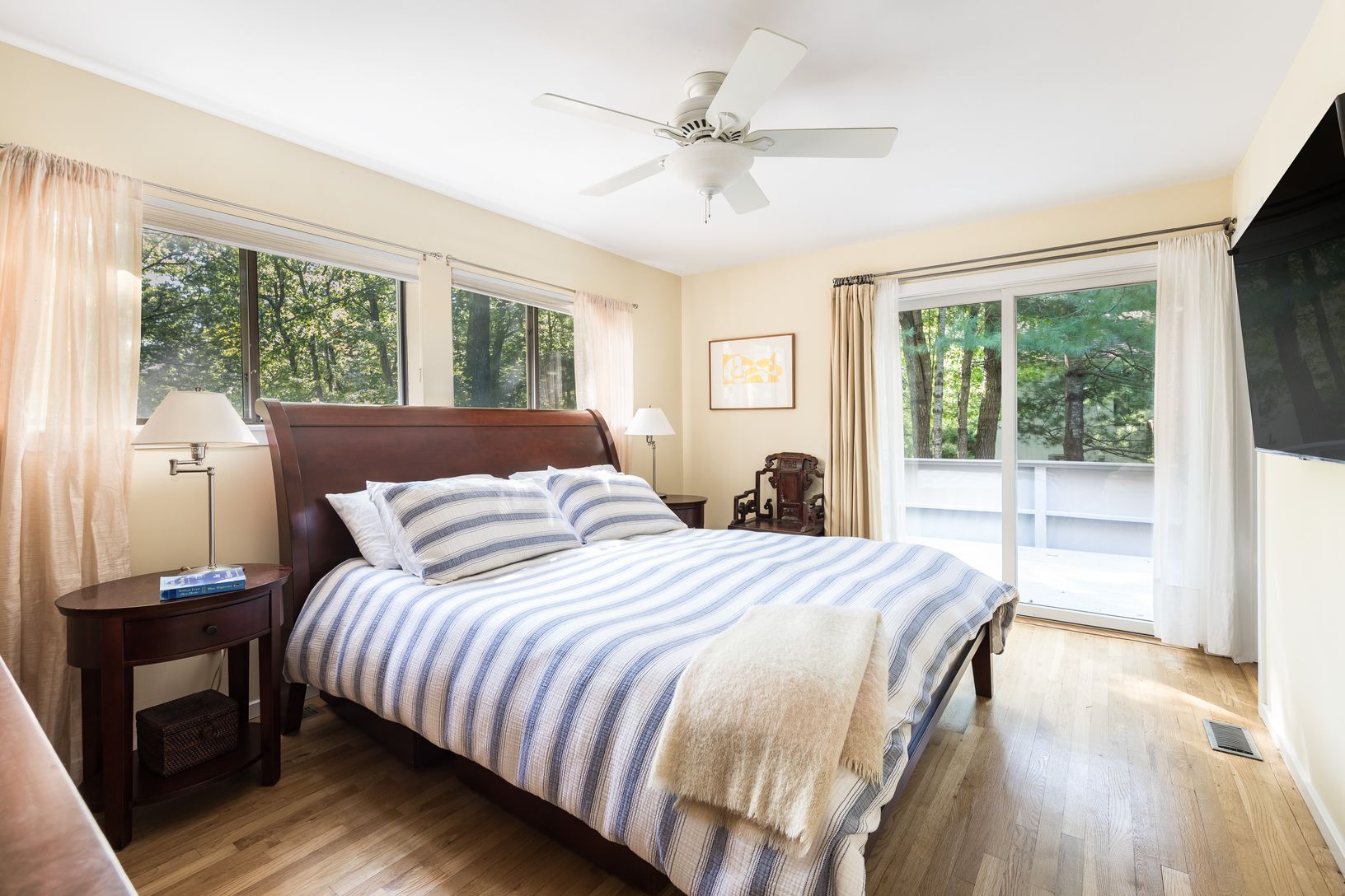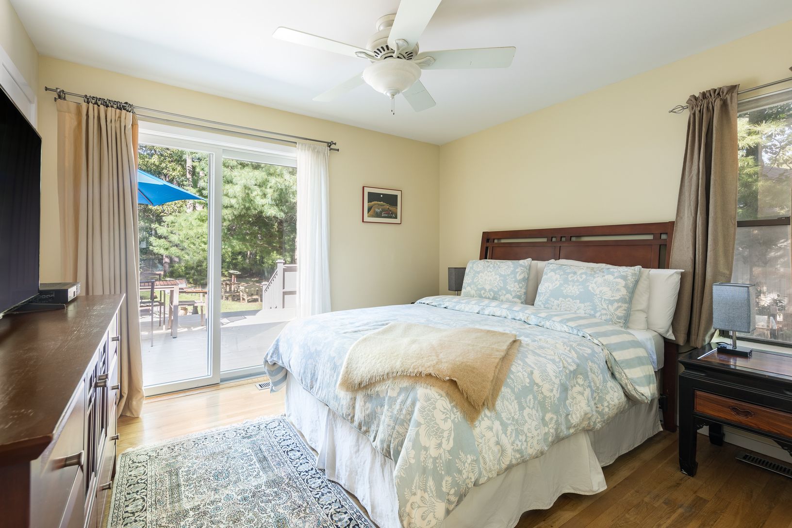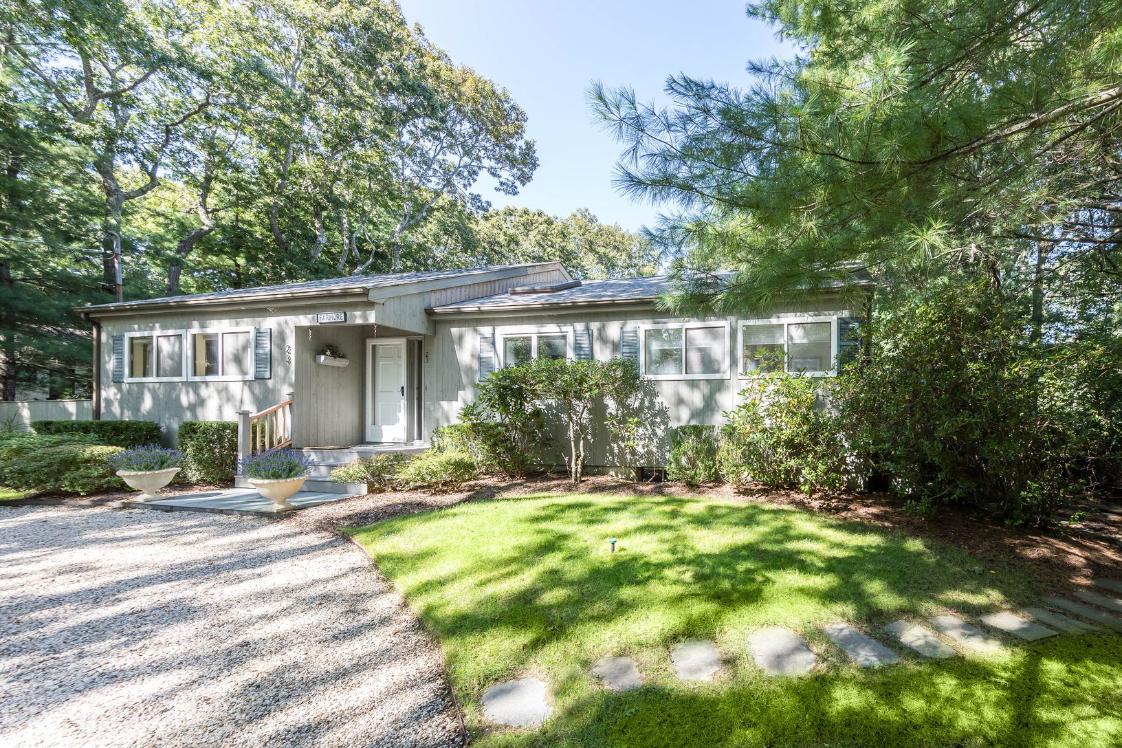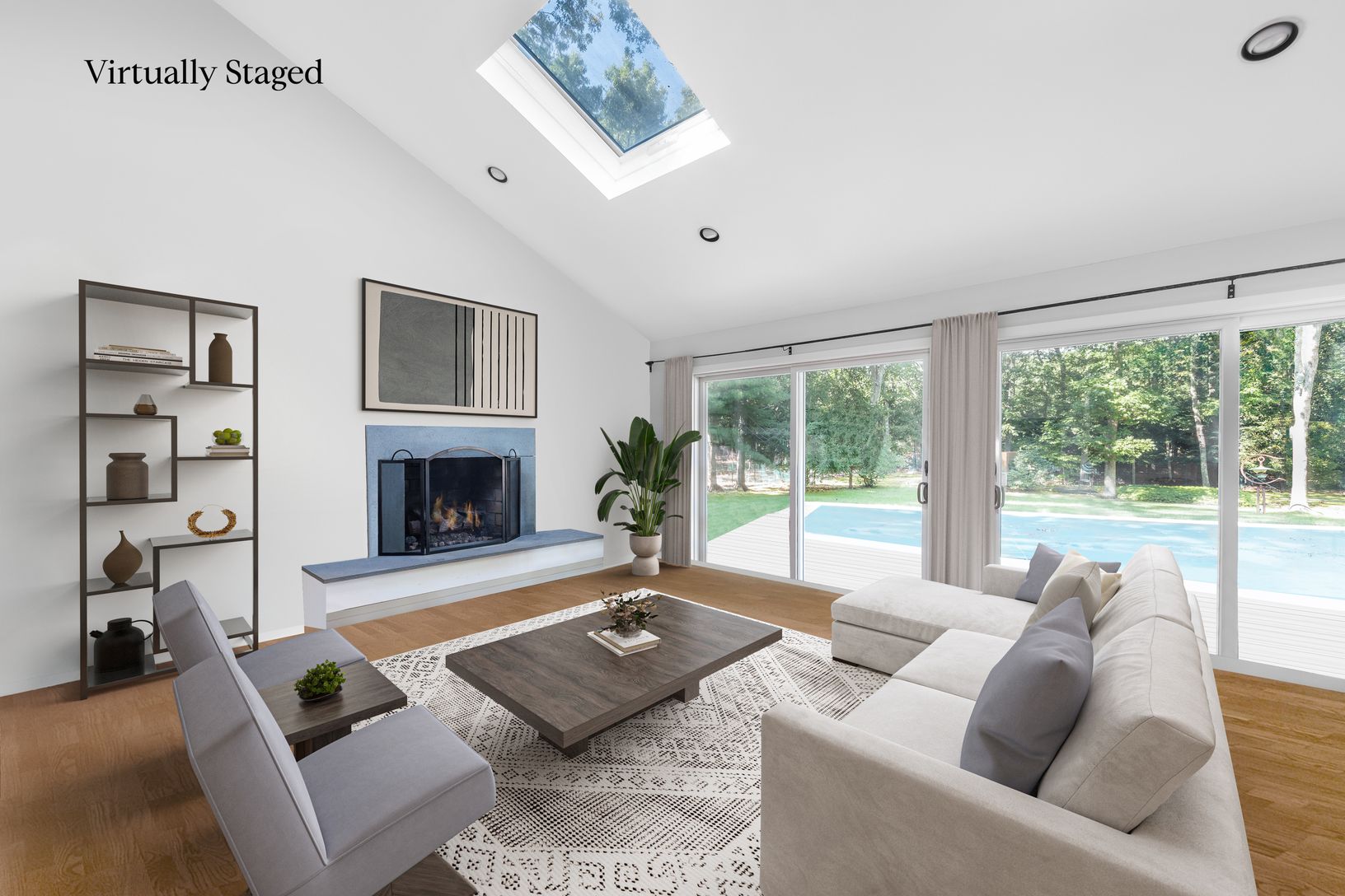 Introducing this beautifully maintained one-level home nestled on a quiet street in East Hampton's village fringe. This 3 bedroom, 2 bathroom jewel-box offers an open floor plan, high ceilings, and an abundance of natural light. Step inside and be greeted by a spacious living area featuring a cozy fireplace and glass doors that seamlessly connect the indoors with the beautiful outside spaces. The kitchen boasts stainless steel appliances and b