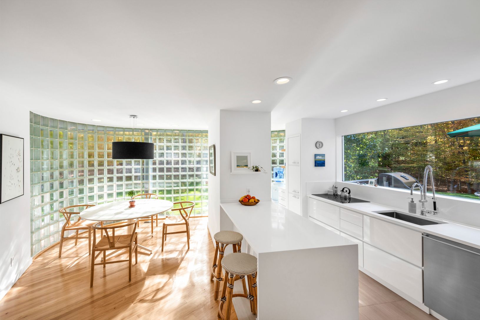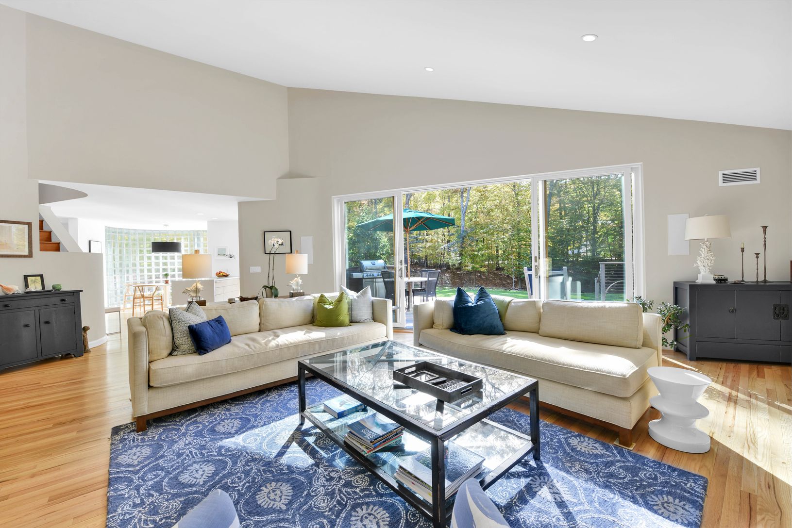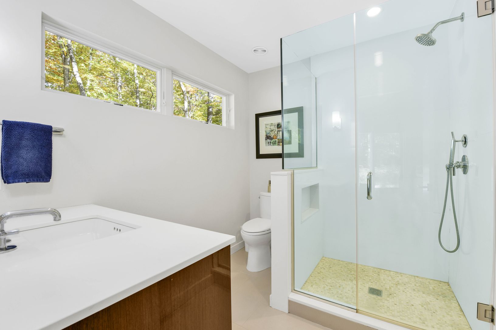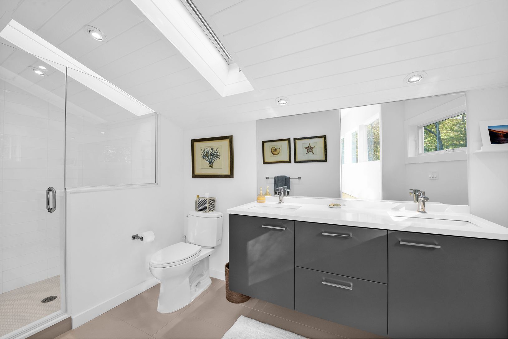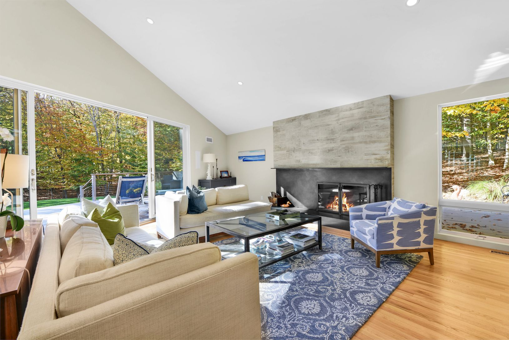 This architectural sculpture is bold and beautiful. Hampton Design recently refined the space with high quality, state of art fixtures, and finishes. A sleek new kitchen with perfect form and function sits alongside a casual dining area. The open plan first level is anchored by a natural stone fireplace, warm wood floors and a wall of glass. There are two bedrooms with their own access to the outdoors and two new full baths on the main level.