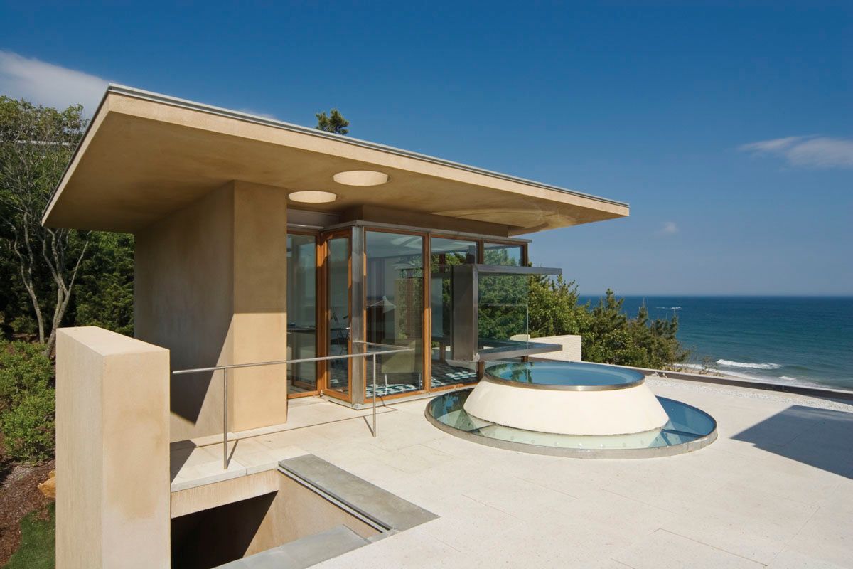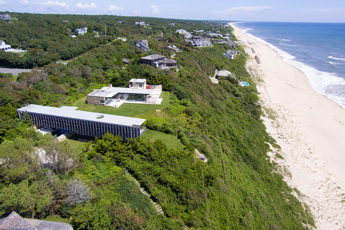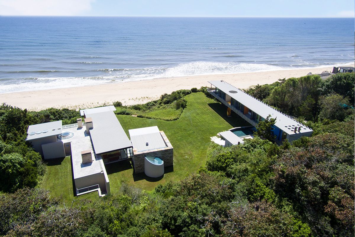 Heroic views are just the prologue to the story that describes this architecturally significant 4-acre modern contemporary compound spanning over 300' of oceanfront on separate, contiguous 2-acre parcels, 75' above the Montauk shoreline. Designed by renowned architect James Biber FAIA, of Biber Architects and Pentagram Design, the main house with 5,500 SF+/- on three levels of living space sits on two oceanfront acres and includes a gourmet ki