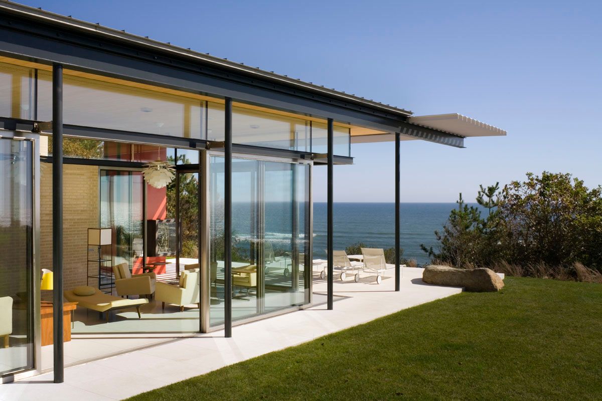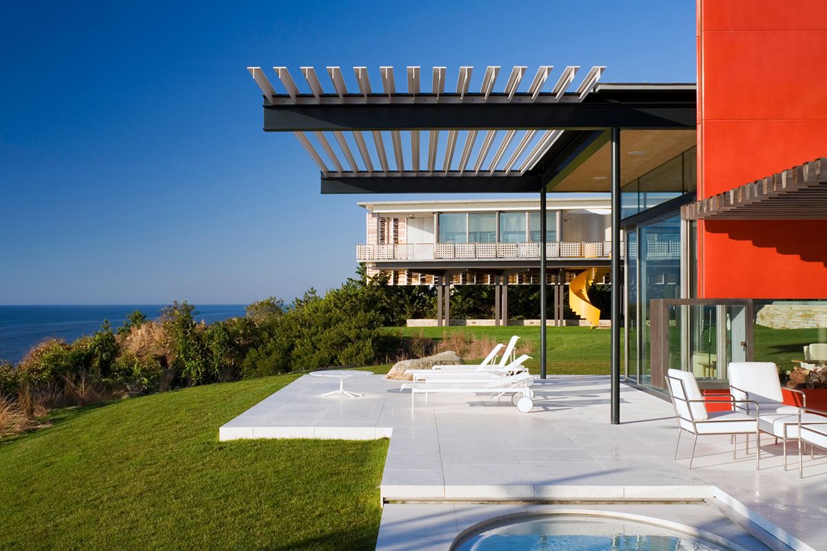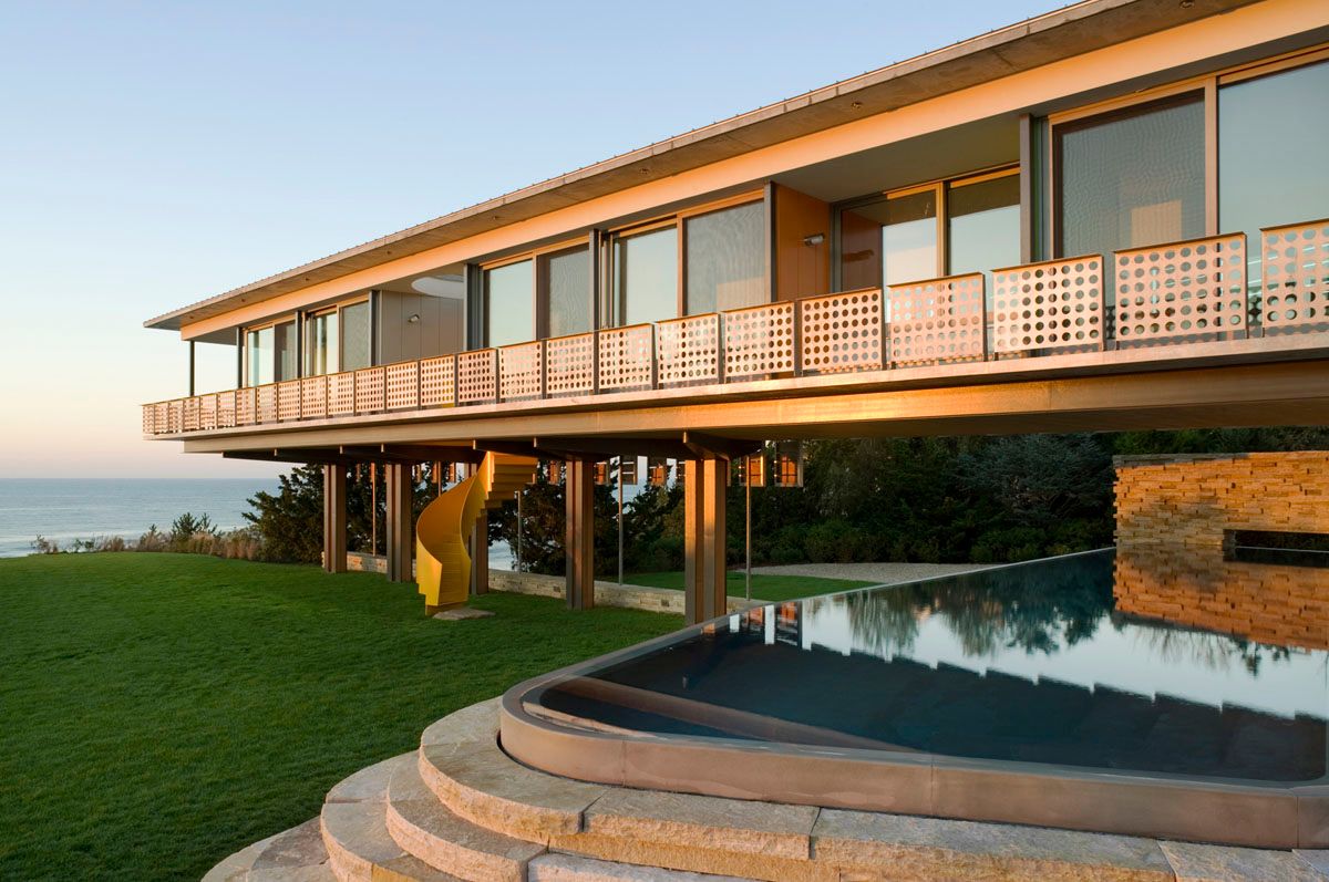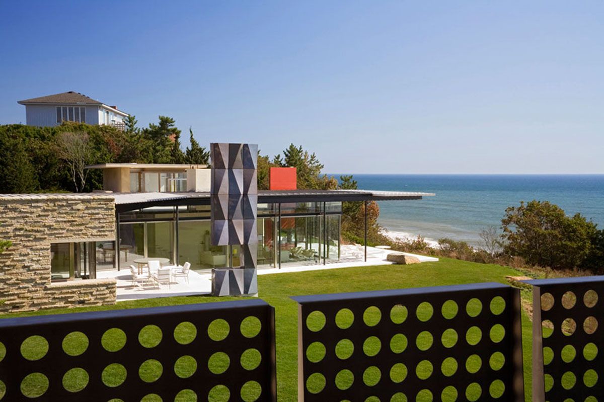 Heroic views are just the prologue to the story that describes this architecturally significant 4-acre modern contemporary compound spanning over 300' of oceanfront on separate, contiguous 2-acre parcels, 75' above the Montauk shoreline. Designed by renowned architect James Biber FAIA, of Biber Architects and Pentagram Design, the main house with 5,500 SF+/- on three levels of living space sits on two oceanfront acres and includes a gourmet ki