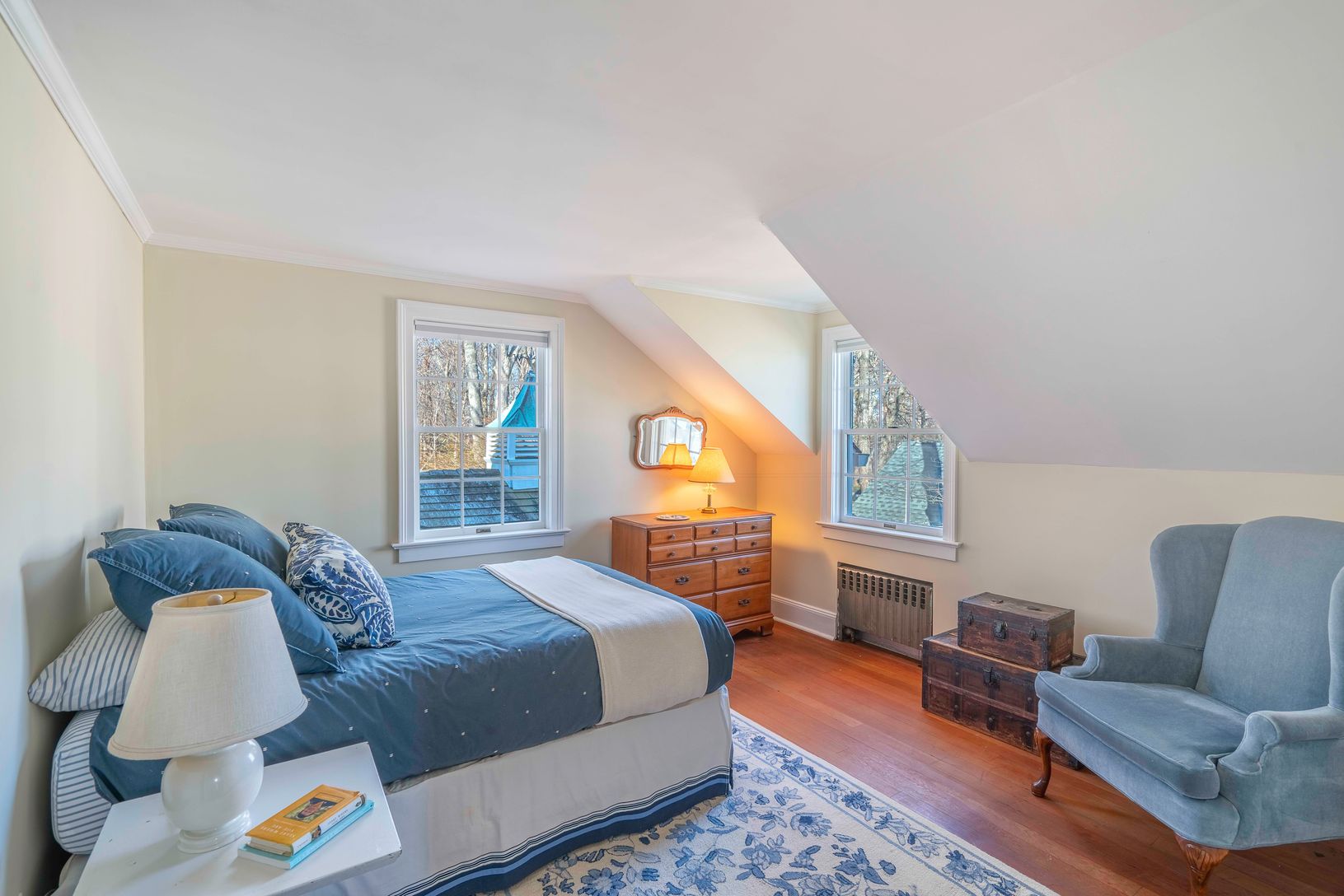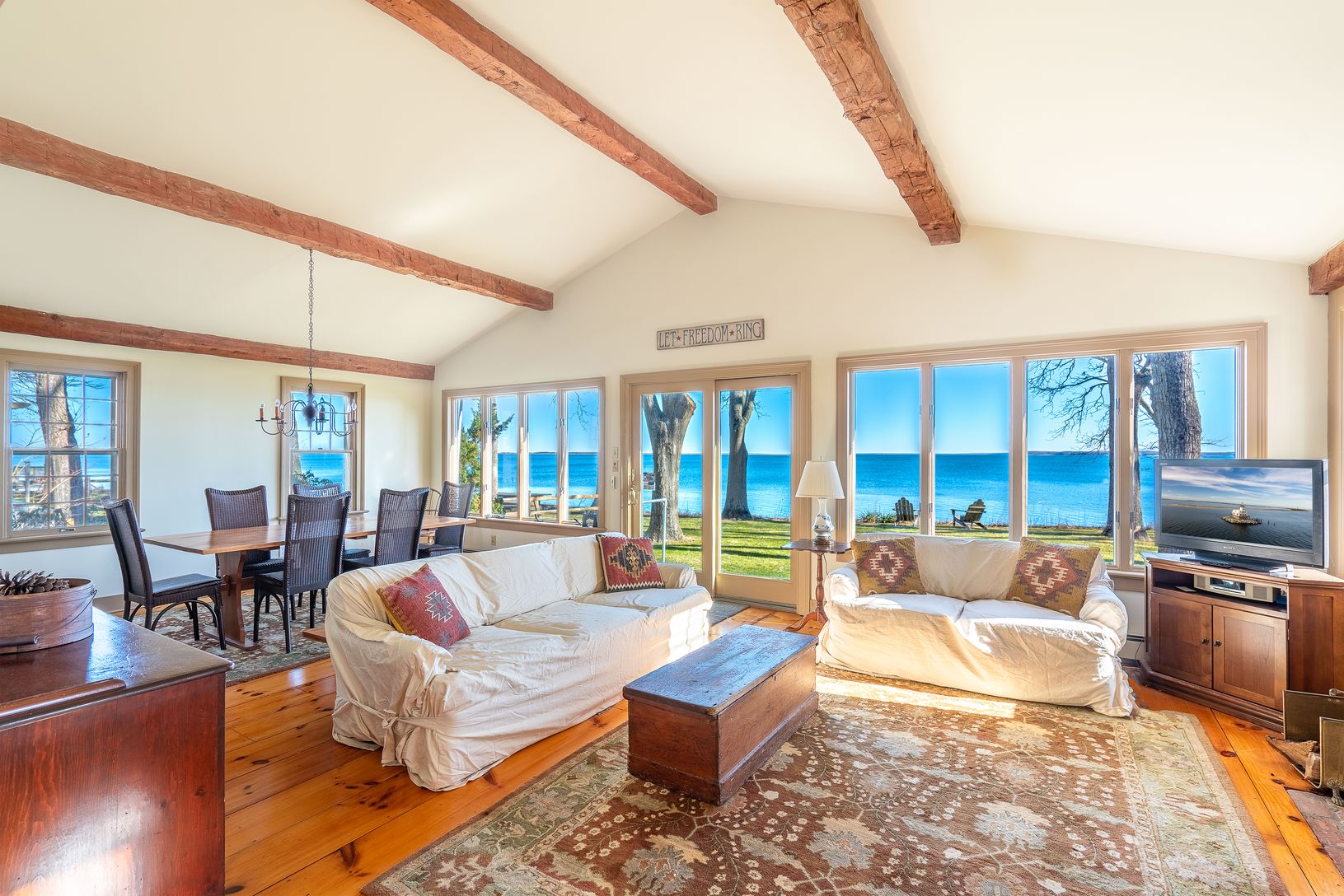Discover an enchanting haven in Gardiner Bay Estates, where this classic New England-style residence awaits as your personal retreat from the metropolitan rush. This renovated 1940s home, lovingly preserved, boasts a private beachfront, offering unrivaled seclusion and direct access to sandy shores and soothing waves. Envision serene mornings watching the storied Bug Lighthouse, afternoons spectating vibrant sailing regattas, and evenings unde