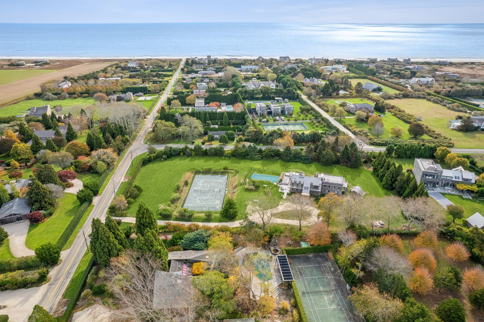 In a most sought after location in Sagaponack South just steps from Town Line Road ocean beach. Sited on 2.8 acres with beautiful, mature landscaping, heated pool, tennis court and a long circular drive - this property offers wonderful privacy. Expansive outdoor decks with southern exposure invite relaxation for summer entertaining and al fresco dining. Inside, sunlight fills this newly renovated home across three spacious levels featuring