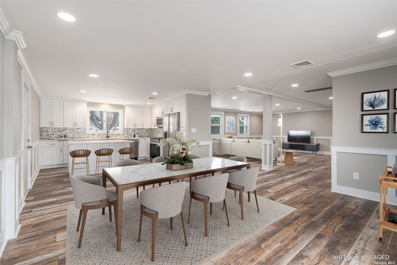 Move right into this completely renovated, turn-key Southold Village home close to town and all the best Peconic Bay beaches! Gutted to the studs and rebuilt in 2023, this home has new everything, including new roof, siding, insulation, heating & air systems, electrical, plumbing, flooring, kitchen, baths, laundry and more! The spacious open layout lends itself to a great entertaining space with tons of natural light. The kitchen has moder