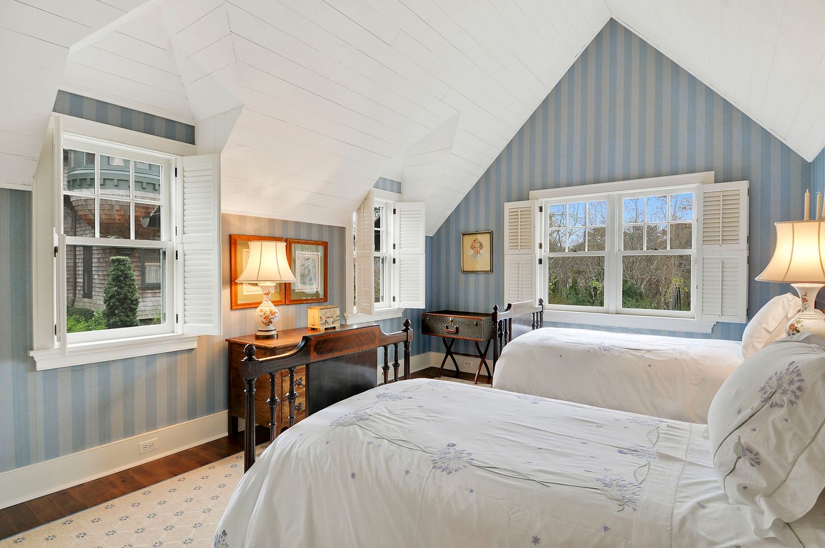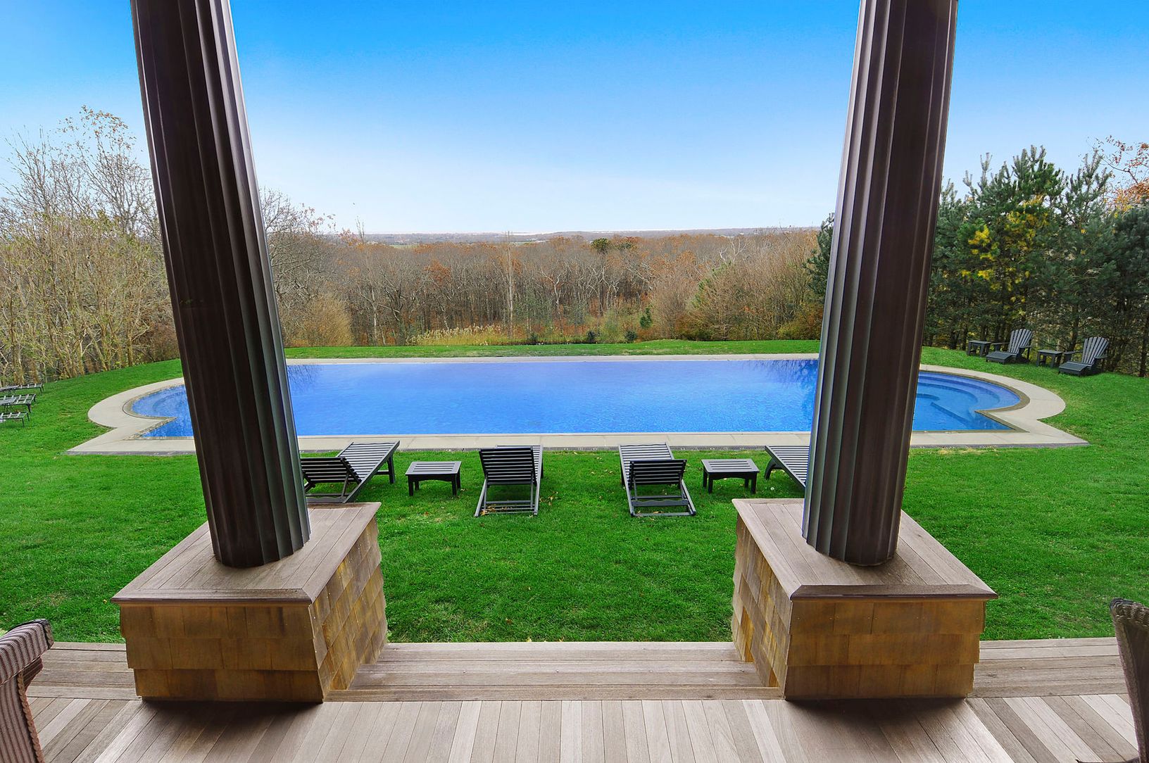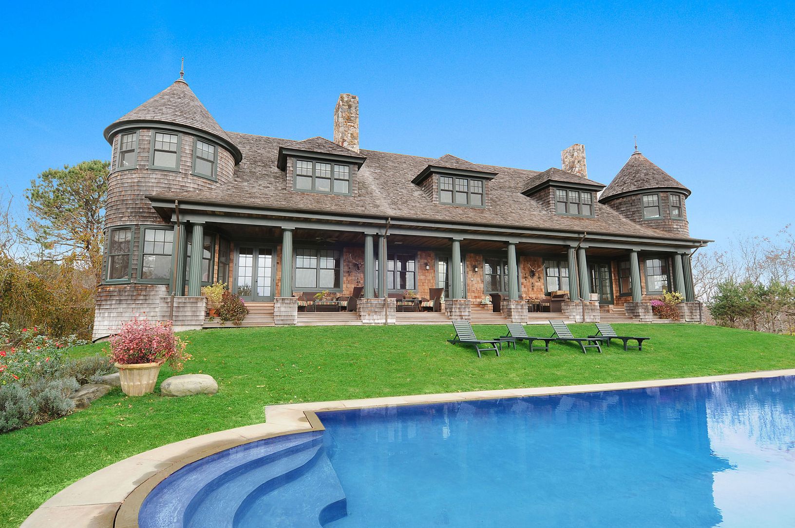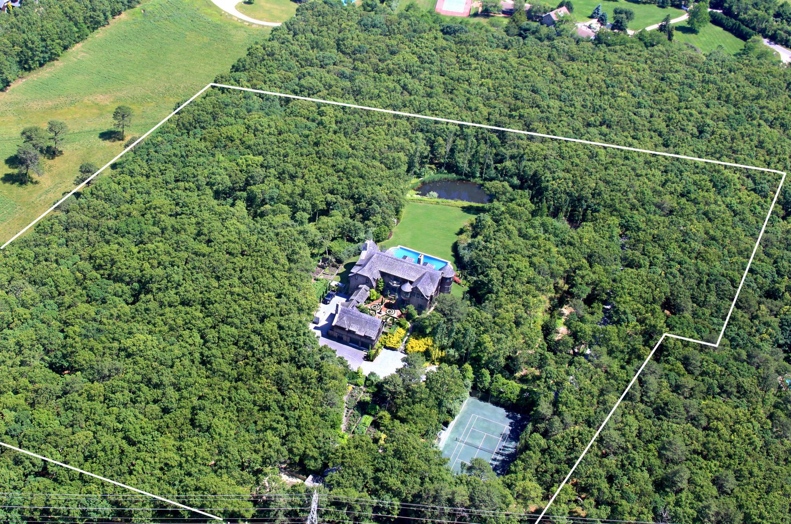 This estate-like home offers the ultimate in a summer retreat. Situated on more than 11 +/- acres, the main house has five bedrooms and eight baths. The master bedroom has its own sitting room. Also, circular dining/breakfast room, two libraries and two offices. Two guest bedrooms and two baths. Guest house with two bedrooms, living room with fireplace, kitchenette, two baths. Downstairs garage level has woodworking shop, laundry, half bath, p