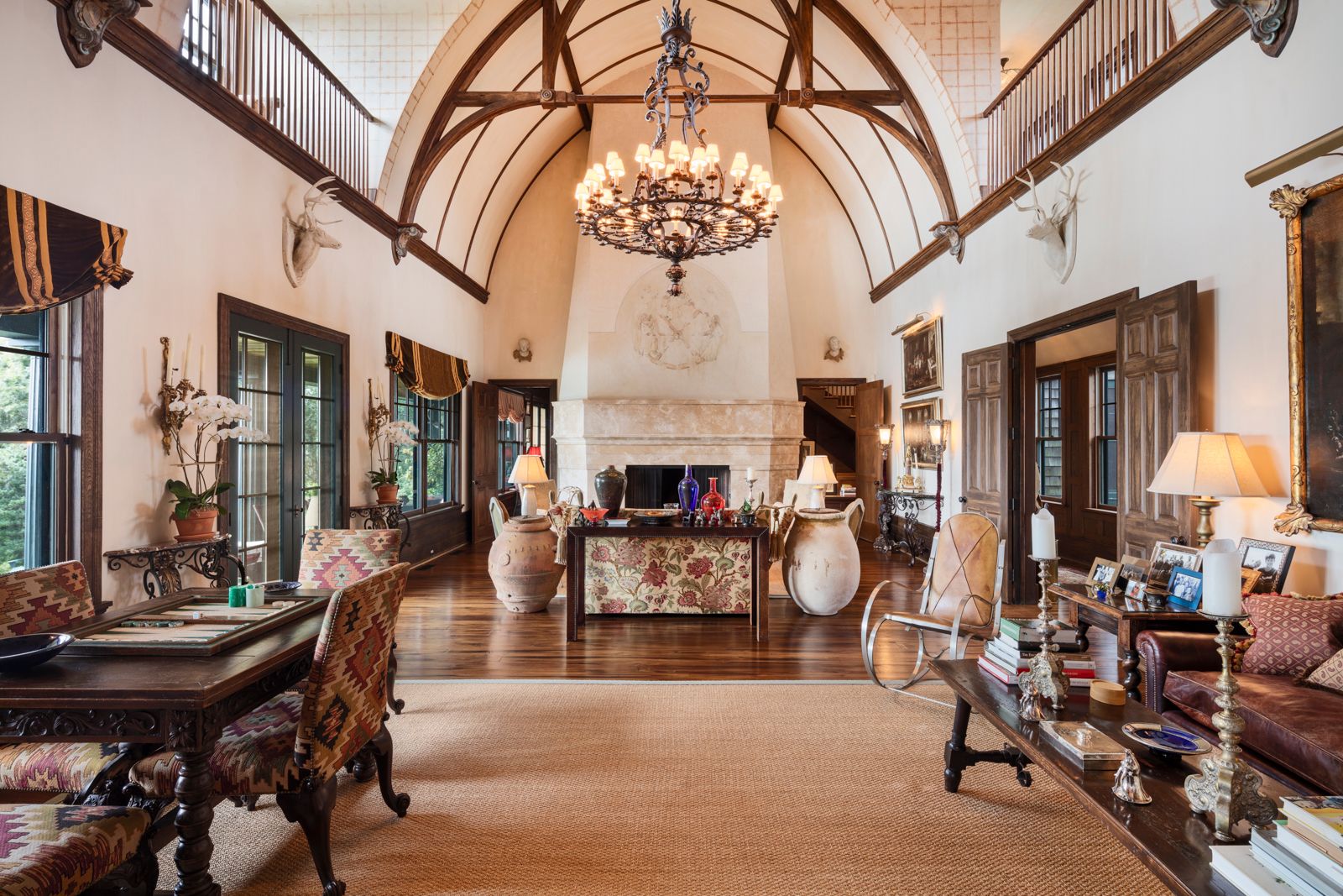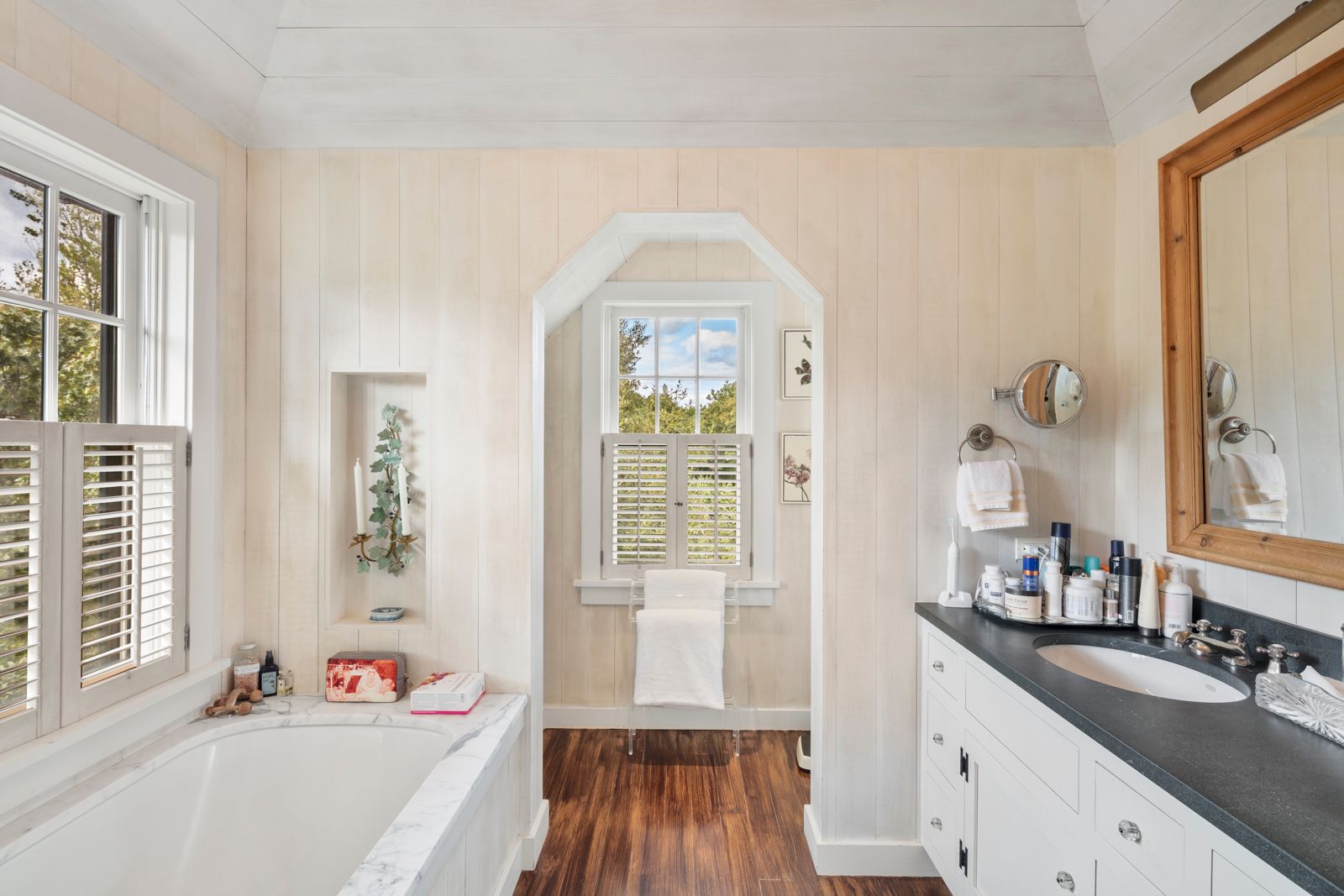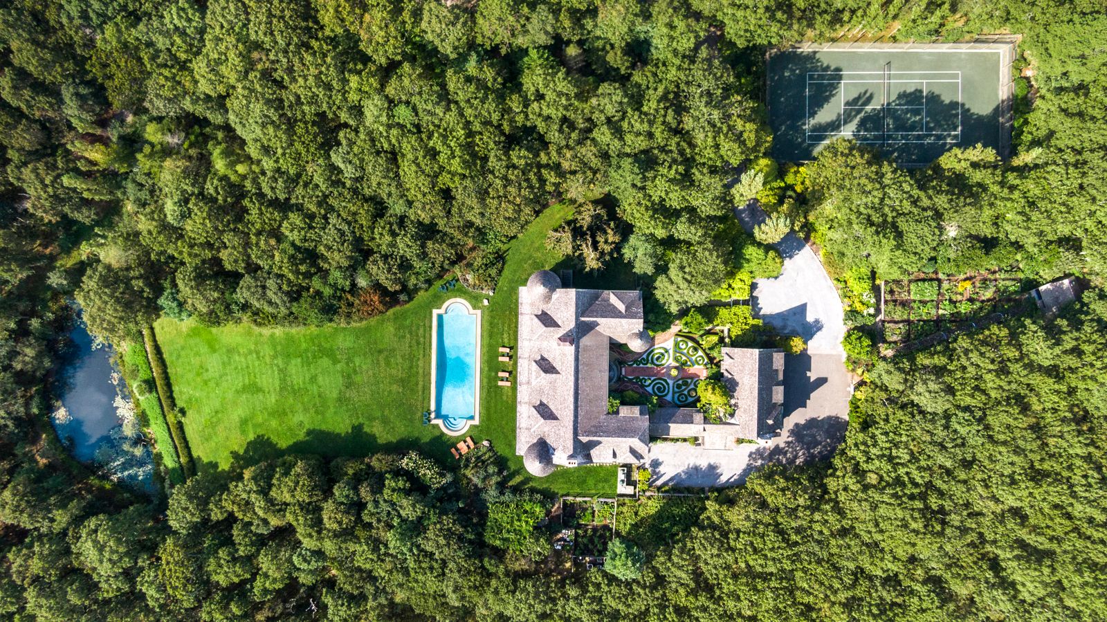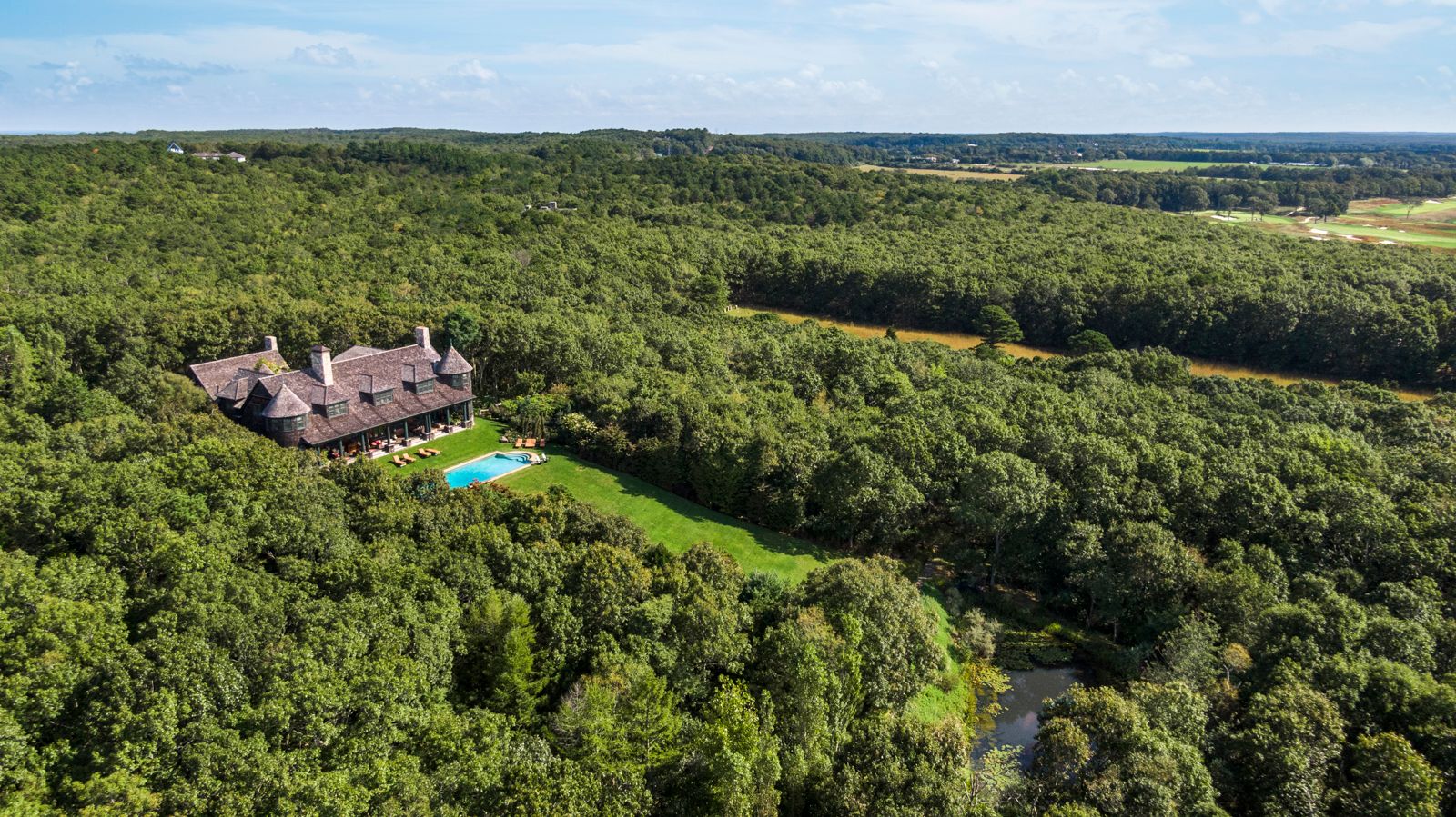 Hidden in a blanket of trees on all sides, this approximately 11.7-acre Water Mill compound is a symphony of architecture, design and nature. The pinnacle of privacy, the property abuts a six-acre reserve to the south and approximately 68 acres of Southampton Town and Suffolk County land to the north. Thoughtfully designed by award-winning architect Daniel Romualdez and built by master builder Ed Bulgin, the home was inspired by Richard Morris