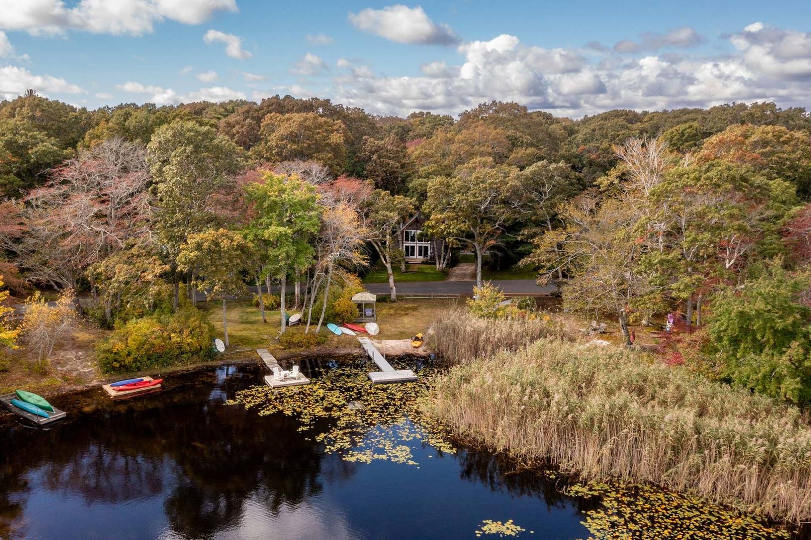 A rare opportunity to own property with a fantastic view of the largest fresh-water pond in the Hamptons. Big Fresh Pond is perfect for kayaking, sailing, paddleboarding, fishing, or a nice swim on a hot day. All just a stone's throw from the front door. The property features a 1,000 +/- sf house with room for expansion. Double-height ceilings and sliding glass doors allow for an abundance of natural light indoors. The open living area with a