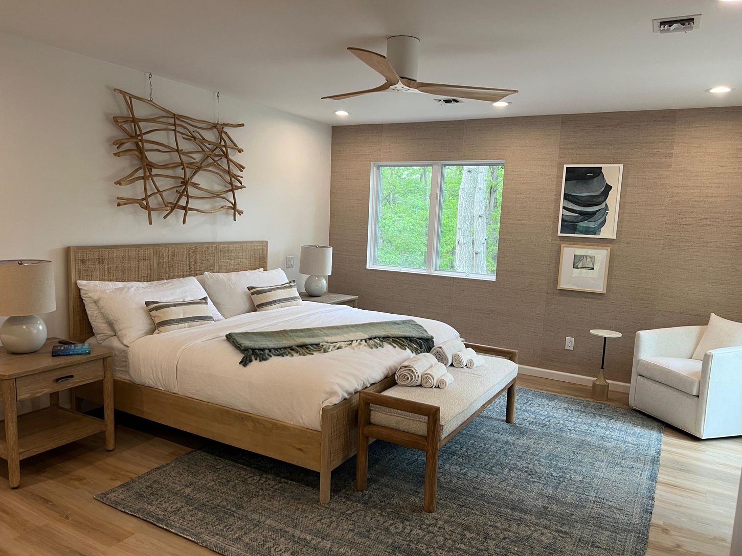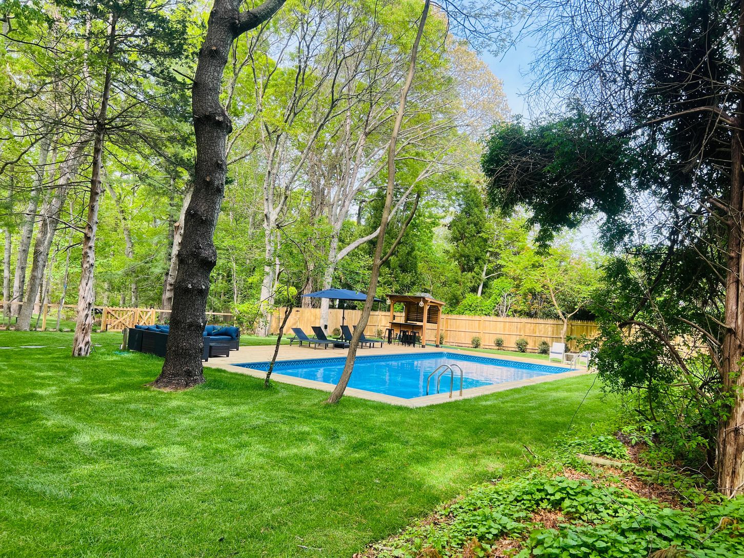 Villa Verde Bridgehampton - Tucked away on 3.5+ private acres in prime Bridgehampton North, this newly renovated 5-bedroom, 4-bath contemporary offers the perfect Hamptons escape. Designed for effortless luxury, the home is filled with natural light and sophisticated finishes, featuring two primary suites, a sleek chef's kitchen, and seamless indoor-outdoor flow. Entertain in the expansive living room with in-wall Polk Audio speakers, relax by