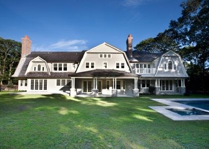 M & M Custom Homes has now completed construction in picturesque seclusion on 1.65 acres in the coveted south of the highway enclave that is Georgica. This 7,800 sq. ft., 8 bedroom traditional offers on the 1st floor great room, library and den all warmed by fireplaces as well as living room, dining room, guest and staff suites. Upstairs his and her baths flank the expansive master that is joined by 4 additional ensuite bedrooms. There is