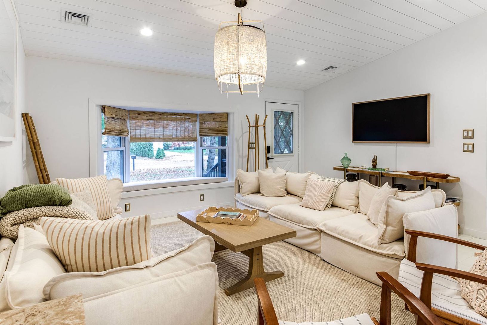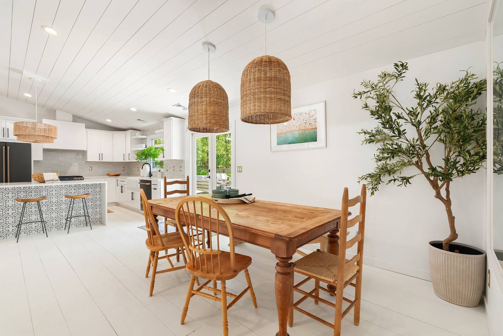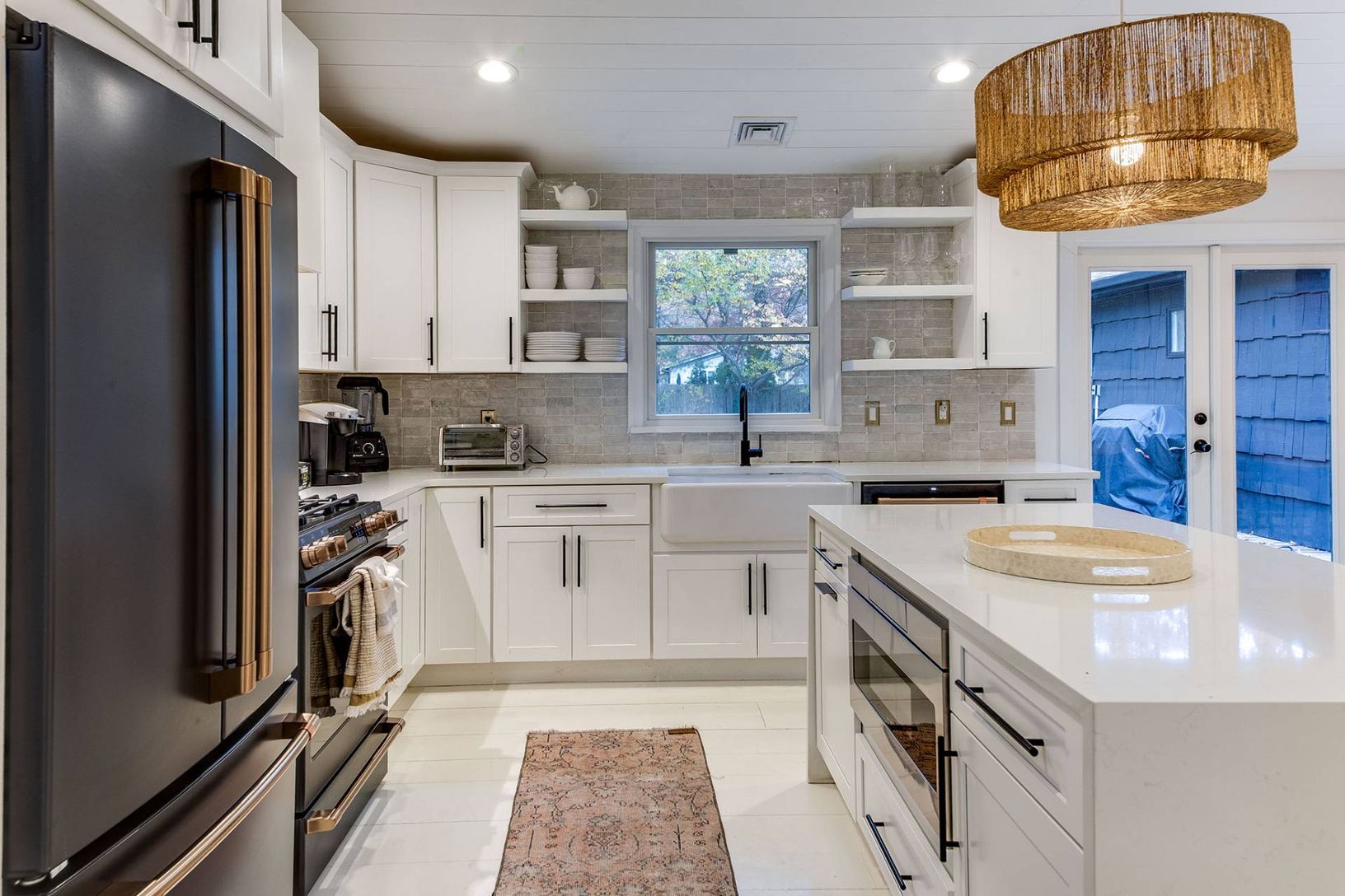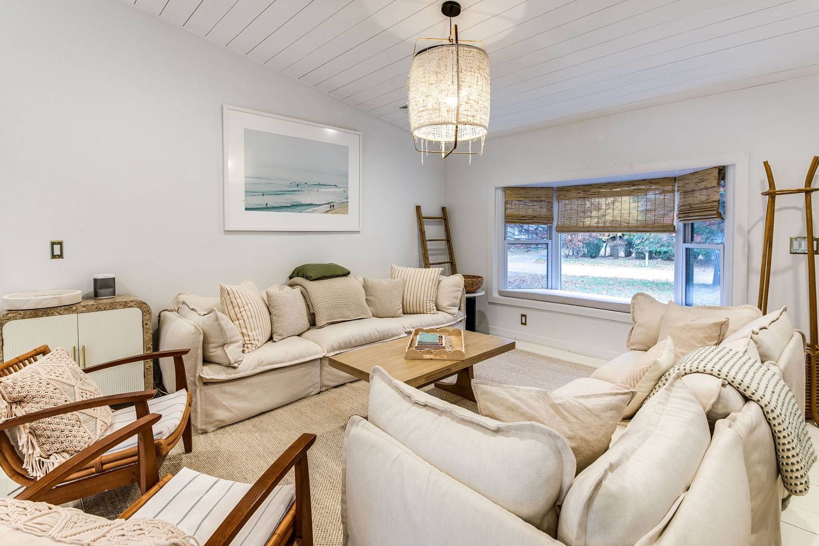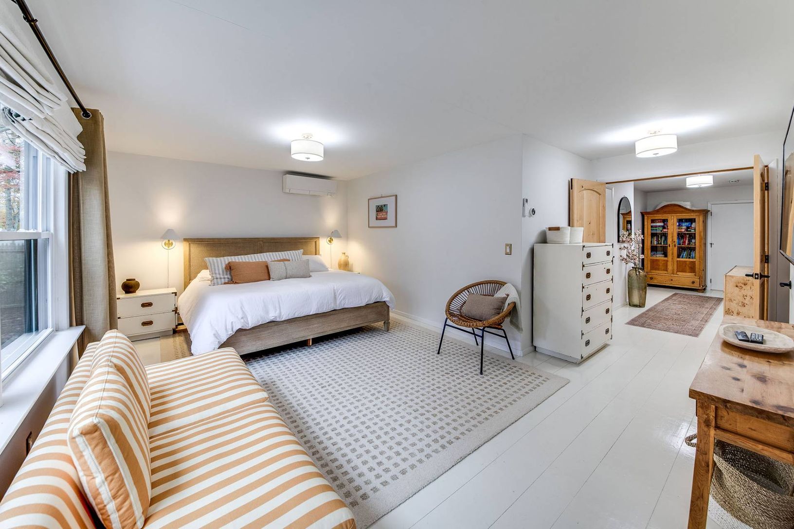 Expertly renovated and well appointed, this stunning one-level modern home in East Hampton's Clearwater Beach Association presents a full package with ample amenities and bespoke touches at every turn. Larger than its initial impression from the outside suggests, the residence offers four bedrooms (two ensuite), four full bathrooms, a separate office/den, and a great room with vaulted ceilings over the living, dining, and custom-tiled kitchen