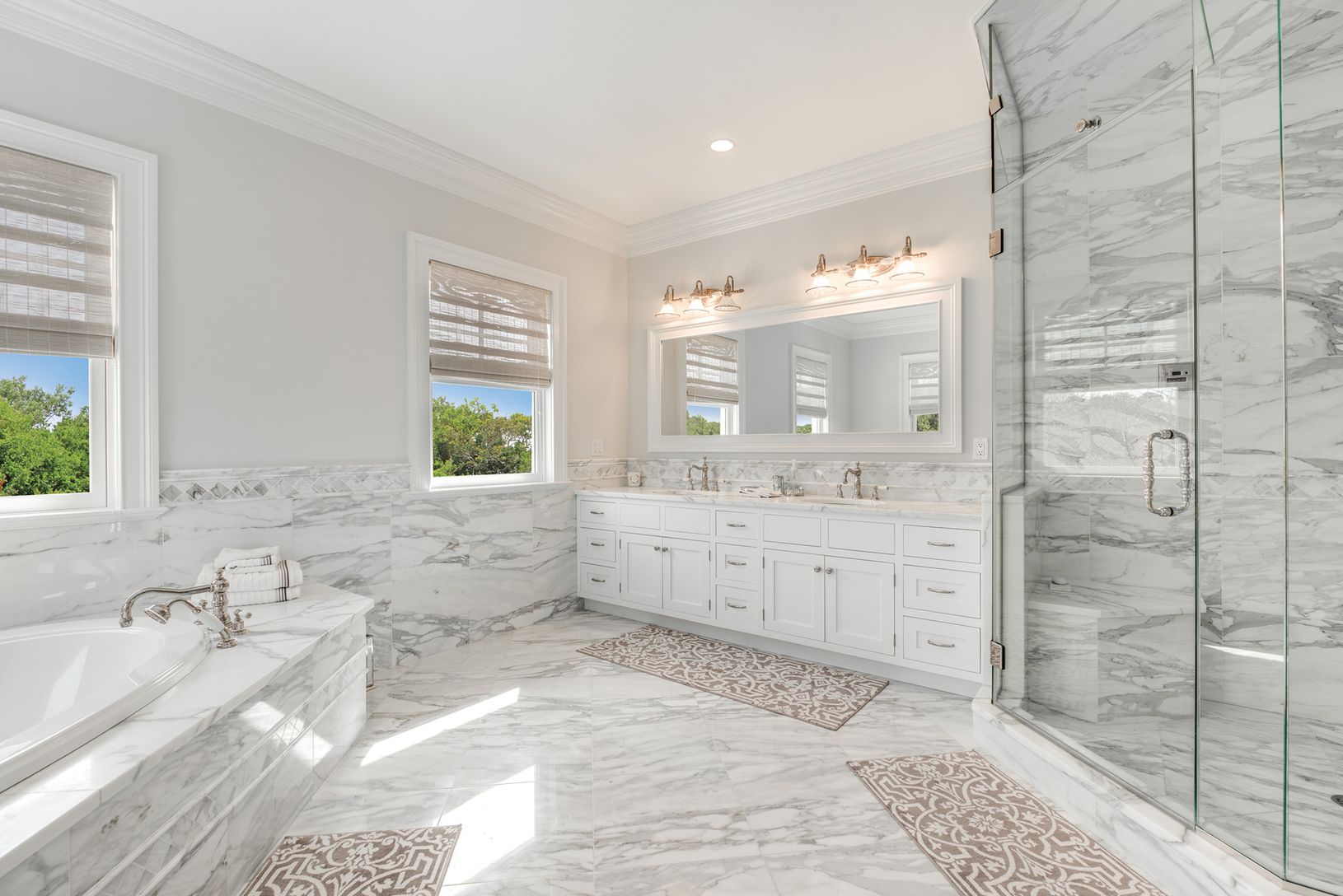 This luxurious 9,500+/- sq. ft., seven bedroom, eleven full and two half bath custom residence, sited on a 5+/- acre estate, offers a gated entrance, two master suites, a finished basement, four fireplaces, sitting room, game room, heated pool with spa, pool house, tennis and a separate guest house. Panoramic bay views from most rooms.