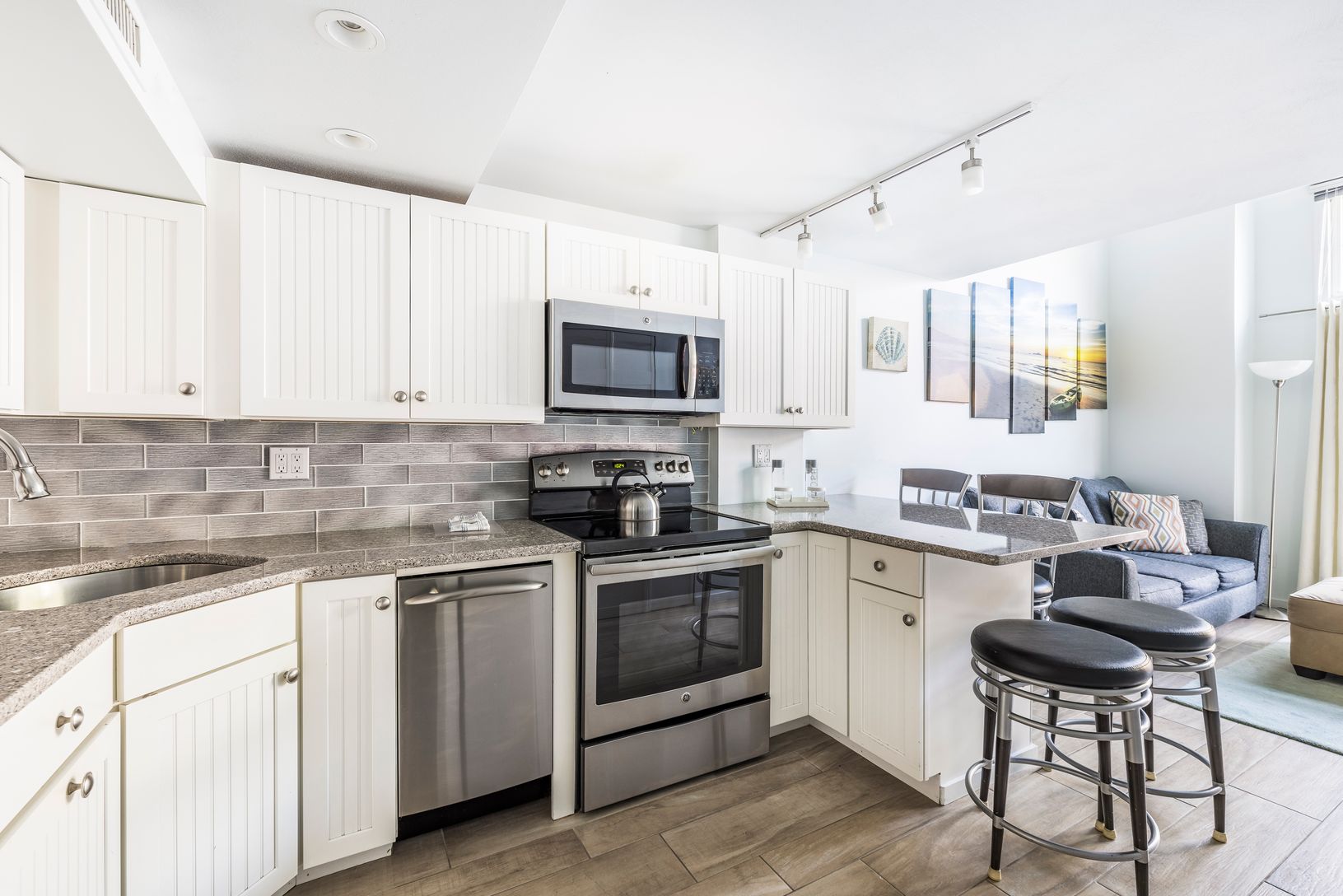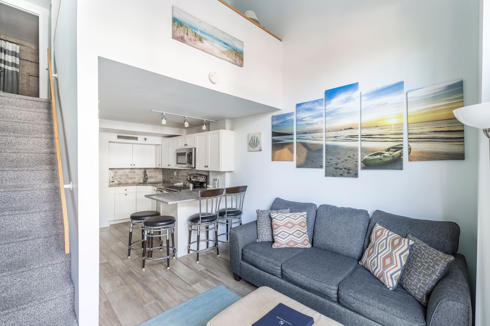 Enjoy nearly the lowest loft maintenance and turn key tastefully furnished accommodation with immediate and direct courtyard & pool access from this immaculate 476 sq.ft. loft bedroom 1 bath first floor corner resort accommodation with private 97 sq.ft. patio at the Historic Montauk Manor. Become an owner and sample Montauks beaches, water activities, golf from this year round resort location. Fully updated with granite and tile open kit