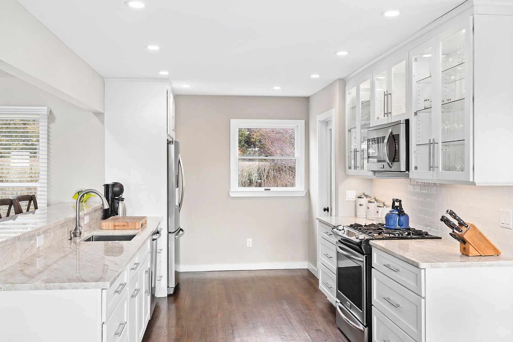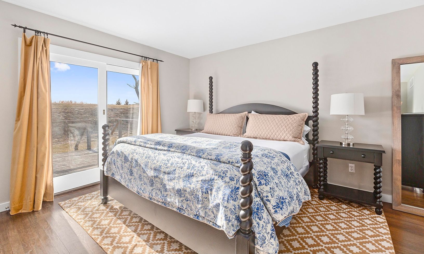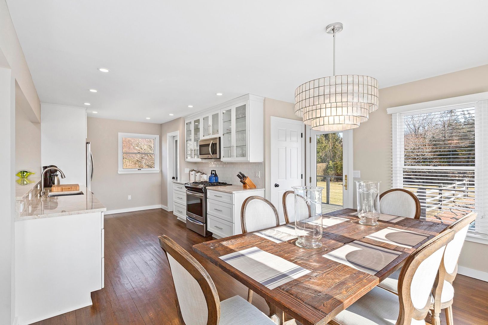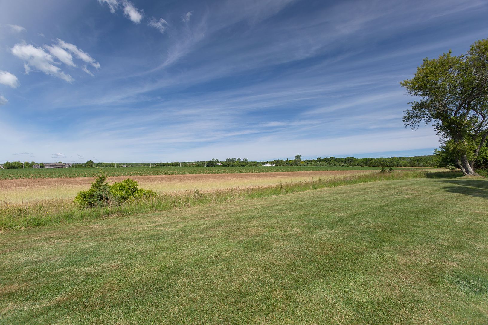 set on a one acre flag lot features stunning southwestern sunset views over 100 acres of farm fields. Newly renovated open floor plan features a gourmet eat in kitchen/dining area. Double height Great room features a wood burning fireplace. En-suite master opens to a spacious entertainment deck running the entire length of the back of this residence. Two additional bedrooms share a second bath. Hardwood floors, central air and a heated pool ro