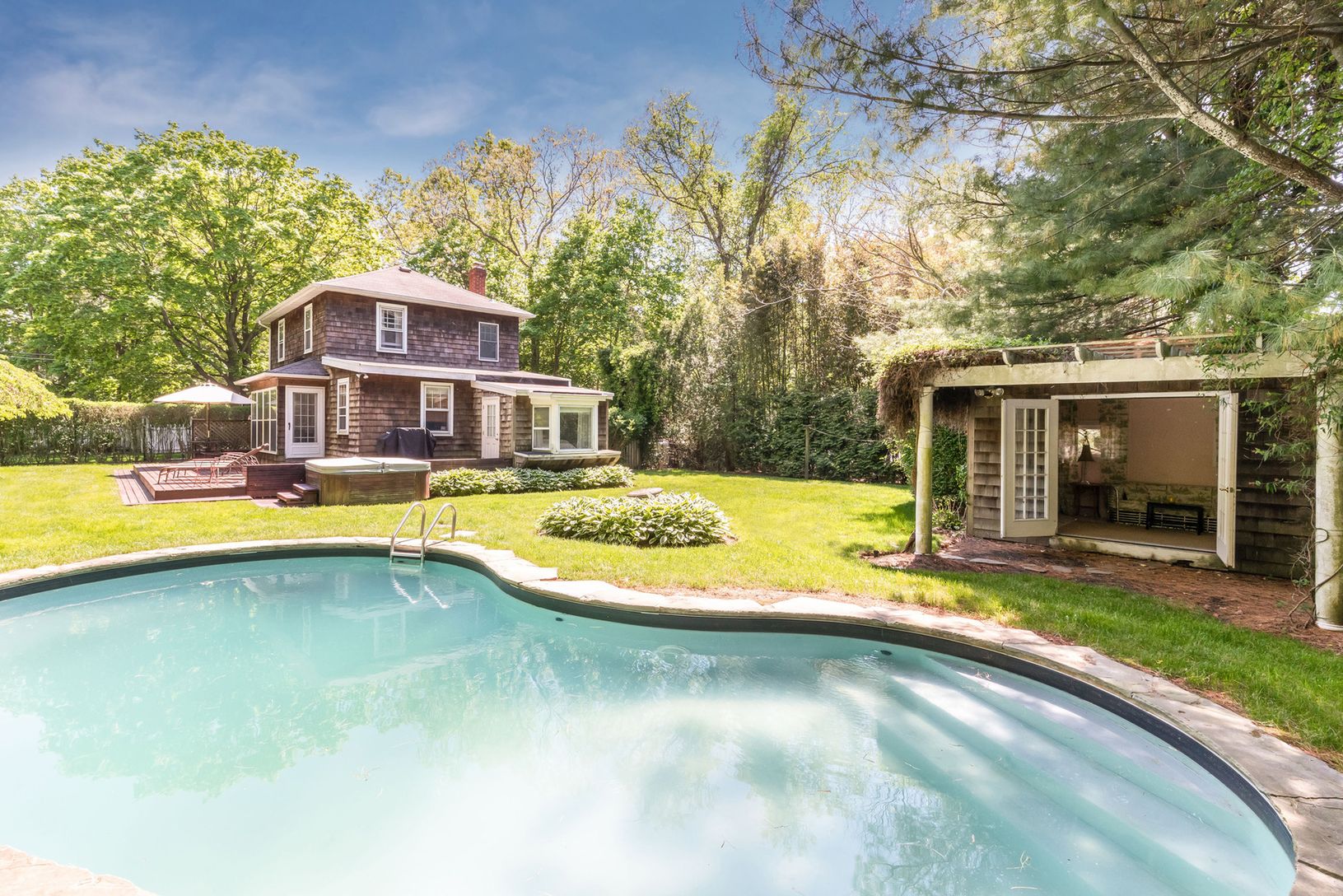 This fabulously renovated three bedroom, one full and one half bathroom farmhouse conveniently located near Southampton Village on a private half acre offers great style, Amenities include central air, a heated free form pool, outdoor shower and a pool house all surrounded by lovely landscaping.