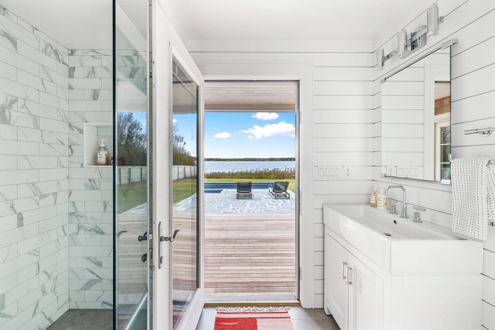 This fresh modern Post & Beam offers uninterrupted private water and sunset views over Lake Montauk Lake so come and let the Sunset peacefully announce the end of day with a big sky color display from the horizon to the heavens. The new waterside Gunite heated saltwater pool with integrated spa awaits you before or after your water activities from this shore line. Grab your paddle board and take off for a day's exploration on Lake Montauk