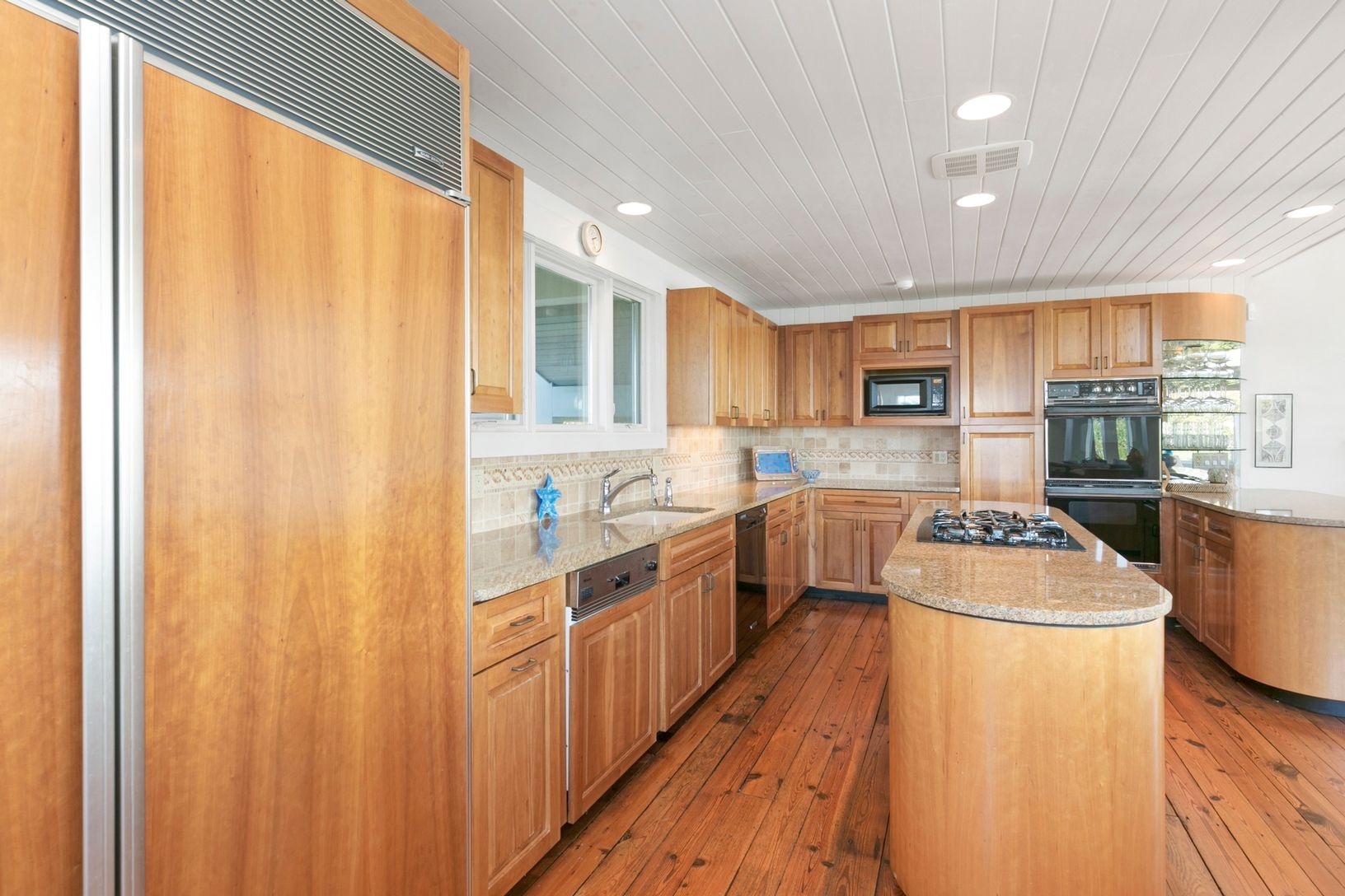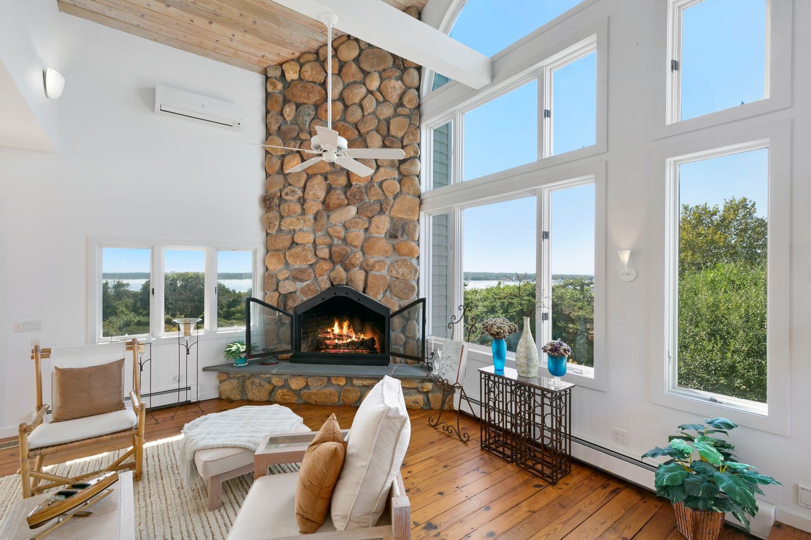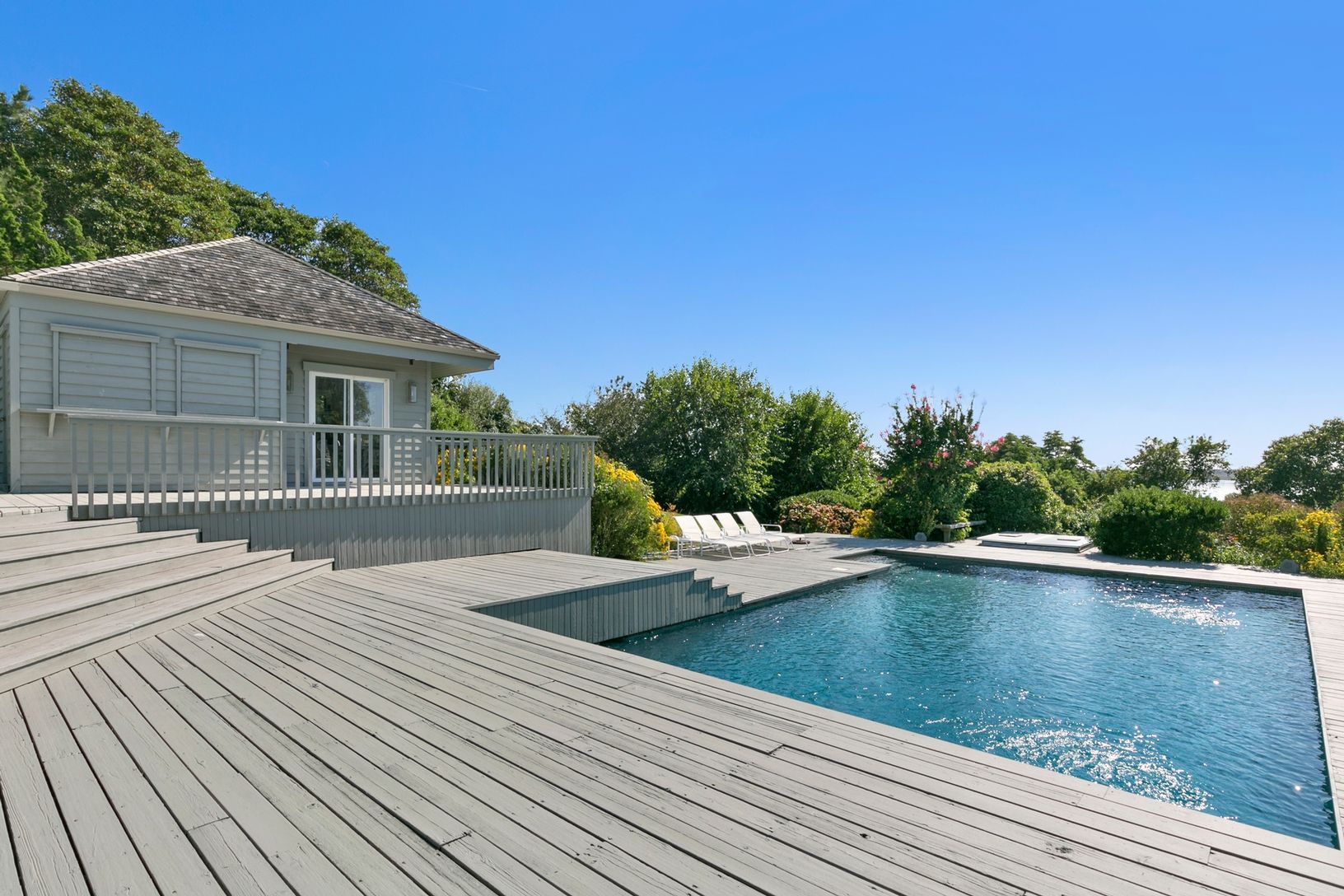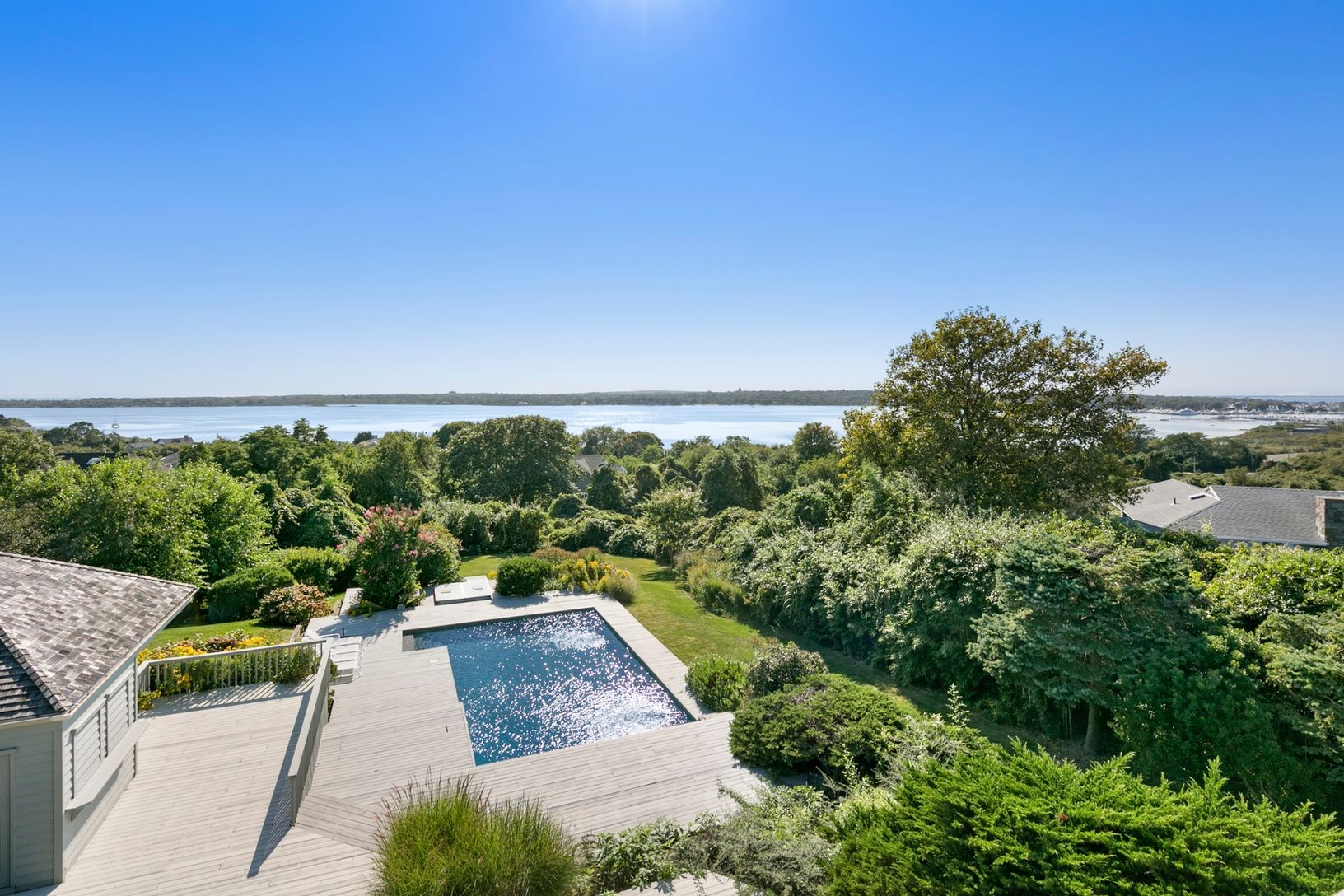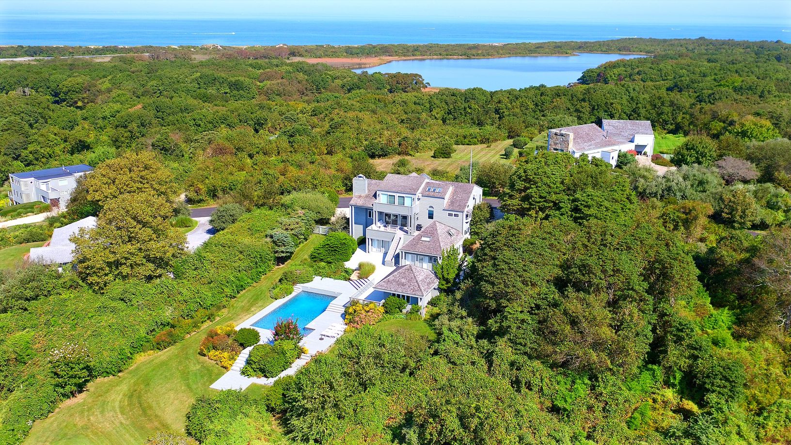 Sunrise and sunset sweeping views of Ocean, Lake Montauk and Bay from elevated East Lake Drive Contemporary home. Recently completed top to bottom renovation includes five bedrooms , six baths and features two master suites, a ground floor common area, gourmet kitchen with open dining area and living room. Living room has Montauk stone fireplace. Amenities are basement with Gym, three car garage, heated gunite pool, Jacuzzi and pool house. M