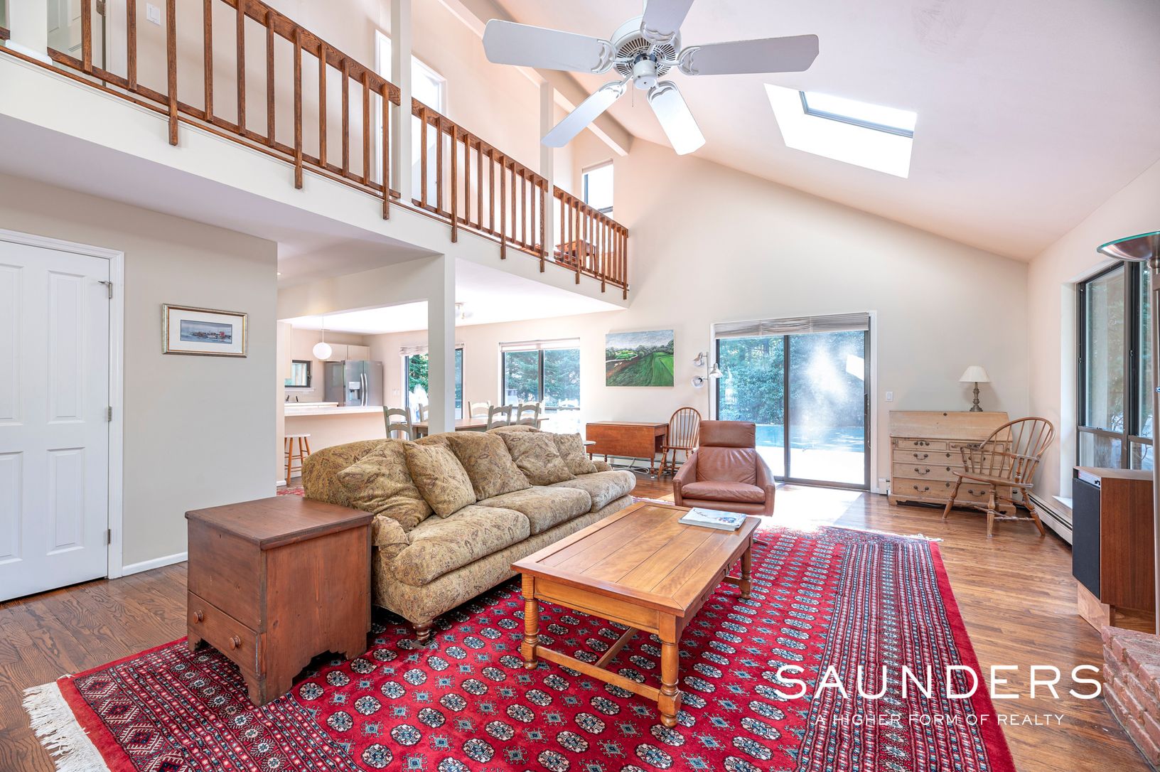 Move right in to this cozy home located on a quiet cul de sac in East Hampton. On one acre, this 2000 square foot house features 3 bedrooms, two full and one half bath. The main floor is an open floor plan flooded with natural light. There is a master bedroom on the first floor. Sliding doors open up to the large deck, heated pool and spa, as well as an outdoor shower. Easy and quick access to both Amagansett and East Hampton Village.