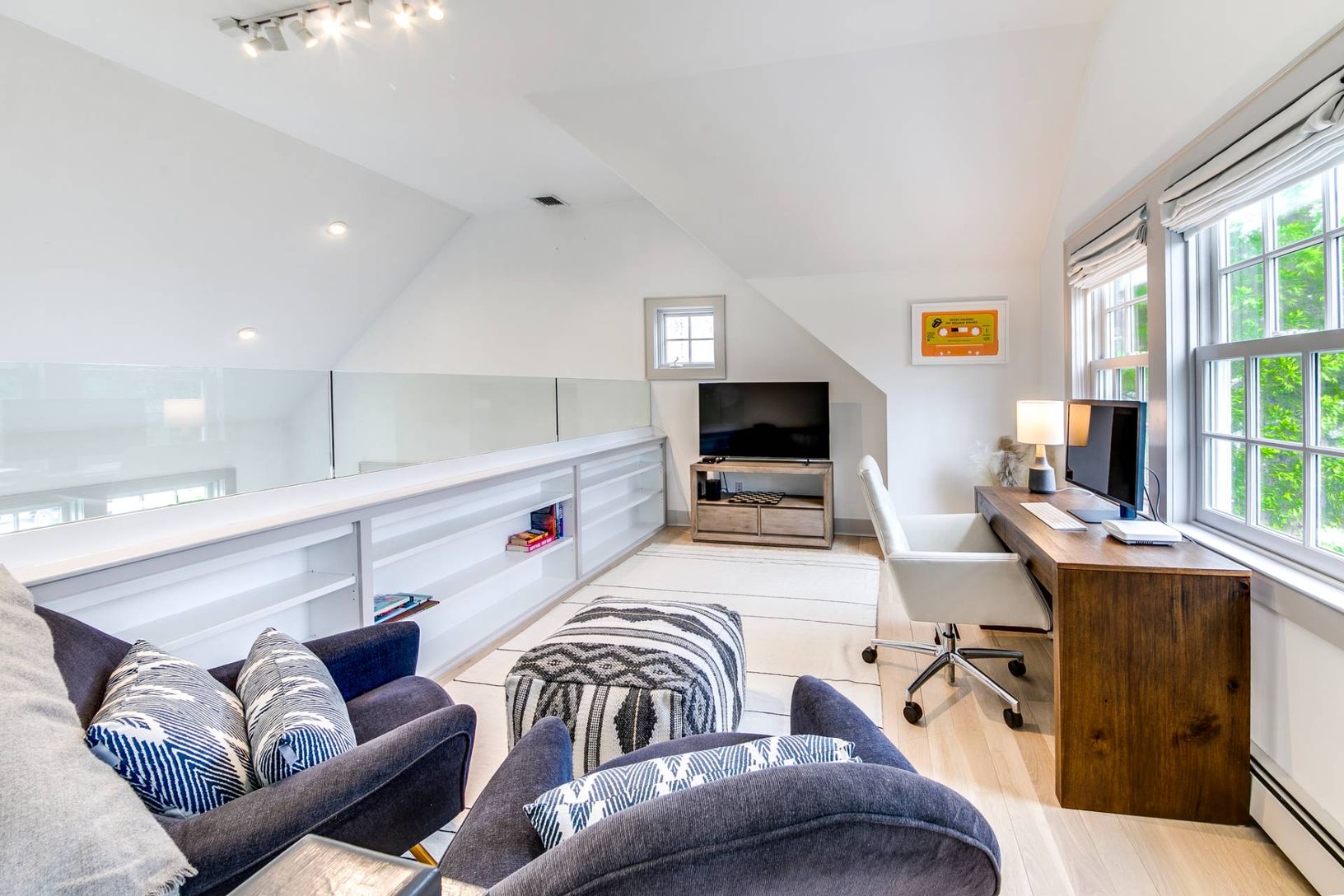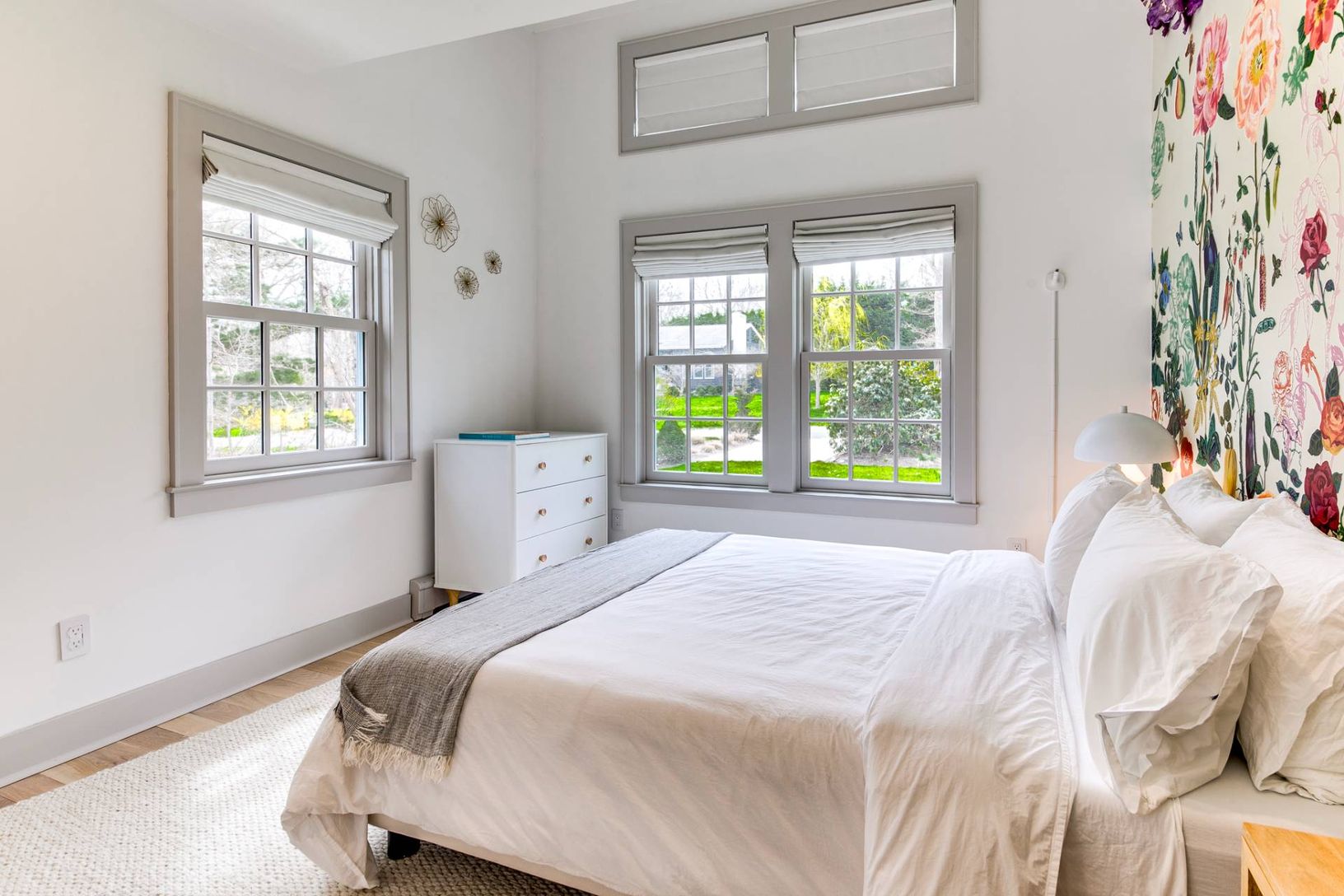 This newly refreshed four bedroom three full bath home is located in Sag Harbor Village. It has been professionally decorated, painted inside and out and includes new contents and furnishings. The open living areas are bright and inviting comprised of a living room and dining area as well as an updated eat-in kitchen with white cabinetry and stainless steel appliances. Two private guest bedrooms are located on the main floor as well as a full