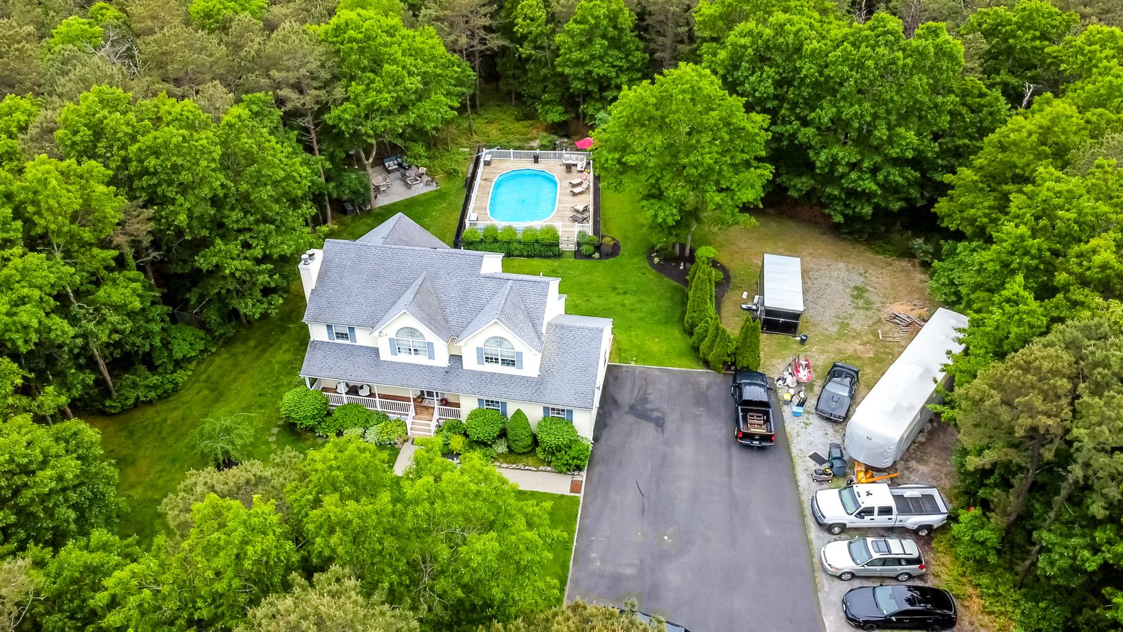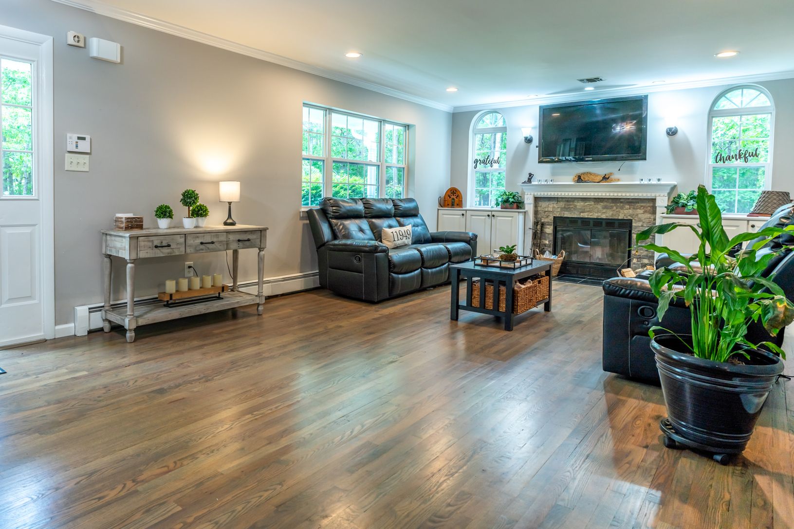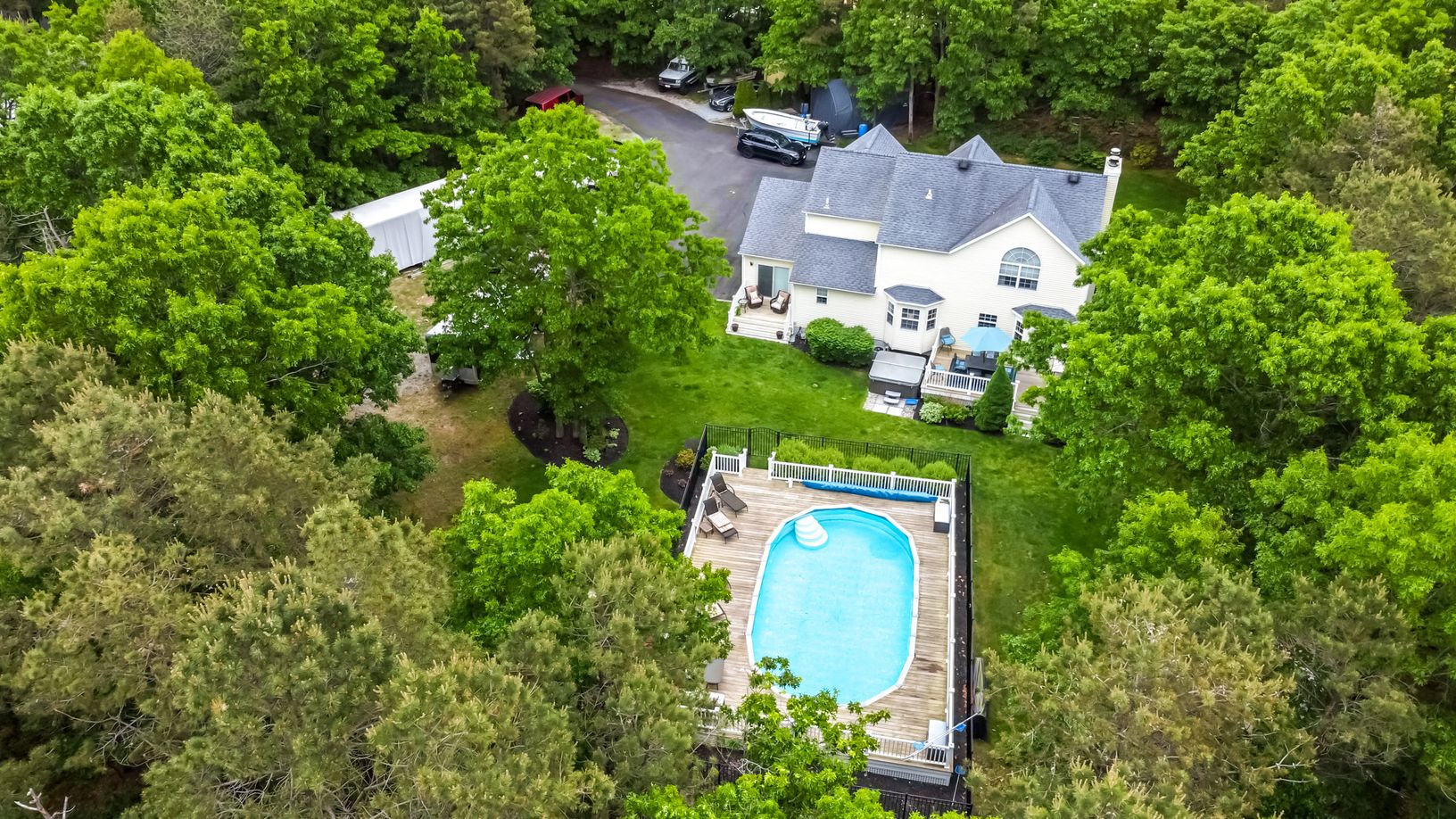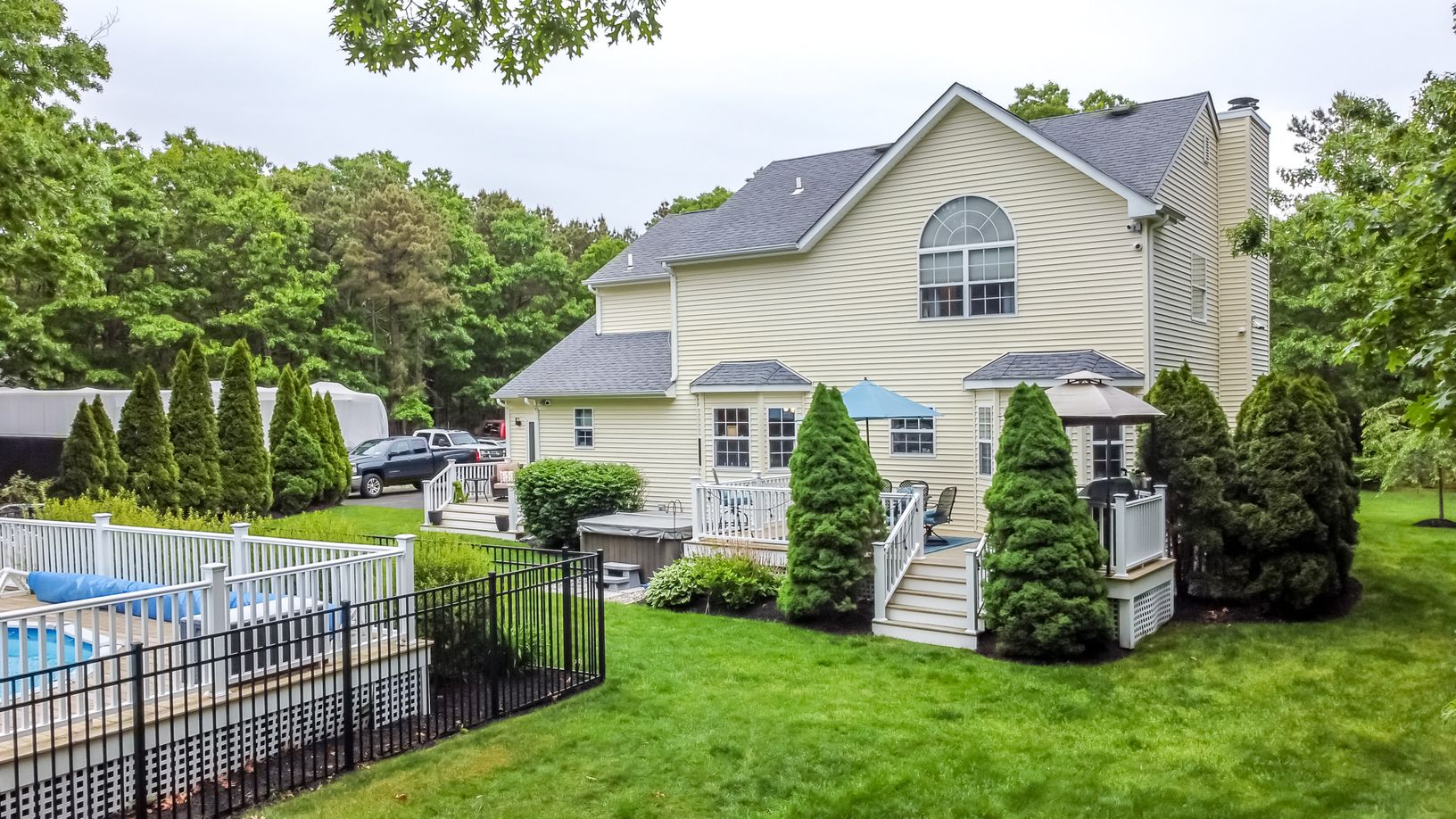 Stunning country estate on over 1.6 acres of meticulously manicured property. Located at the end of a cul-de-sac this sprawling two story Victorian colonial offers a desirable layout with great room, newly renovated chef's kitchen with white wood cabinets, stainless appliances and granite countertops, large living room with stone fireplace, four bedrooms, three full baths, and full finished basement with media room. Outdoors offers a large fro